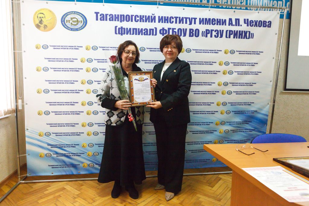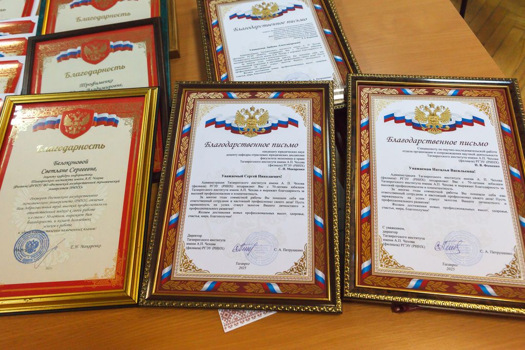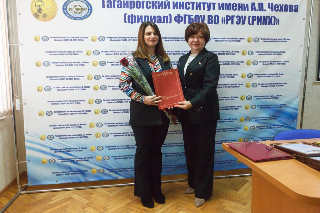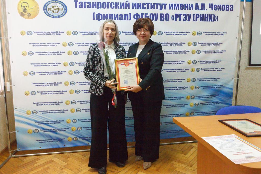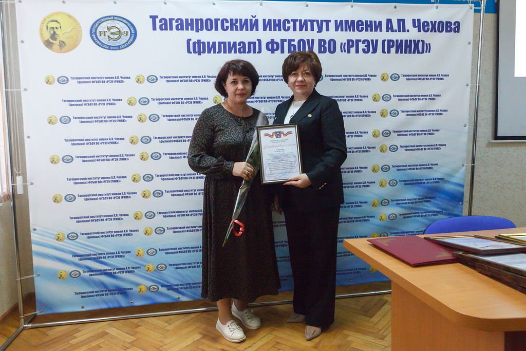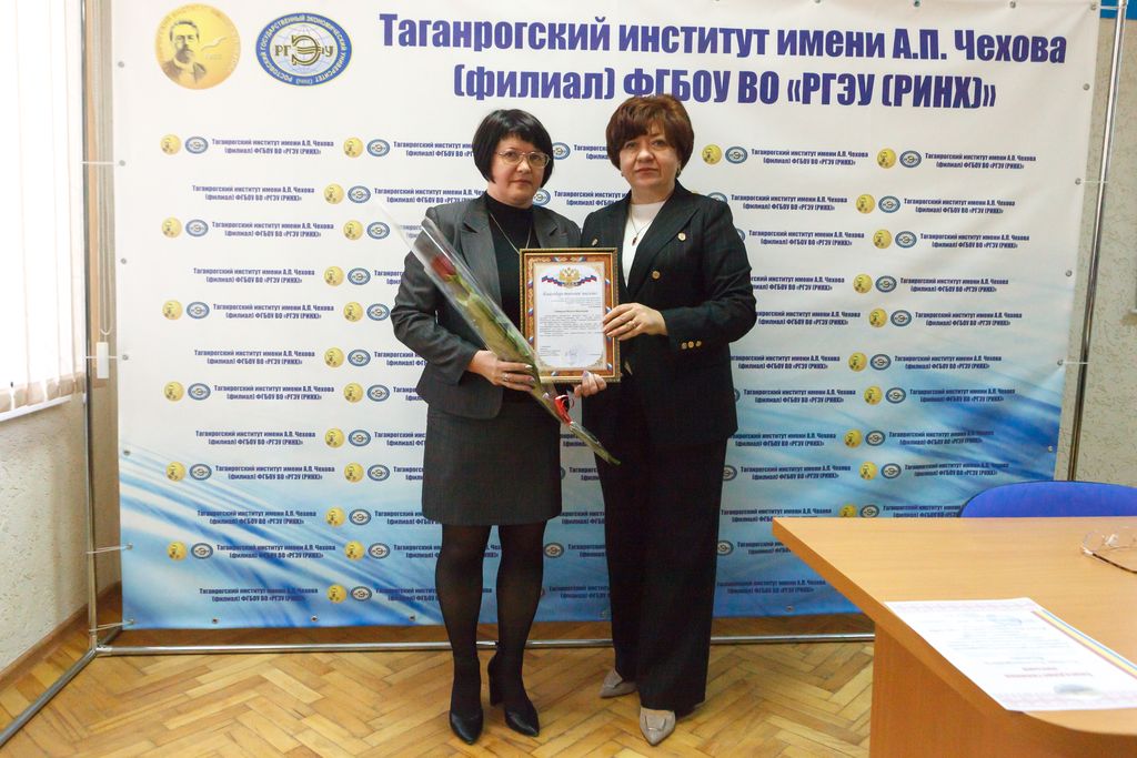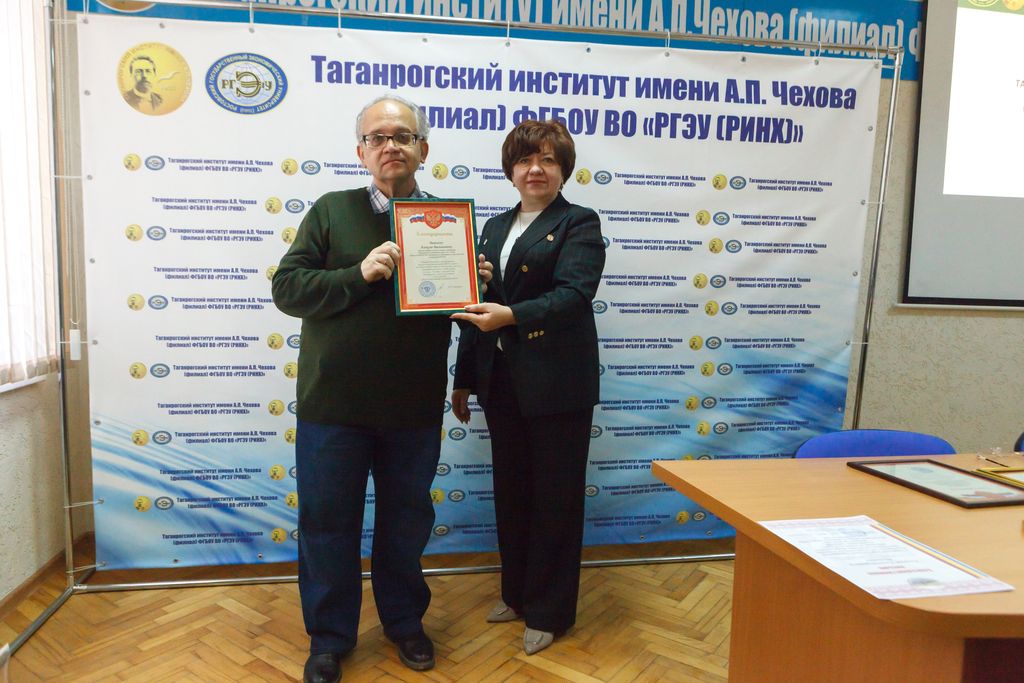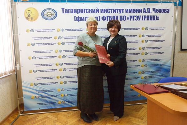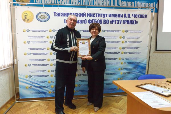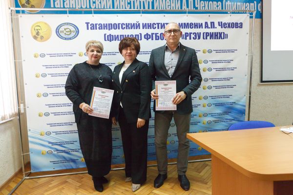 Новости все 31 октября, 2025 Заседание Ученого совета Таганрогского института имени А.П.Чехова (филиала) РГЭУ (РИНХ)29 октября 2025 года состоялось заседание Ученого совета Таганрогского института имени А.П. Чехова (филиала) РГЭУ (РИНХ). В начале заседания директор Таганрогского института имени А.П.Чехова (филиала) РГЭУ (РИНХ), кандидат философских наук, доцент Светлана Анатольевна Петрушенко предложила продолжить награждение преподавателей и сотрудников в честь знаменательной даты – 70-летнего юбилея института: · благодарственным письмом Министерства образования Ростовской области была отмечена заведующий кафедрой немецкого и французского языков, кандидат филологических наук, доцент Оксана Викторовна Кравченко; · благодарственное письмо Законодательного Собрания Ростовской области было вручено документоведу эксплуатационно-технического отдела Людмиле Александровне Фалько; · благодарственными письмами Администрации города Таганрога были награждены доцент кафедры немецкого и французского языков, кандидат филологических наук Татьяна Владимировна Куклина и заведующий кафедрой физической культуры, кандидат педагогических наук, доцент Елена Ивановна Кибенко; · благодарственные письма ректора РГЭУ (РИНХ) были вручены доценту кафедры математики и физики, кандидату физико-математических наук Софье Владимировне Проценко; доценту кафедры экономики и гуманитарно-правовых дисциплин, кандидату философских наук Веронике Андреевне Тимофеенко; доценту кафедры биолого-географического образования и здоровьесберегающих дисциплин, кандидату педагогических наук, доценту Валентине Анатольевне Пановой; доценту кафедры информатики, кандидату технических наук, доценту Сергею Георгиевичу Буланову; доценту кафедры английского языка, кандидату филологических наук Виктории Муратовне Войченко; специалисту по учебно-методической работе I-й категории Надежде Николаевне Новицкой; · памятным нагрудным знаком «Ветеран труда РИНХА» отмечена доцент кафедры психолого-педагогического образования и медиакоммуникации, кандидат социологических наук Анна Трофимовна Латышева. В связи с 70-летием вуза благодарственные письма от имени директора Таганрогского института имени А.П.Чехова (филиала) РГЭУ (РИНХ) были вручены следующим сотрудникам: специалисту по НИР отдела организации и сопровождения научной деятельности, кандидату педагогических наук, доценту Наталье Васильевне Фоменко; секретарю факультета физики, математики, информатики Елене Ивановне Плуталовой; доценту кафедры отраслевых юридических наук, доценту Сергею Николаевичу Макаренко; доценту кафедры педагогики дошкольного, начального и дополнительного образования, кандидату педагогических наук, доценту Любови Александровне Буряковой; доценту кафедры истории, кандидату исторических наук, доценту Елене Владимировне Прокофьевой; рабочему по обслуживанию зданий ЭТО Виктору Александровичу Максименко. Благодарственными письмами в связи с юбилеем от имени ректора РГЭУ (РИНХ), доктора экономических наук, профессора Елены Николаевны Макаренко были отмечены заместитель декана по учебной работе факультета физики, математики, информатики, кандидат технических наук, доцент Светлана Сергеевна Белоконова; заместитель декана по учебной работе факультета педагогики и методики 