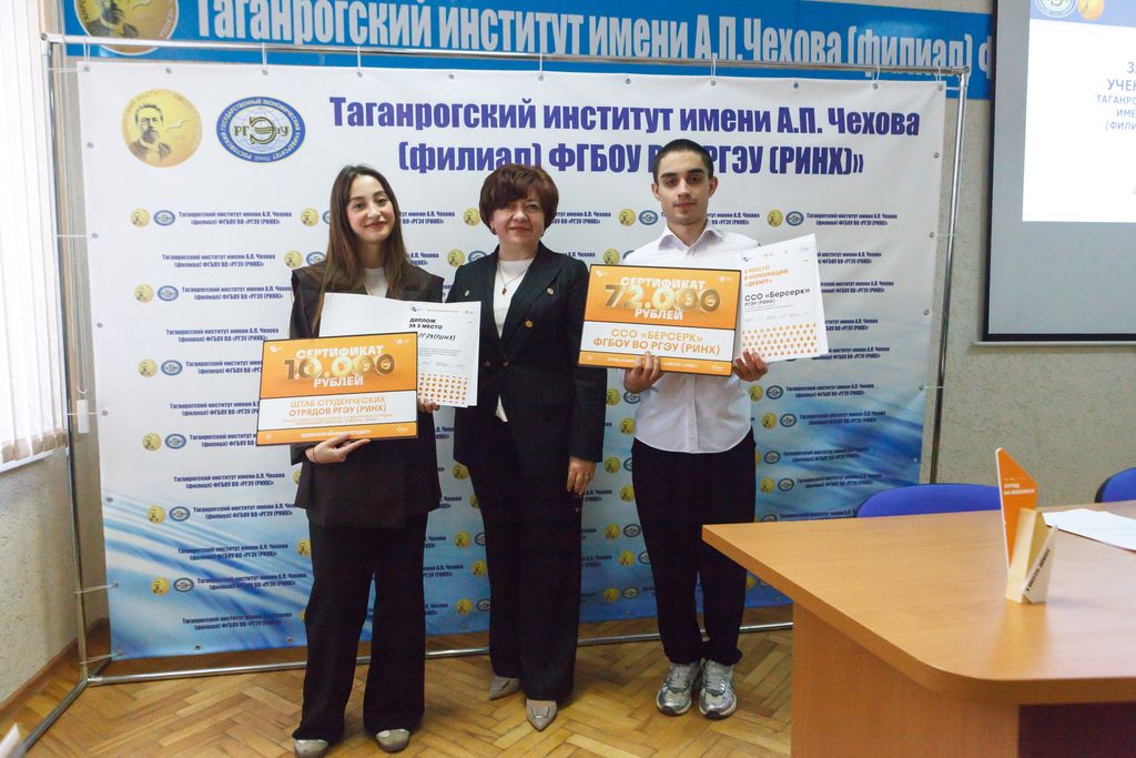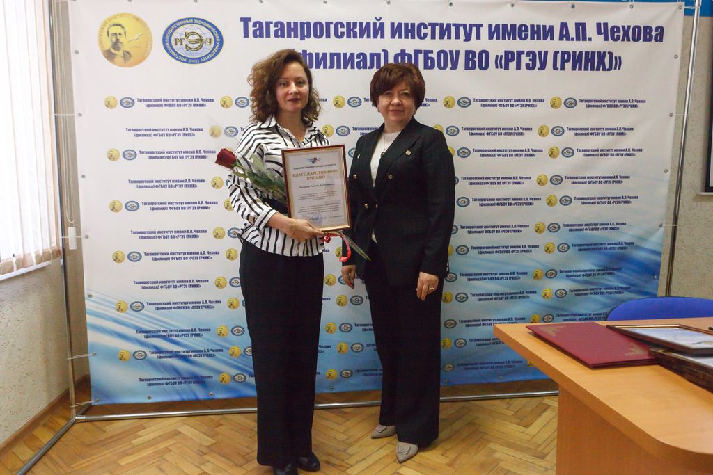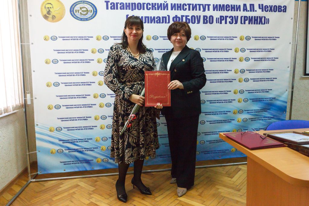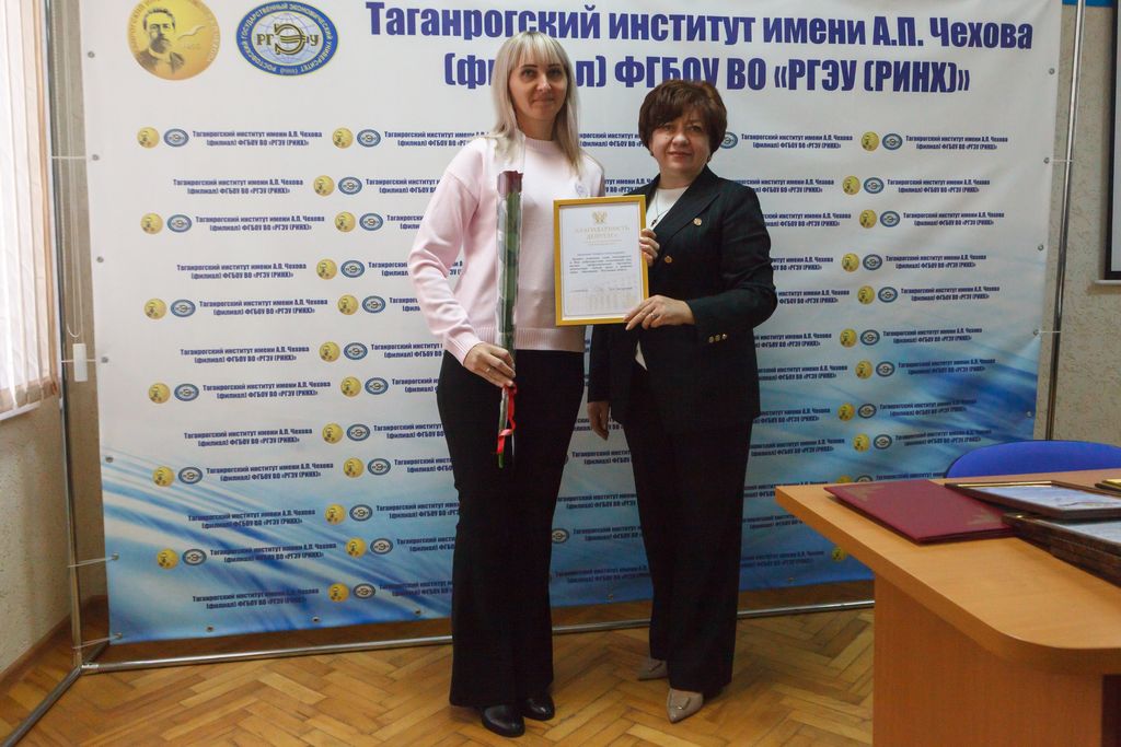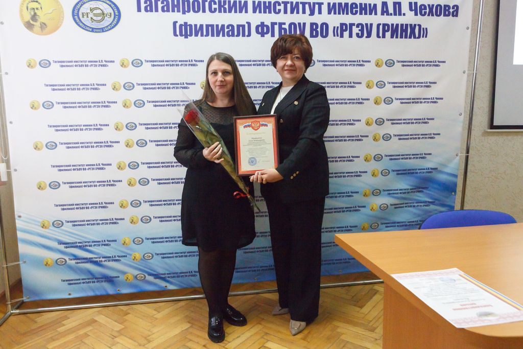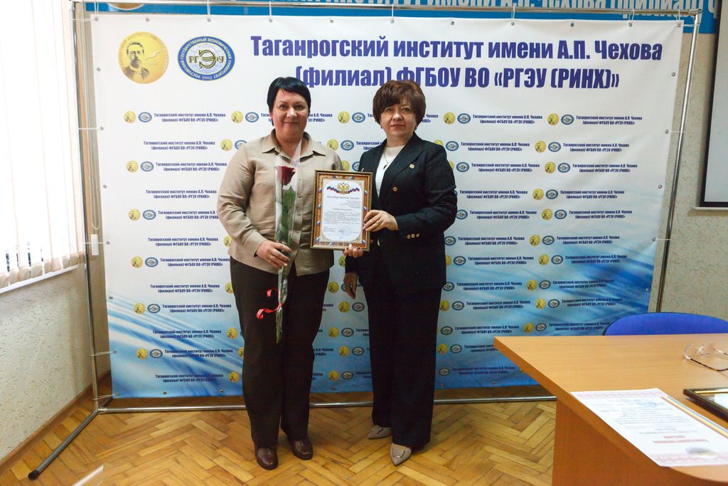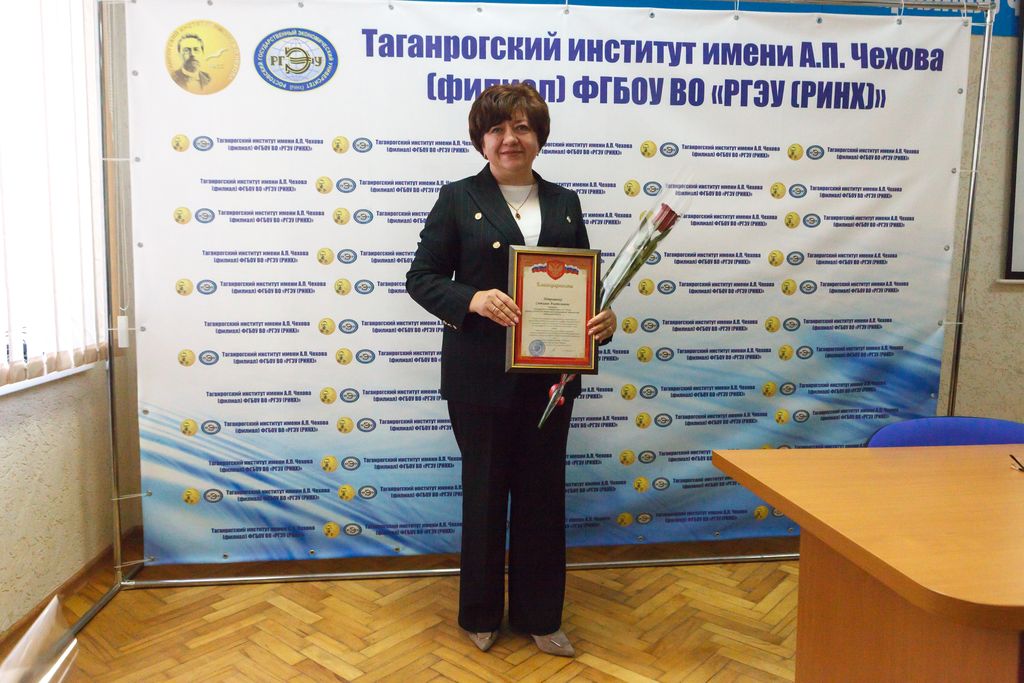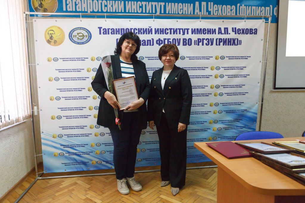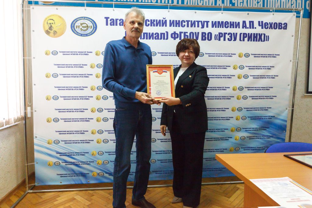 Новости все 31 октября, 2025 Заседание Ученого совета Таганрогского института имени А.П.Чехова (филиала) РГЭУ (РИНХ)29 октября 2025 года состоялось заседание Ученого совета Таганрогского института имени А.П. Чехова (филиала) РГЭУ (РИНХ). В начале заседания директор Таганрогского института имени А.П.Чехова (филиала) РГЭУ (РИНХ), кандидат философских наук, доцент Светлана Анатольевна Петрушенко предложила продолжить награждение преподавателей и сотрудников в честь знаменательной даты – 70-летнего юбилея института: · благодарственным письмом Министерства образования Ростовской области была отмечена заведующий кафедрой немецкого и французского языков, кандидат филологических наук, доцент Оксана Викторовна Кравченко; · благодарственное письмо Законодательного Собрания Ростовской области было вручено документоведу эксплуатационно-технического отдела Людмиле Александровне Фалько; · благодарственными письмами Администрации города Таганрога были награждены доцент кафедры немецкого и французского языков, кандидат филологических наук Татьяна Владимировна Куклина и заведующий кафедрой физической культуры, кандидат педагогических наук, доцент Елена Ивановна Кибенко; · благодарственные письма ректора РГЭУ (РИНХ) были вручены доценту кафедры математики и физики, кандидату физико-математических наук Софье Владимировне Проценко; доценту кафедры экономики и гуманитарно-правовых дисциплин, кандидату философских наук Веронике Андреевне Тимофеенко; доценту кафедры биолого-географического образования и здоровьесберегающих дисциплин, кандидату педагогических наук, доценту Валентине Анатольевне Пановой; доценту кафедры информатики, кандидату технических наук, доценту Сергею Георгиевичу Буланову; доценту кафедры английского языка, кандидату филологических наук Виктории Муратовне Войченко; специалисту по учебно-методической работе I-й категории Надежде Николаевне Новицкой; · памятным нагрудным знаком «Ветеран труда РИНХА» отмечена доцент кафедры психолого-педагогического образования и медиакоммуникации, кандидат социологических наук Анна Трофимовна Латышева. В связи с 70-летием вуза благодарственные письма от имени директора Таганрогского института имени А.П.Чехова (филиала) РГЭУ (РИНХ) были вручены следующим сотрудникам: специалисту по НИР отдела организации и сопровождения научной деятельности, кандидату педагогических наук, доценту Наталье Васильевне Фоменко; секретарю факультета физики, математики, информатики Елене Ивановне Плуталовой; доценту кафедры отраслевых юридических наук, доценту Сергею Николаевичу Макаренко; доценту кафедры педагогики дошкольного, начального и дополнительного образования, кандидату педагогических наук, доценту Любови Александровне Буряковой; доценту кафедры истории, кандидату исторических наук, доценту Елене Владимировне Прокофьевой; рабочему по обслуживанию зданий ЭТО Виктору Александровичу Максименко. Благодарственными письмами в связи с юбилеем от имени ректора РГЭУ (РИНХ), доктора экономических наук, профессора Елены Николаевны Макаренко были отмечены заместитель декана по учебной работе факультета физики, математики, информатики, кандидат технических наук, доцент Светлана Сергеевна Белоконова; заместитель декана по учебной работе факультета педагогики и методики 