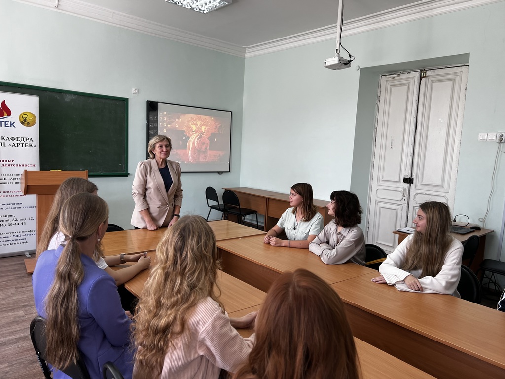 Круглый стол «Деятельность педагога-психолога в ДОУ: современные тенденции и перспективы» 27 сентября 2024 года преподавателями кафедры психолого-педагогического образования и медиакоммуникации И.В.Челышевой и Л.И.Кобышевой был организован круглый стол «Деятельность педагога-психолога в ДОУ: современные тенденции и перспективы» со студентами 1-го и 2-го курсов, обучающихся по профилю «Психология и социальная педагогика». Данное мероприятие было посвящено Дню работников дошкольного образования, который отмечается в нашей стране уже 20 лет. Дошкольный возраст - очень важный и ответственный период в жизни ребенка. В годы дошкольного детства активно формируется личность, закладываются основы физического и психического здоровья. Именно поэтому важно, чтобы психолого-педагогическая деятельность осуществлялась со всеми участниками образовательного процесса: детьми, родителями, воспитателями. Участники круглого стола рассмотрели вопросы, связанные с миссией педагога-психолога в дошкольной образовательной организации, рассмотрели основные виды психолого-педагогической деятельности в ДОУ, обсудили вопросы создание единого открытого образовательного пространства в детском саду. Поздравляем всех работников дошкольного образования с праздником и желаем профессиональных успехов и достижений! |