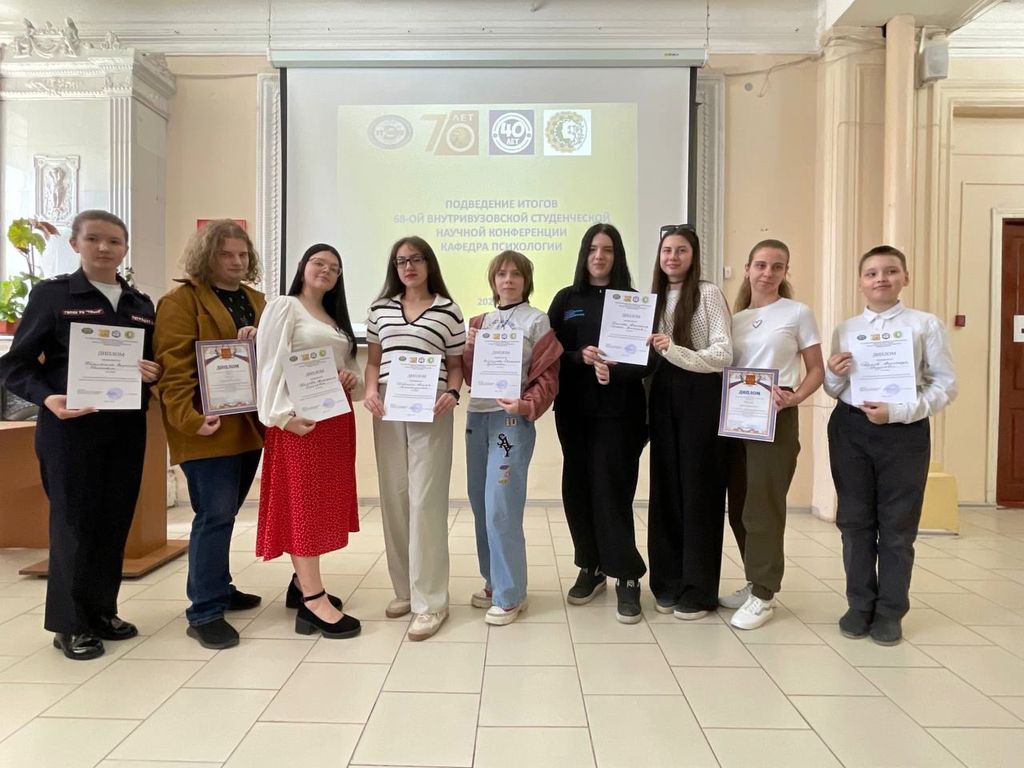 Подведение итогов апрельской студенческой научно-практической конференции на кафедре психологииВ начале мая 2025 г. на факультете психологии и социальной педагогики состоялось торжественное награждение победителей студенческой конференции, организованной кафедрой психологии. Были подведены итоги работы трёх секций, одна из которых была представлена докладами молодых ученых из числа школьников и студентов колледжей. Победителями стали следующие студенты и молодые исследователи. Секция «Актуальные вопросы современных психологических исследований» – Е.С. Пономаренко (ПСХOZ-511), Л.Ю. Вербина (ПСХ-521); А.С. Беляева (ПСХ-541). Секция «Психология – пространство возможностей для всех» – А.А. Павленко (МОБУ СОШ № 9 г Таганрога), А.А. Дуров (МАОУ СОШ №10 г. Таганрог), С.Р. Винокурова (МБОУ Краснодесантская СОШ Неклиновского района); В.Р. Петрашка (Таганрогский механический колледж); А.Г. Косинова, В.Р. Милько (МОБУ СОШ № 35 г. Таганрога). Секция «Современные проблемы психологического знания» – Я.А. Поршнева (ПСХGOZ-511), Э.Э. Герман (ППGOZ-523), Богатырев Р.С. (ПСХGOZ-511). В награждении приняли участие заведующий кафедрой психологии, канд. психол. наук, доц. О.А. Холина, канд. филол. наук, доц. А.В. Макаров, канд. психол. наук, доц. Е.В. Казанцева. Пожелаем успехов нашим победителям в новых научных мероприятиях! |