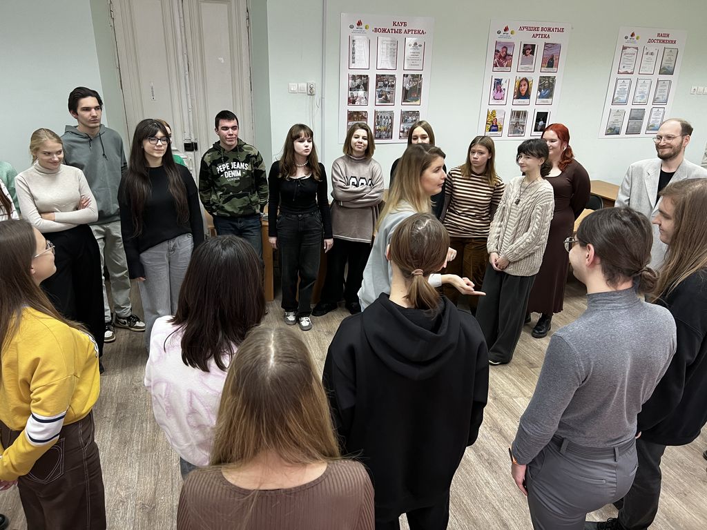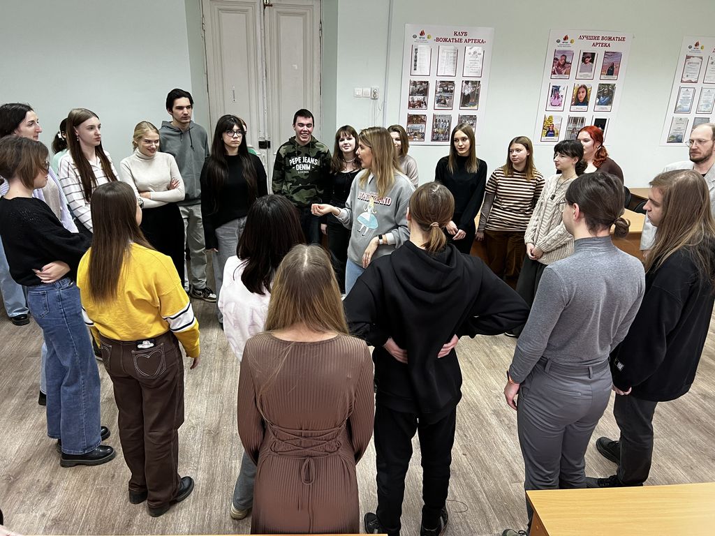 Продолжает работу кружок психолого-педагогических исследований27 ноября 2024 года на факультете психологии и социальной педагогики преподавателями кафедры психолого-педагогического образования и медиакоммуникации Л.И. Кобышевой, О.И. Ефремовой, Е.М. Купаревой, А.Т. Латышевой было проведено очередное заседание кружка психолого-педагогических исследований из тематического цикла «Основы педагогического мастерства». Купарева Е.М. на занятие пригласила актрису театра имени А.П. Чехова Злату Лазовскую. Гостья рассказала о технике переключения внимания и концентрации на задаче. Был проведен тренинг педагогического мастерства, включающий упражнения на одновременное движение, работу с речью, сохранение фокуса внимания на задании и взаимодействие с другими участниками группы. Обсуждались вопросы проведения наблюдения за процессом педагогического общения учителя с классом. В работе кружка принимали участие студенты 1-3 курсов. Все присутствующие активно участвовали в дискуссии, тренинговых упражнениях, отметили несомненную пользу проведенного занятия для будущих педагогов-психологов. Выражаем благодарность актрисе З.Лазовской за участие в занятии кружка. |