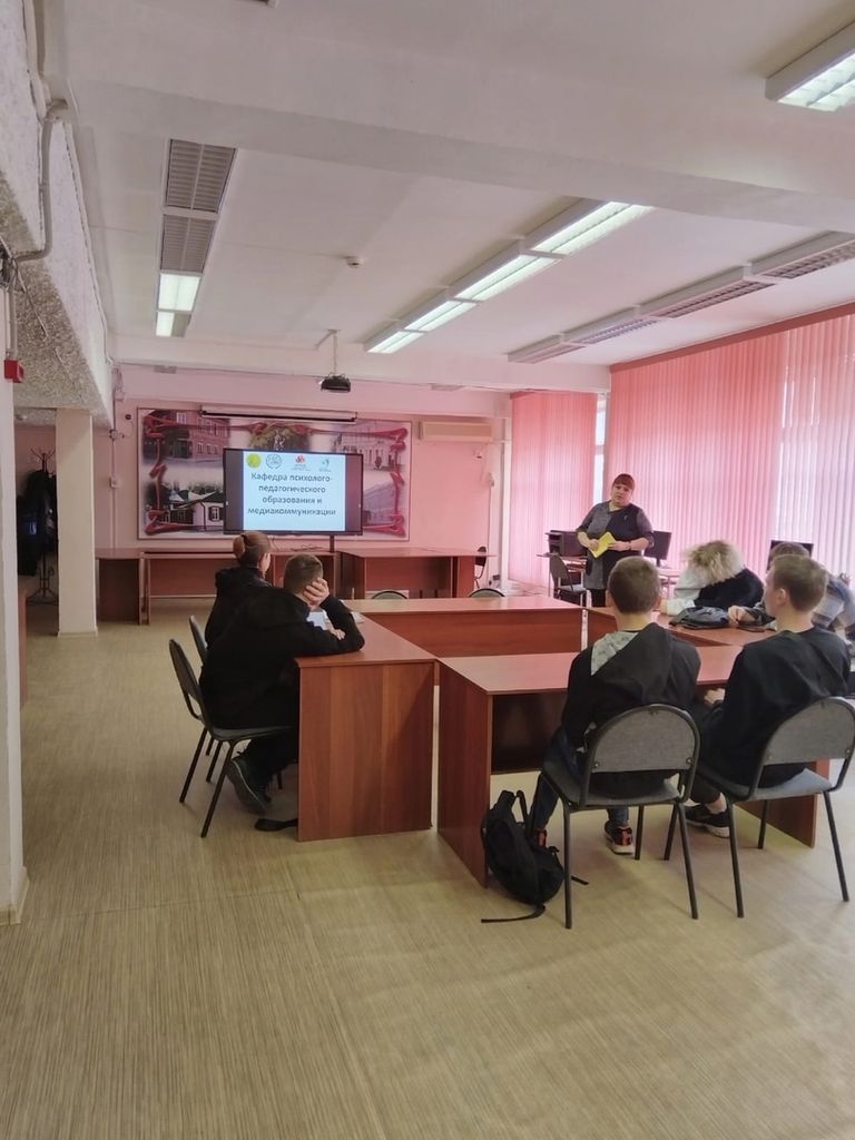 Серия встреч в рамках проекта «Профориентационный десант» кафедры психолого-педагогического образования и медиакоммуникацииВ последние дни декабря 2024 года состоялся очередной цикл профориентационных встреч кафедры психолого-педагогического образования и медиакоммуникации в рамках проекта «Профориентационный десант» с будущими абитуриентами. Под руководством зав. кафедрой И.В.Челышевой на базе ГБПОУ РО «Таганрогский механический колледж» для группы студентов 3-4 курсов Екатериной Жеренко было организовано профориентационное мероприятие в формате круглого стола. Еще одну встречу на базе в МБДОУ «Колосок» с. Покровское Неклиновского района Ростовской области провела Анна Кихтенко. В ней приняли участие сотрудники детского сада и родители. Потенциальным абитуриентам была представлена информация о приеме в Таганрогский институт имени А.П.Чехова (филиал) ФГБОУ ВО «РГЭУ (РИНХ)», предложены буклеты профориентационной направленности. Присутствующие активно задавали вопросы, были заинтересованы в дальнейшем продолжении обучения. |