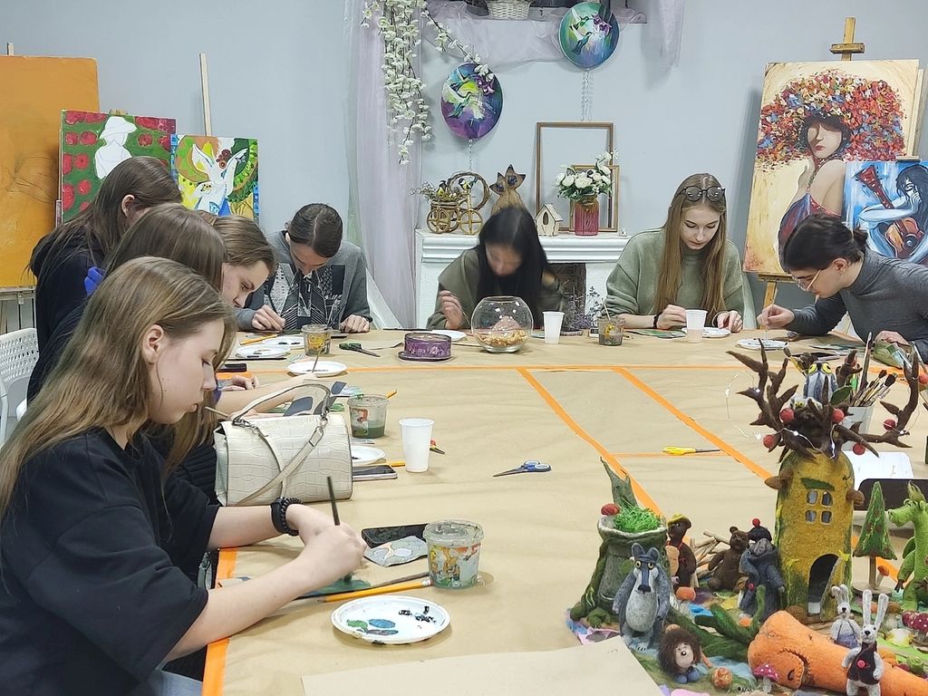 «Создавая команду!» - работа с будущими психологами и коучамиКафедра психологии продолжает работу, направленную на построение эффективной команды и развитие лидерского потенциала в коллективе первокурсников. Вместе с куратором группы, доц. А.В. Макаровым и студенткой 4 курса С. Зоновой в рамках дисциплины «Тренинг командообразования и лидерства» было проведено очередное занятие, включающее выполнение заданий в группе на развитие межполушарных связей. 2 декабря на площадке детской студии творчества «АкварельКА» студенты группы ПСХ-511, обучающиеся по профилю «Психологическое консультирование и коучинг», вместе с куратором, доц. кафедры психологии А.В. Макаровым посетили мастер-класс, который провела руководитель студии Н.М. Войтенко. В уютной атмосфере студии студентам предстояло на практике познакомиться с практикой арт-тимбилдинга. Данный формат включает командообразование, творчество, коммуникативную практику, движение к общей цели, осязаемый результат совместной работы. В итоге отдельные фрагменты были собраны в единую картину. Мастер-класс стал для нас не только прекрасной возможностью попробовать что-то новое и раскрыть свой творческий потенциал, но и отличным способом провести время вместе. |