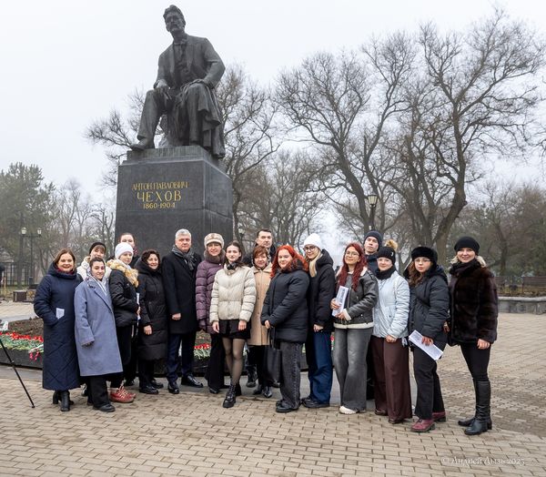 Участие представителей факультета психологии и социальной педагогики в мероприятиях Чеховской декады, приуроченной к 165-летию великого земляка29 января 2025 г. в рамках мероприятий Чеховской декады, приуроченной к 165-летию великого русского писателя и драматурга, мастера короткого рассказа и тонких психологических пьес, нашего земляка Антона Павловича Чехова, жители Таганрога собрались у памятника писателю, чтобы отдать дань памяти мировому классику. В составе делегации ТИ имени А.П. Чехова представители факультета психологии и социальной педагогики (доц. А.В. Макаров, ст. преп. С.Э. Бартенева, старосты групп В. Талалай и С. Агенкова) приняли участие в церемонии возложения цветов к памятнику писателя. В этот же день в Таганрогском художественном музее открылась новая выставка – «Город Чехова в городе Таганроге». На выставке представлено три блока: работы русских художников Серебряного века – современников А.П. Чехова, пленэрные работы 2024 года современных художников, участников «Пленэра по-чеховски» в рамках гранта Благотворительного фонда В. Потанина «Пусть всегда будет Чехов!» и произведения таганрогских художников 20-21 веков, отражающие жизнь и театральное творчество великого драматурга. Студенты активисты ФПиСП под руководством зам. декана по ВР А.В. Макарова смогли по достоинству оценить выставочный проект, приняв участие в церемонии его открытия. |