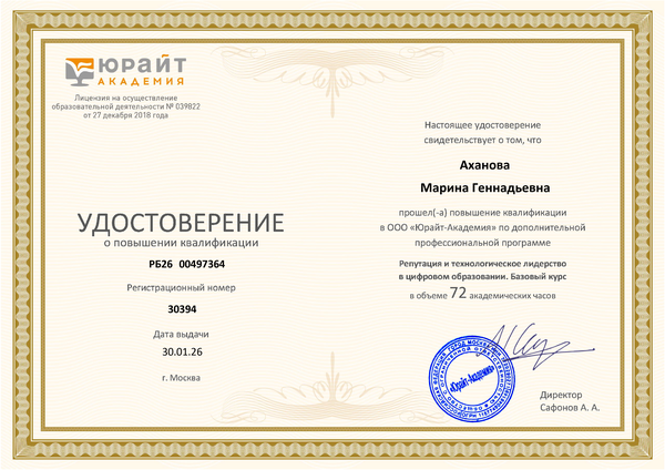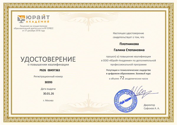 Новости все 02 февраля, 2026 Доценты кафедры английского языка Аханова М.Г. и Плотникова Г.С. приняли участие в работе «XVII зимней школы преподавателей – 2026: Репутация и технологическое лидерство в цифровом образовании»Доценты кафедры английского языка Аханова М.Г. и Плотникова Г.С. приняли участие в работе «XVII зимней школы преподавателей – 2026: Репутация и технологическое лидерство в цифровом образовании», проходившей на базе ЮРАЙТ академии в г. Москве с 26 января по 30 января 2026 года в формате «Квалифицированный участник». Обучение проходило по следующим направлениям: - управление репутацией в цифровой среде; - оценивание технологии и методики цифрового образования; - создание современный цифровой учебный контент; - персонализация обучения под запросы целевой аудитории; - работа с образовательными данными, рейтингами и аналитикой; - принятие решений в этически сложных ситуациях; - работа с контентом, сервисами и данными Юрайта. Организаторами были предоставлены расширенные возможности обсуждения поставленных проблем со спикерами и коллегами в виртуальных комнатах. В результате работы участники школы повысили свои навыки в умении определять перспективные методики и контент, развивать компетенции студентов в области ИИ, использовать возможности образовательной платформы ЮРАЙТ в работе преподавателя общепрофессиональных дисциплин. При успешном прохождении итоговой аттестации квалифицированным участникам была предоставлена возможность прохождения курсов повышения квалификации в объёме 72 ч. |