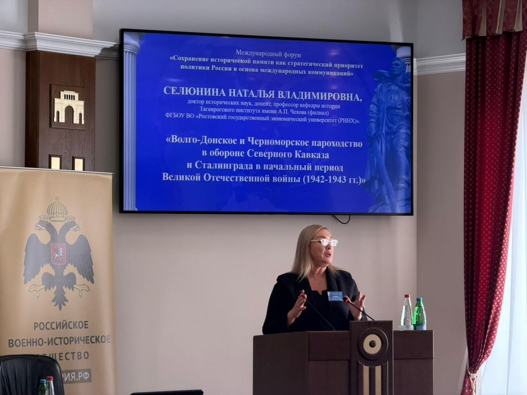 Новости все 02 декабря, 2025 Международный Форум «Сохранение исторической памяти как стратегический приоритет политики России и основа международных коммуникаций»24–26 ноября 2025 года в Ставрополе на площадке Правительства Ставропольского края состоялся Международный форум «Сохранение исторической памяти как стратегический приоритет политики России и основа международных коммуникаций». Мероприятие, проводившееся уже в седьмой раз, способствует развитию конструктивного диалога по вопросам исторической памяти. В Форуме приняли участие спикеры из 11 стран (Россия, Беларусь, Абхазия, Греция, Грузия, Сербия, Сирия, Таджикистан, Монголия, Турция, Чехия). К зарубежным гостям присоединились историки, краеведы, социологи, политологи, психологи, представители общественных и ветеранских организаций, образовательных и культурных учреждений, музеев, политики, учащаяся молодёжь и СМИ из разных городов России. Организаторами выступили Правительство Ставропольского края, Министерство образования и молодёжной политики Ставропольского края и Общероссийская общественно-государственная организация «Российское военно-историческое общество». Целью столь представительного мероприятия стало создание условий для широкого общественного диалога, обмена опытом, результатами исследований и установления контактов между различными научными школами. Особое внимание было уделено вопросам сохранения коллективной памяти народов и развития патриотического сознания молодёжи. Программа Форума включала пленарное заседание и работу шести тематических секций, построенных на принципах междисциплинарного подхода. Таганрогский институт имени А.П. Чехова (филиал) РГЭУ (РИНХ) на Форуме представила профессор кафедры истории, профессор кафедры психологии Н.В. Селюнина. Она выступила модератором секции «Сохранение исторической памяти об освобождении народов мира от нацизма в годы Великой Отечественной и Второй мировой войн и актуальные проблемы современности». В ходе работы секции участники обсудили широкий круг теоретических и практических вопросов, посвящённых концептуальным подходам политики памяти в России, проблематике фальсификации истории, а также многовековому опыту интернациональной взаимопомощи и сотрудничества народов России и зарубежных стран. Выступая с докладом, Н.В. Селюнина отметила уникальную историческую роль нашей страны, неоднократно подвергавшейся агрессии, подчеркнула необходимость осмысления советского периода, идеология которого во многом способствовала победе над нацизмом в Великой Отечественной войне, а также обозначила важность исторического наследия как основы международных коммуникаций и ключевого элемента государственной политики России. Всего в рамках Форума было заявлено более 100 докладов, 80 из которых прозвучали в очном формате. Для гостей мероприятия были организованы выставка Российского военно-исторического общества «За други своя» об интернациональной помощи российских военнослужащих народам мира, а также интерактивные площадки национальных диаспор Ставрополья. Проведение Форума в Ставрополе в очередной раз подчеркнуло важную роль региона как одного из центров консолидации сил, направленных на защиту исторической правды и укрепление международных связей на основе общего культурно-