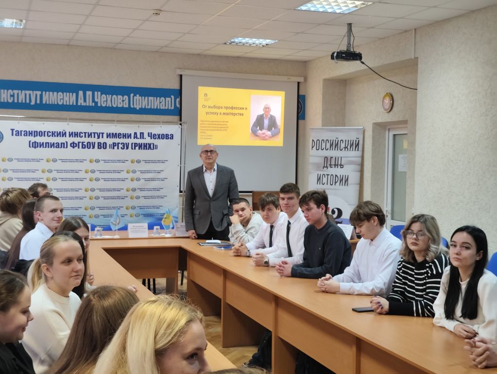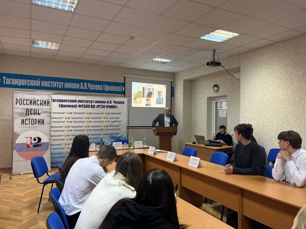 Новости все 04 декабря, 2025 Российский день истории1 декабря состоялось открытие десятой юбилейной научно-просветительской акции факультета истории и филологии «Российский день истории». В этом году она пройдёт в новом формате с 1 по 12 декабря. Напомним, что 1 декабря (по старому стилю, или 12 декабря по новому стилю) 1766 года родился Николай Михайлович Карамзин (1766–1826) – историк, создатель знаменитой «Истории государства Российского», крупнейший русский литератор эпохи сентиментализма, реформатор русского языка. Кроме того, 12 декабря отмечается День Конституции Российской Федерации (с 1993 года). Таким образом, эти два события, приуроченные к 1 (12) декабря, символизируют, по нашему мнению, единство исторического знания и гражданской позиции в России. Мероприятие открыла декан факультета истории и филологии, канд. ист. наук В.А. Агеева. На торжественной церемонии открытия к участникам с приветственным словом обратилась директор Таганрогского института имени А.П. Чехова, канд. филос. наук С.А. Петрушенко. А.Ю. Данильченко — директор народного военно-исторического музейного комплекса Великой Отечественной войны «Самбекские высоты» –– обратился к участникам акции от лица коллектива музея и регионального отделения Российского военно-исторического общества. В своём выступлении Алексей Юрьевич подчеркнул актуальность акции и необходимость её масштабирования до всероссийского уровня. Автор и инициатор проекта «Российский день истории» – заместитель директора по научной работе и проектной деятельности Таганрогского института имени А.П. Чехова (филиала) РГЭУ (РИНХ), канд. ист. наук А.А. Волвенко – рассказал об истоках возникновения идеи и развитии научно-просветительского проекта. Продолжением торжественного открытия стал мастер-класс «От выбора профессии к успеху в мастерстве», который провёл Алексей Александрович Волвенко — профессор кафедры истории, канд. ист. наук, руководитель научной лаборатории «Казачество в истории и памяти» факультета истории и филологии, руководитель магистерской программы «Историческое образование в системе казачьих кадетских учебных заведений». Алексей Александрович рассказал о событиях, книгах и личностях, повлиявших на его становление как учёного-историка, преподавателя высшей школы и административного работника – от заведующего кафедрой до декана факультета и заместителя директора по научной работе и проектной деятельности. Его личный пример профессионального и научного становления вдохновил обучающихся первого и второго курсов по профилям «История» и «Обществознание», «История и музейное дело» на поиск собственных траекторий, о чём свидетельствовали многочисленные вопросы к спикеру. В 2025 году темой научно-просветительского конкурса для школьников «Российский день истории» стала «Великая Победа Великого народа (к 80-й годовщине Победы СССР в Великой Отечественной войне)». До 23 февраля 2026 года школьники, кадеты, обучающиеся лицеев и колледжей могут присылать свои работы организаторам конкурса, предварительно зарегистрировавшись на сайте. |