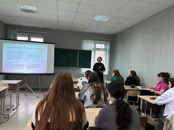 Новости все 05 декабря, 2025 Обучающий семинар на кафедре русского языка, культуры и коррекции речиКафедрой русского языка, культуры и коррекции речи (зав. кафедрой – канд. филол. наук В.С. Анохина) был проведён обучающий семинар, посвящённый вопросу осведомлённости населения о дислексии и дисграфии. Мероприятие было организовано в рамках работы СНО «Логопед+». На встречу со студентами групп ЛОГ-411 и ЛОГ-431 пришла О.В. Николаева, практикующий логопед МОБУ СОШ № 31. Ольга Валерьевна рассказала об особенностях диагностики и коррекции дислексии, познакомила слушателей с приёмами работы при таком речевом нарушении, провела игры и тренинги. В заключение руководитель кружка «Логопед+», доцент кафедры русского языка, культуры и коррекции речи Г.Н. Кобякова, отметила важность проведённого мероприятия в деле формирования профессиональных компетенций учителя-логопеда. |