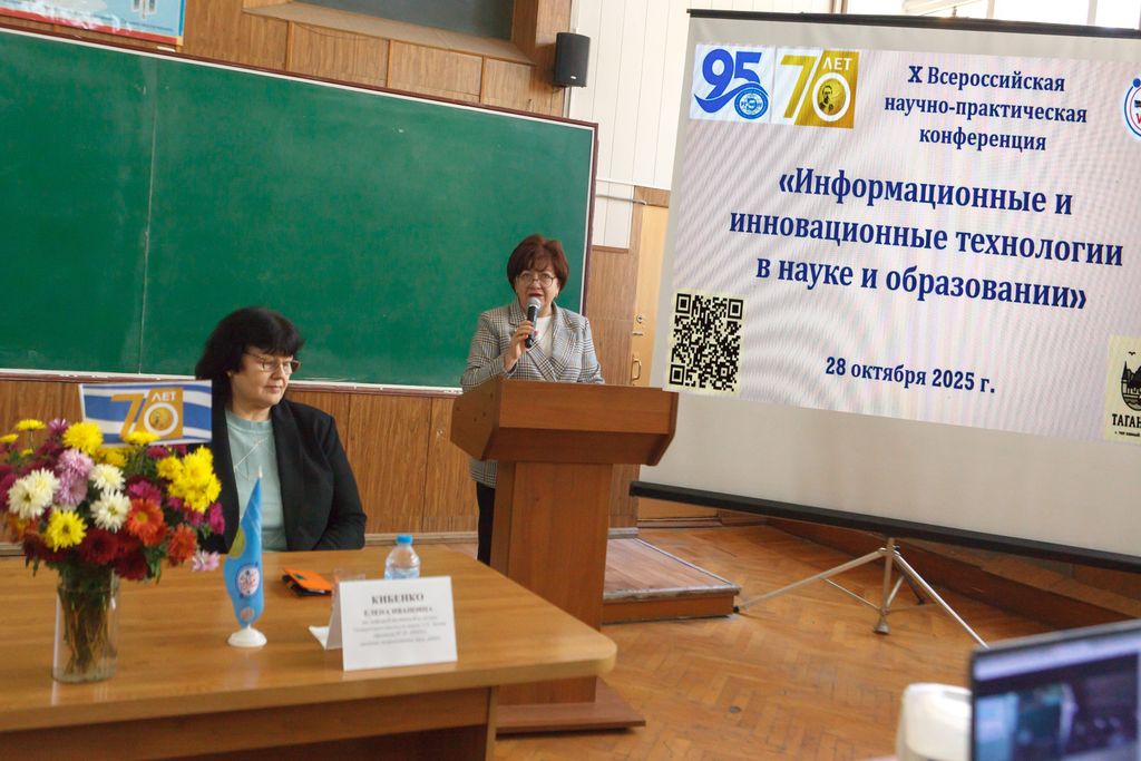 Новости все 06 ноября, 2025 Итоги X Всероссийской научно-практической конференции «Информационные и инновационные технологии в науке и образовании» (с международным участием)28 октября на факультете физики, математики, информатики состоялась X (юбилейная) Всероссийская научно-практическая конференция «Информационные и инновационные технологии в науке и образовании» (с международным участием), посвящённая 70-летию Таганрогского института имени А.П. Чехова (филиала) РГЭУ (РИНХ). Конференция «Информационные и инновационные технологии в науке и образовании» – это знаковое мероприятие Таганрогского института имени А.П. Чехова, направленное на осмысление вопросов, связанных с развитием образования в нашей стране. Современный период развития общества характеризуется сильным влиянием на него информационных технологий, которые проникают во все сферы деятельности человека и образуют глобальное информационное поле. Данная предметная область тесно соприкасается, с одной стороны, с педагогическими и психологическими сферами, а с другой – с результатами, достигнутыми в таких научно-технических направлениях, как телекоммуникационные технологии и сети, компьютерные системы обработки и визуализация информации, искусственный интеллект, автоматизированные системы моделирования сложных процессов и многие другие. Бесспорно, что возможности информационных технологий предоставляют широкое поле деятельности для педагога. Но главное, что решение этих непростых задач во многом зависит от его подготовленности к работе, от прогрессивности взглядов и стремления к непрерывному обучению. Целью проведения конференции является демонстрация достижений учебных заведений и отдельных педагогов в области применения информационных и инновационных технологий в образовании, выявление и распространение передового педагогического опыта. За все годы своего существования в конференции приняли участие более 4000 человек – руководителей учреждений образования, представителей научного и преподавательского сообщества, аспирантов и студентов, иностранных коллег. Участниками данной, юбилейной, конференции стали более 200 представителей регионов Российской Федерации, включая ДНР, ЛНР, Запорожскую и Херсонскую области, а также учёные из Беларуси, Таджикистана, Узбекистана. Представительный состав и широкая география участников конференции свидетельствуют о глубокой заинтересованности учёных и практиков данной тематикой и желании найти оптимальные пути подготовки специалистов, отвечающих новым вызовам современности. Открыла конференцию директор Таганрогского института имени А.П. Чехова (филиала) РГЭУ (РИНХ), кандидат философских наук, доцент Светлана Анатольевна Петрушенко. Светлана Анатольевна отметила роль и значение информационных технологий в науке, образовании и повседневной жизни, приветствовала участников конференции и пожелала им плодотворной работы. С пленарными докладами на конференции выступили:
