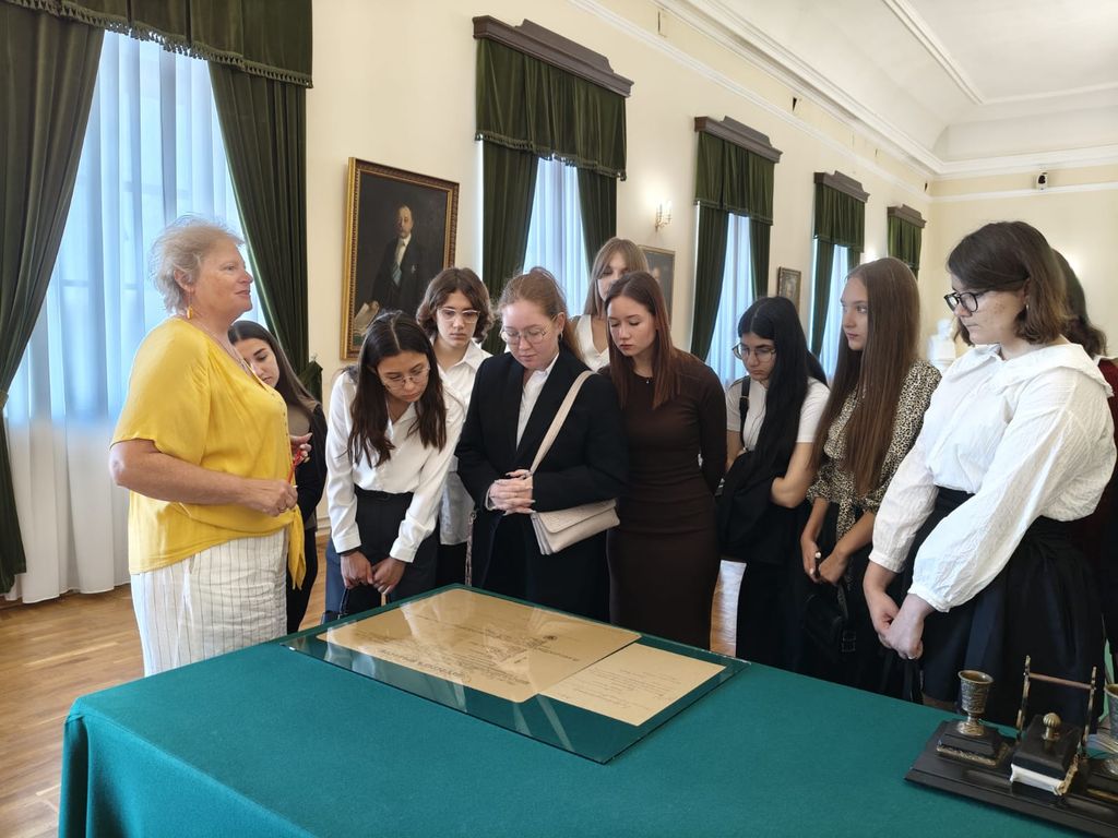 Новости все 06 ноября, 2025 Продолжение проекта Чеховского центра «А.П. Чехов в историко-культурном пространстве Таганрога»Стартовавший в сентябре 2025 года новый проект Чеховского центра «А.П. Чехов в историко-культурном пространстве Таганрога» продолжает свое развитие. В октябре в Литературном музее А.П. Чехова состоялась вторая встреча, которая была посвящена религиозной жизни Таганрога конца XIX века и роли религии в становлении личности А.П. Чехова. Старший научный сотрудник музея Ирина Владимировна Малых провела для студентов-филологов тематическую экскурсию по экспозиции. Прежде всего Ирина Владимировна отметила, что колокольный звон был непременным спутником жизни человека: он не только сопровождал людей на основных жизненных этапах, но и регулярно звучал в городском пространстве. Многонациональный Таганрог был многоконфессиональным городом: кроме русской православной церкви в городе действовали греческая, католическая, протестантская церкви, иудейская синагога. Примечательно, что они не были закрытыми территориями, а составляли единое городское культурно-образовательное пространство: так, три старших сына семьи Чеховых первые полтора года получали образование в Греческой школе, Александр Чехов любил слушать орган в католической церкви, а семья Якова Соломоновича Полякова была известна своей благотворительной деятельностью. Хорошо известно, какое важное место занимало религиозное образование в классической мужской гимназии и какую роль в становлении личности будущего писателя сыграл Ф.П. Покровский – настоятель Успенского собора, преподаватель Закона Божия и автор, пожалуй, самого знаменитого псевдонима А.П. Чехова. Однако религии в жизни юного Антона оказалось так много, что позже он признался: «Я получил в детстве религиозное образование и такое же воспитание… религии у меня теперь нет…». Тем не менее религиозные мотивы и образы нашли отражение в таких рассказах Чехова, как «Архиерей», «Святой ночью», «На страстной неделе», «Степь», «Письмо» и многих других. Несомненно, знание историко-культурного контекста эпохи, полученное студентами во время этой встречи, станет отправной точкой анализа названных произведений. |