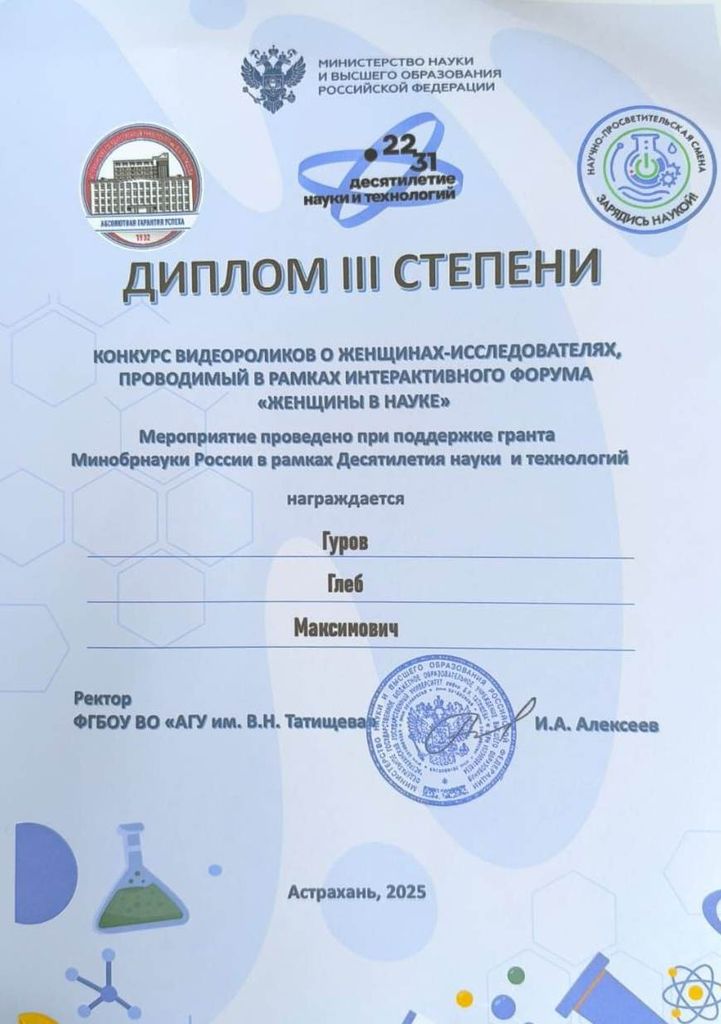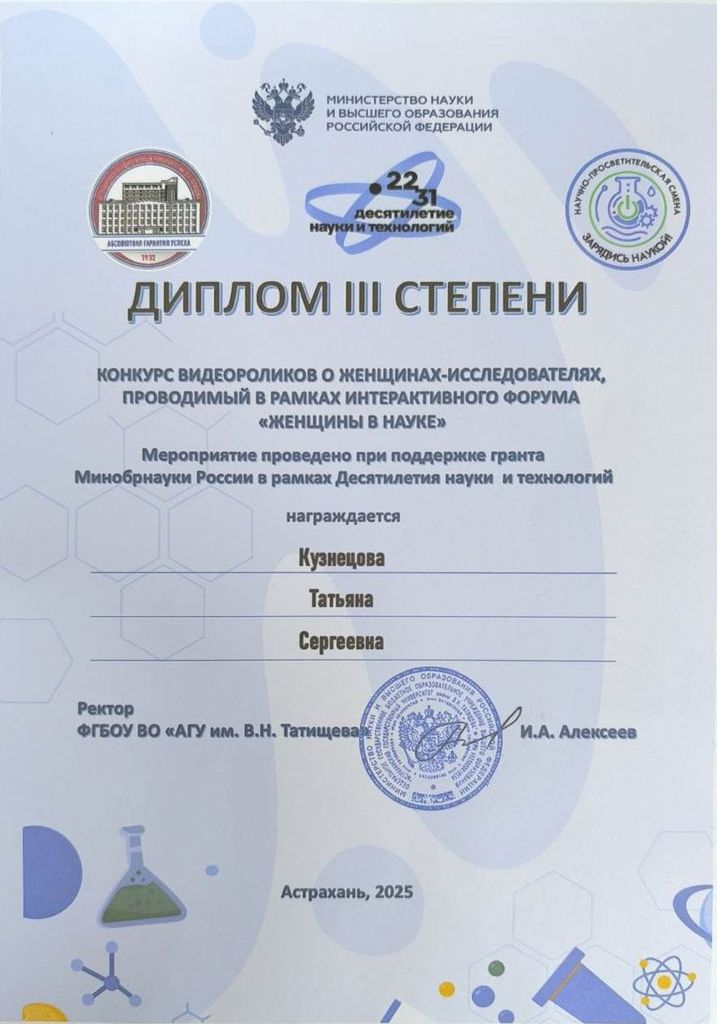 Новости все 08 декабря, 2025 Итоги конкурса видеороликов на иностранных языках о женщинах-исследователяхПоздравляем студентов группы ИЯ-331 факультета иностранных языков Таганрогского института имени А. П. Чехова Кузнецову Татьяну, Пушкину Анну, Гурова Глеба, Трунова Ирина – членов лингвострановедческого кружка, представивших работу «Звёздная тропа Каролины Гершель» (научный руководитель – Е.А. Мурашова) и занявших третье место на конкурсе видеороликов о женщинах-исследователях, организованном ФГБОУ ВО «Астраханский государственный университет имени В.Н. Татищева»! Конкурс, творческий батл, стал одним из ключевых мероприятий интерактивного форума «Женщины в науке», проведённого в Астраханском государственном университете имени В.Н. Татищева при поддержке Минобрнауки России с целью популяризации науки, повышения престижа профессии учёного, привлечения к исследовательской деятельности школьников и студентов. В оргкомитет конкурса поступило более 500 заявок. Среди участников – представители образовательных учреждений Москвы, Санкт-Петербурга, Калининграда, Новосибирска, Симферополя, Великого Новгорода, Курска, Твери, Астрахани, Таганрога и других городов (итоги конкурса см. https://asu-edu.ru/news/18649-v-agu-podveli-itogi-konkursa-videorolikov-o-jenshinahissledovateliah.html Коллектив кафедры немецкого и французского языков гордится достижениями своих студентов и выражает уверенность, что увлечённость иностранными языками и интересом к культуре откроет им новые горизонты в науке и образовании. Поздравляем ребят с успехом и желаем дальнейших ярких побед и профессиональных свершений! |
