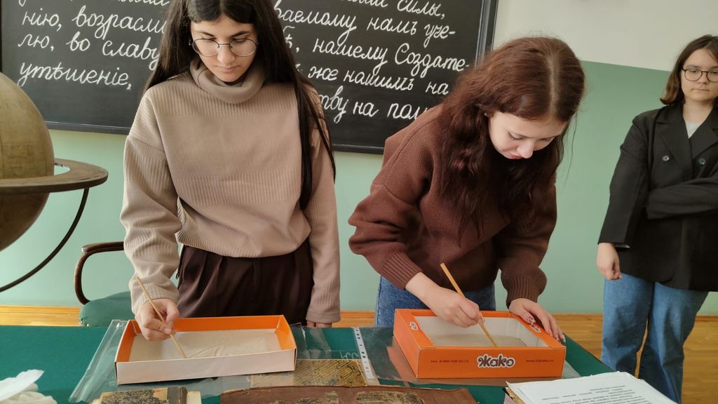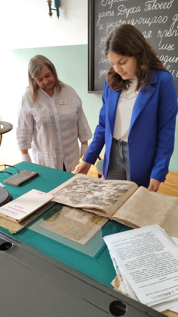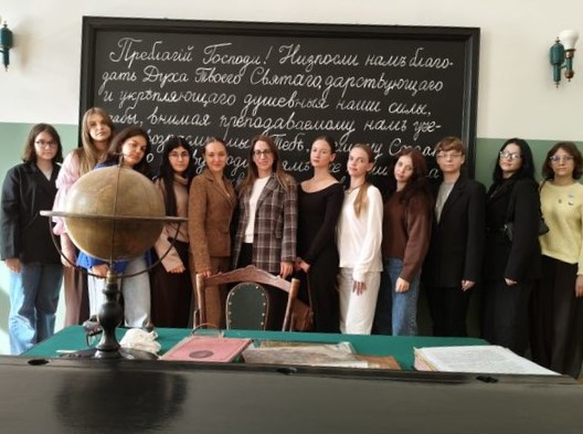 Новости все 10 ноября, 2025 «Урок словесности» для студентов-филологовСтуденты-филологи 2 курса, принимающие участие в реализации проекта Чеховского центра «А.П. Чехов в историко-культурном пространстве Таганрога», посетили в Литературном музее А.П. Чехова «Урок словесности», который провела старший научный сотрудник музея Анна Геннадьевна Алферьева. «Урок словесности» позволил не только окунуться в гимназическую атмосферу XIX века, но и получить новые знания о становлении личности Антона Павловича Чехова. Так, студенты узнали о том, что гимназистам необходимо было писать прошение о допуске к «испытанию зрелости», и увидели автограф выпускника Чехова, познакомились с его аттестатом зрелости, узнали тему итогового сочинения и причину снижения оценки. Анна Геннадьевна напомнила будущим филологам историю происхождения русской азбуки, рассказала об основных этапах ее реформирования в России. Бесценным опытом стало соприкосновение с уникальными экспонатами из фонда редкой книги: «Азбукой», «Священной историей», учебниками «Грамматика церковно-славянского языка» и «Уроки Закона Божия», подлинными тетрадью и дневником гимназисток Мариинской гимназии и др. Открытием для современных студентов стал процесс обучения гимназистов каллиграфии: сначала они учились писать буквы на песке, затем – на черных аспидных досках мелом и только потом получали разрешение писать чернилами в тетради. В завершение встречи Анна Геннадьевна рассказала о значении работы в архиве, причем не только для музейного работника, но и для филолога-исследователя. |