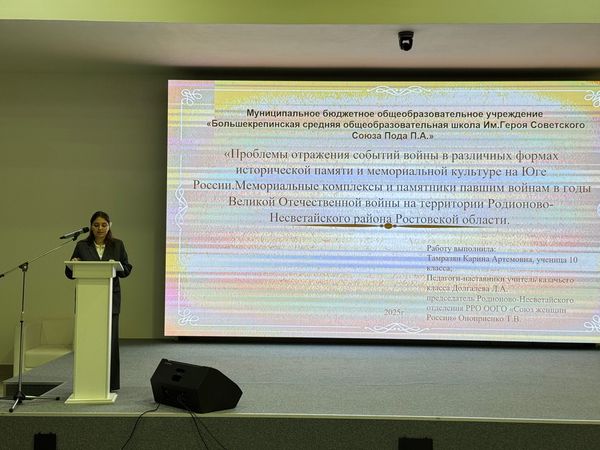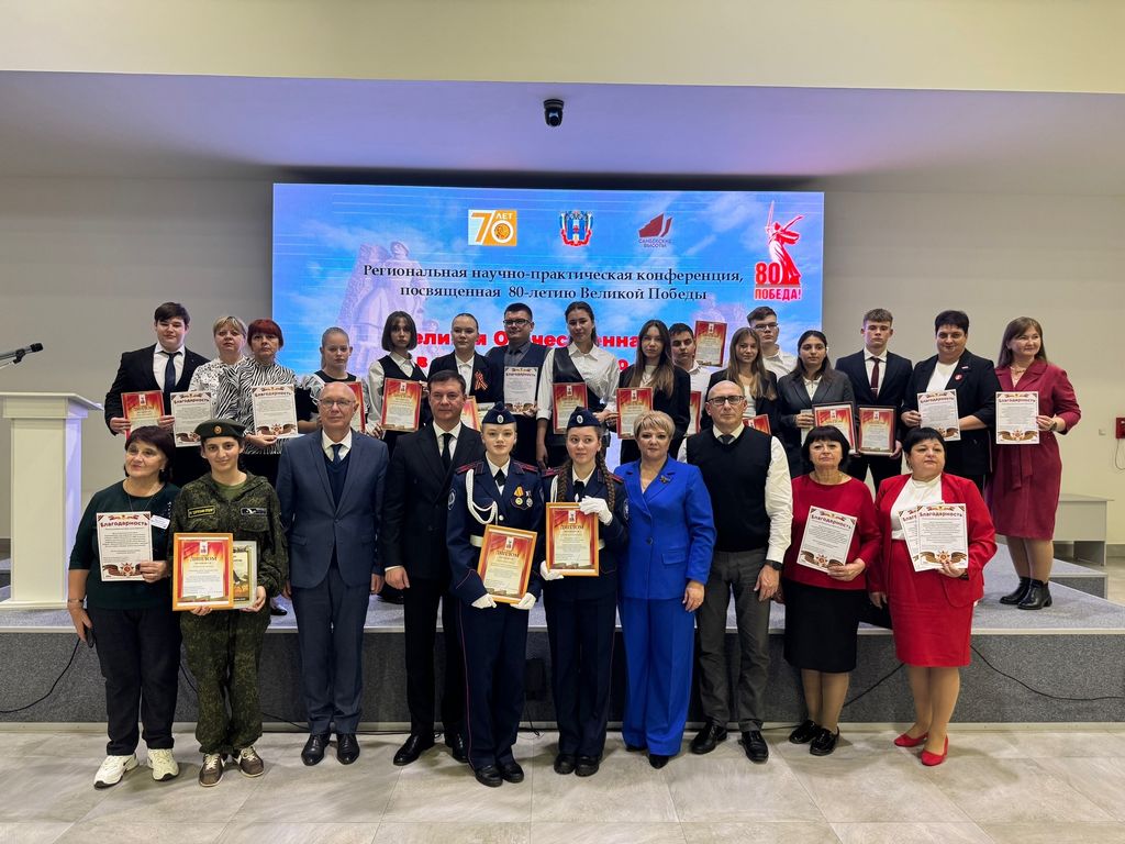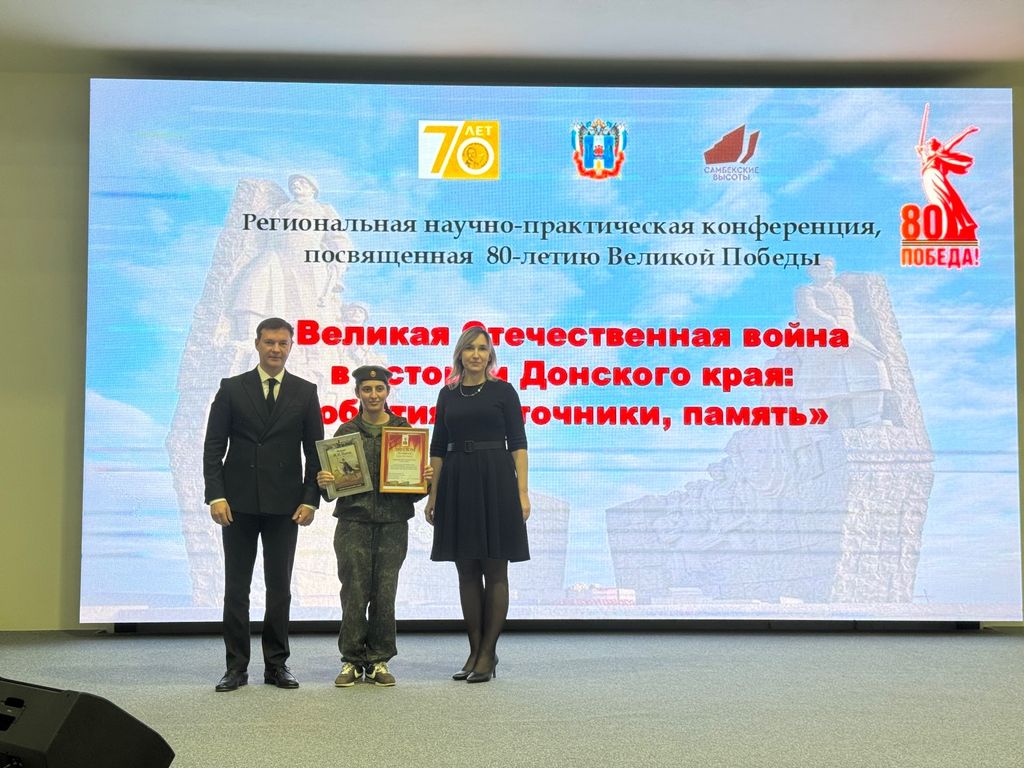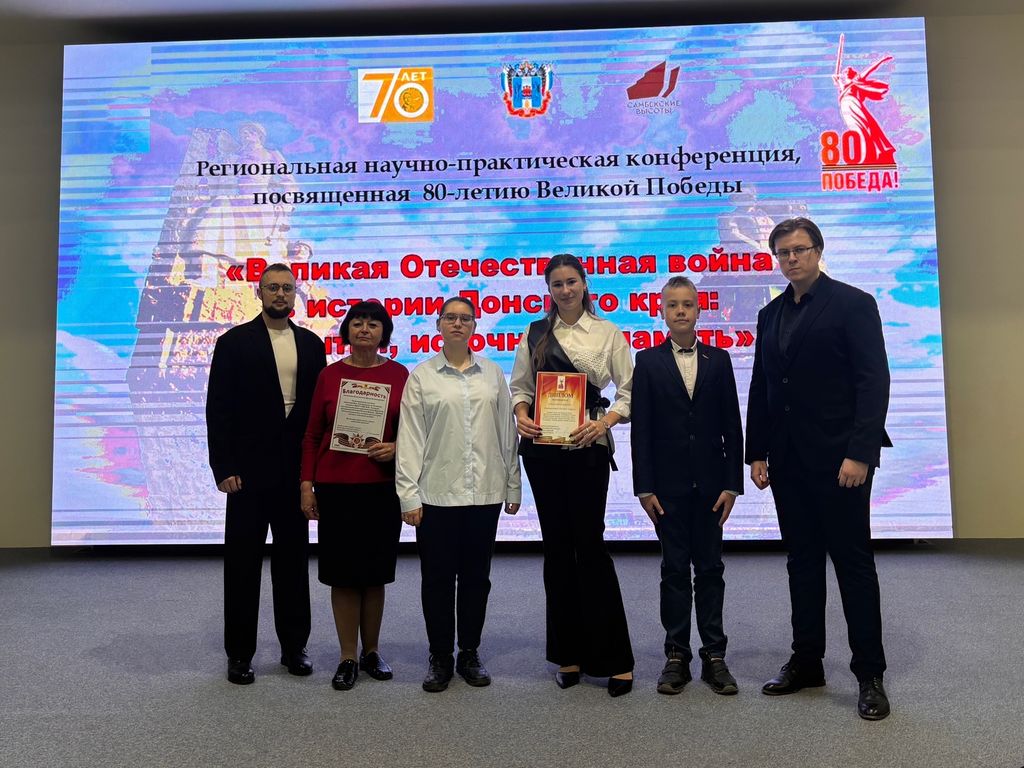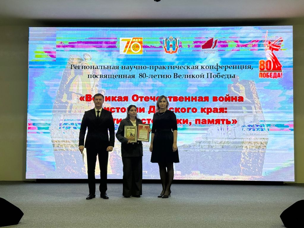 Новости все 13 ноября, 2025 Научно-практическая конференция, посвященная 80-летию Великой Победы, «Великая Отечественная война в истории Донского края: события, источники, память»6 ноября состоялась научно-практическая конференция, посвященная 80-летию Великой Победы, «Великая Отечественная война в истории Донского края: события, источники, память». Мероприятие, прошедшее в рамках сотрудничества Ростовского государственного экономического университета (РИНХ) и Департамента по делам казачества и кадетских учебных заведений Ростовской области, было организовано научной лабораторией «Казачество в истории и памяти» факультета истории и филологии Таганрогского института имени А. П. Чехова при поддержке Министерства образования Ростовской области и Народного военно-исторического музейного комплекса Великой Отечественной войны «Самбекские высоты». Мероприятие открыла декан факультета истории и филологии канд. ист. наук В. А. Агеева. С приветственными словами к участникам обратились: В экспертную комиссию конференции, в которую вошли представители профессорско-преподавательского состава факультета истории и филологии, поступило более 80 работ обучающихся школ, кадетских корпусов и СПО Ростовской области, в том числе из Ростова-на-Дону, Шахт, Новочеркасска, Таганрога, Батайска, станицы Большекрепинской, а также Азовского, Верхнедонского, Неклиновского, Сальского, Куйбышевского, Матвеево-Курганского, Орловского и других районов. Активное участие в конференции приняли воспитанники кадетских корпусов: Белокалитвинского Матвея Платова, Орловского, Донского Императора Александра III, Шахтинского генерала Я. П. Бакланова, Каменского генерала Ф. П. Денисова. Основными темами докладов-проектов участников конференции стали: – Подвиги воинов-земляков в годы Великой Отечественной войны. – Оккупационный режим и истребительная политика нацистов на территории Донского края. – Добровольческое движение и патриотические инициативы населения Дона в годы войны. – Участие в Великой Отечественной войне донского казачества. – Семейная память о военном лихолетье 1941–1945 годов. – Проблемы отражения событий войны в мемориальной культуре Дона и другие. Научно-исследовательские работы участников конференции масштабно, содержательно и ярко продемонстрировали, что Донская земля помнит о злодеяниях немецко-фашистских захватчиков и гордится бессмертными подвигами поколения Победителей. |