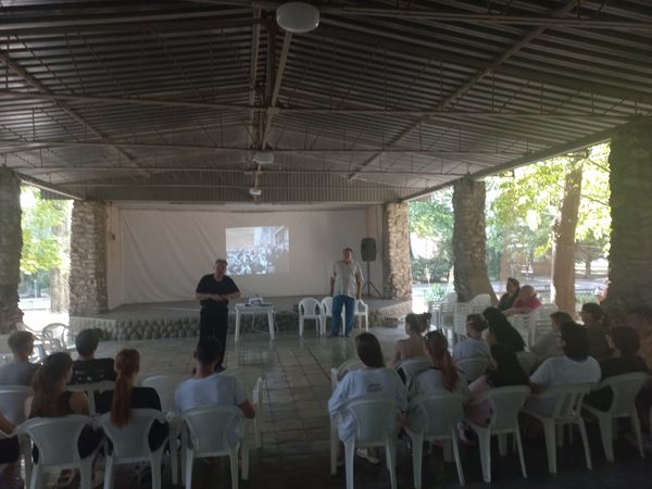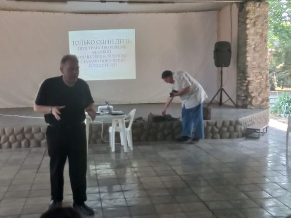 Новости все 15 июля, 2025 Кафедра истории провела научно-просветительское интерактивное занятие в СОЛ «Ивушка»11 июля в связи с празднованием 80-летия Победы нашей страны и нашего многонационального народа в Великой Отечественной войне в СОЛ «Ивушка» для студентов состоялось мероприятие кафедры истории под названием «Только один день: пространство и время Великой Отечественной войны глазами поколения Победителей». Тематическое занятие, посвященное истории Великой Отечественной войны с акцентом на историю войны на землях нашего Донского края, провели заведующий кафедрой истории, доцент Гуров М.И. и доцент кафедры истории Качевский П.С. Организатором данного мероприятия выступила декан факультета истории и филологии, доцент Агеева В.А. В начале занятия Гуров М.И. рассказал собравшимся о том, как советские люди воспринимали реалии первых тяжелых дней и месяцев Великой Отечественной войны, каковы были их повседневные действия в это время, как проявилось на деле их горячее и искреннее стремление победить врага, вторгшегося на территорию нашей страны 22 июня 1941 года. Особый интерес студентов вызвали продемонстрированные документальные свидетельства той эпохи о повседневном героизме наших солдат на фронте и мирного населения в тылу, в том числе во вражеском тылу, на временно оккупированной территории. Затем Качевский П.С. провел экскурсию-погружение в прошлое по теме «Один день красноармейца на фронте Великой Отечественной войны» с помощью демонстрации подлинных артефактов – военного снаряжения и предметов военного быта наших советских солдат, воевавших с германскими нацистами на Миус-фронте под Таганрогом в период 1941-1943 гг. В завершение занятия преподаватели кафедры истории ответили на вопросы аудитории по теме мероприятия, а затем сфотографировались на память об этой интересной и познавательной встрече. |
