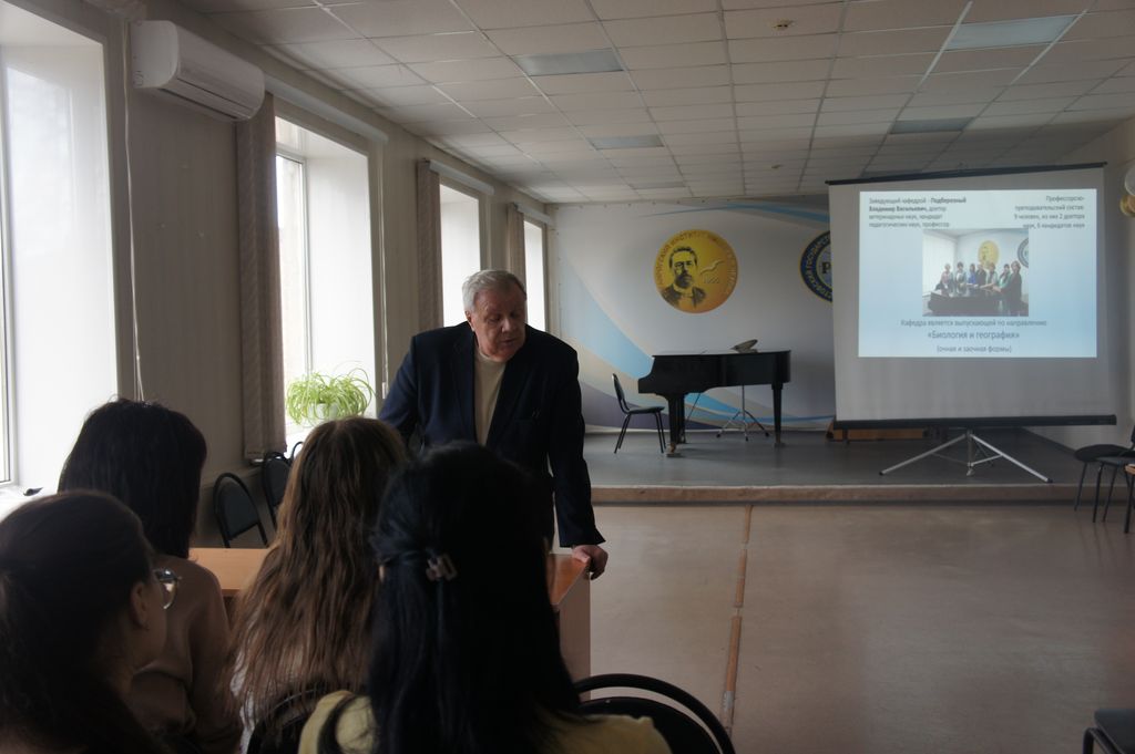Новости все 16 декабря, 2025 День открытых дверей на факультете педагогики и методики дошкольного, начального и дополнительного образования13 декабря 2025 года на факультете педагогики и методики дошкольного, начального и дополнительного образования состоялся День открытых дверей, за организацию и проведение которого ответственной была назначена кафедра биолого-географического образования и здоровьесберегающих дисциплин. Потенциальных абитуриентов встречали и регистрировали студенты второго и третьего курса профиля «Биология и география». Декан Светлана Васильевна Гармаш подробно рассказала об особенностях обучения в вузе, о студенческой жизни и традициях факультета. Заведующий кафедрой биолого-географического образования и здоровьесберегающих дисциплин Владимир Васильевич Подберезный отметил, что студенты профиля «Биология и география» отличаются трудолюбием и ответственностью, а обучают их высококвалифицированные преподаватели. Доцент Елена Алексеевна Першонкова дополнила выступления презентацией об образовательных программах и мероприятиях кафедры. |