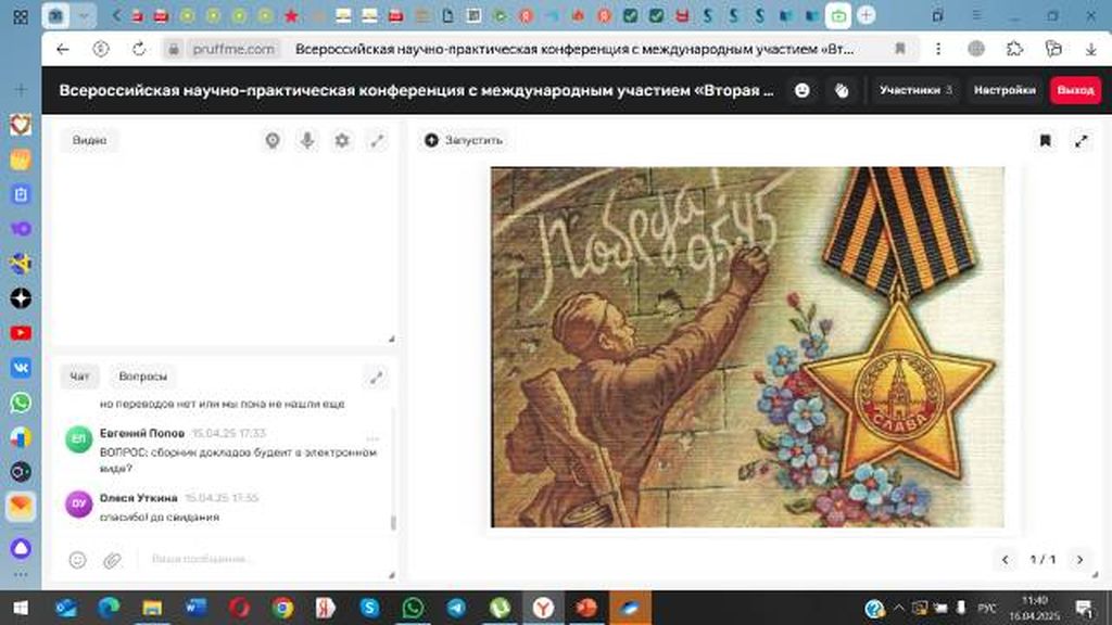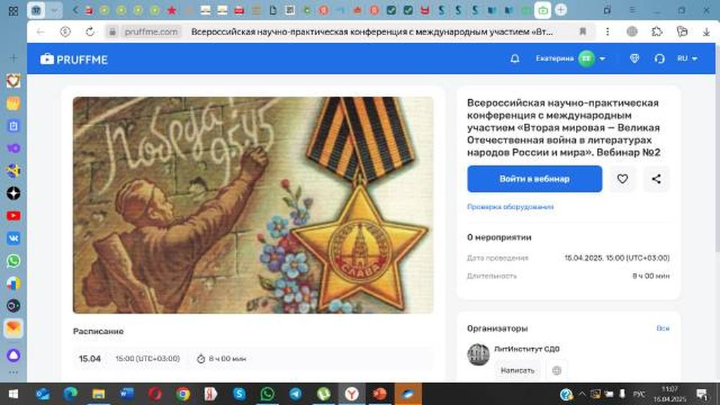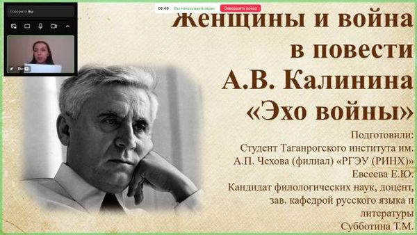 Новости все 19 мая, 2025 Екатерина Евсеева (группа РЯЛ-251 факультета истории и филологии) – участница Всероссийской научно-практической конференции по проблемам освещения событий Великой Отечественной войны в литературеСтудентка 5 курса факультета истории и филологии Екатерина Евсеева была приглашена к участию в качестве докладчика на Всероссийскую научно-практическую конференцию с международным участием «Вторая мировая — Великая Отечественная война в литературах народов России и мира». Конференция, организаторами которой стали Литературный институт имени А.М. Горького и Научно-образовательный и культурно-просветительный центр «Дом национальных литератур» (Москва) проводится в ознаменование восьмидесятилетия Победы над гитлеровским нацизмом в формате научно-просветительского цикла «1941 – 1945 – 2025. Память и Слава». Участниками конференции стали известные филологи, кандидаты и доктора наук из университетов Москвы, Санкт-Петербурга, Тулы, Архангельска, Ставрополя, Мариуполя, Нижнего Новгорода, Красноярска, Петрозаводска, а также научные сотрудники Литературного института имени А.М. Горького. Е. Евсеева – единственная студентка из числа участников конференции – представила слушателям доклад на тему «Женщины и война в повести А.В. Калинина “Эхо войны”» (научный руководитель – канд. филол. наук, доцент Т.М. Субботина). Выступление Е. Евсеевой было с одобрением принято авторитетными участниками конференции, а написанная по материалам доклада статья вошла в коллективную монографию, которая будет издана в Литературном институте имени А.М. Горького. |