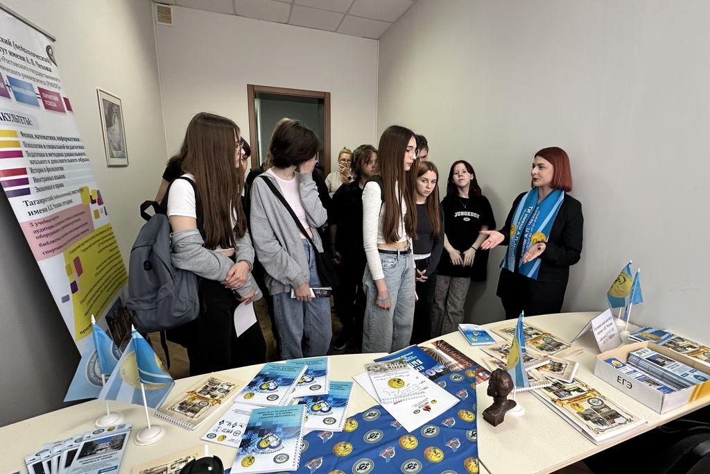 Новости все 21 апреля, 2025 «Фестиваль профессий» (ярмарка учебных мест) для учащихся общеобразовательных организаций города Таганрога18 апреля 2025 года ГКУ РО «Центр занятости населения города Таганрога», в рамках проведения регионального этапа Всероссийской ярмарки трудоустройства, организовал и провел мероприятие «Фестиваль профессий» (ярмарка учебных мест) для учащихся общеобразовательных организаций города Таганрога. Цель данного мероприятия - помочь учащимся познакомиться с организациями среднего профессионального и высшего образования, а также сориентироваться в выборе профессии, ведь данное решение позволит в будущем стать профессионалом своего дела, обрести уверенность. Таганрогский институт имени А.П. Чехова (филиал) РГЭУ (РИНХ) представляли ответственный за приём, главный юрисконсульт Светлана Петровна Шевченко, социолог отдела воспитательной и профоориентационной работы, организационного сопровождения деятельности и развития карьеры Валерия Валерьевна Маслова, заведующая лабораторией факультета физики, математики, информатики Анастасия Николаевна Плотникова. Присутствующие на встрече учащиеся и сопровождающие их учителя с интересом слушали о направлениях подготовки и профилях среднего профессионального и высшего образования, открытых к набору в 2025 году. Также были вручены информационные буклеты и листовки с полными сведениями о деятельности Таганрогского института имени А.П. Чехова, контактами приемной комиссии и факультетов, яркие флажки с символикой. Ярмарка является отличным шансом для школьников узнать больше об учебных заведениях города Таганрога, возможных вариантах получения профессионального образования и позволяет сделать осознанный выбор своей будущей профессии. |