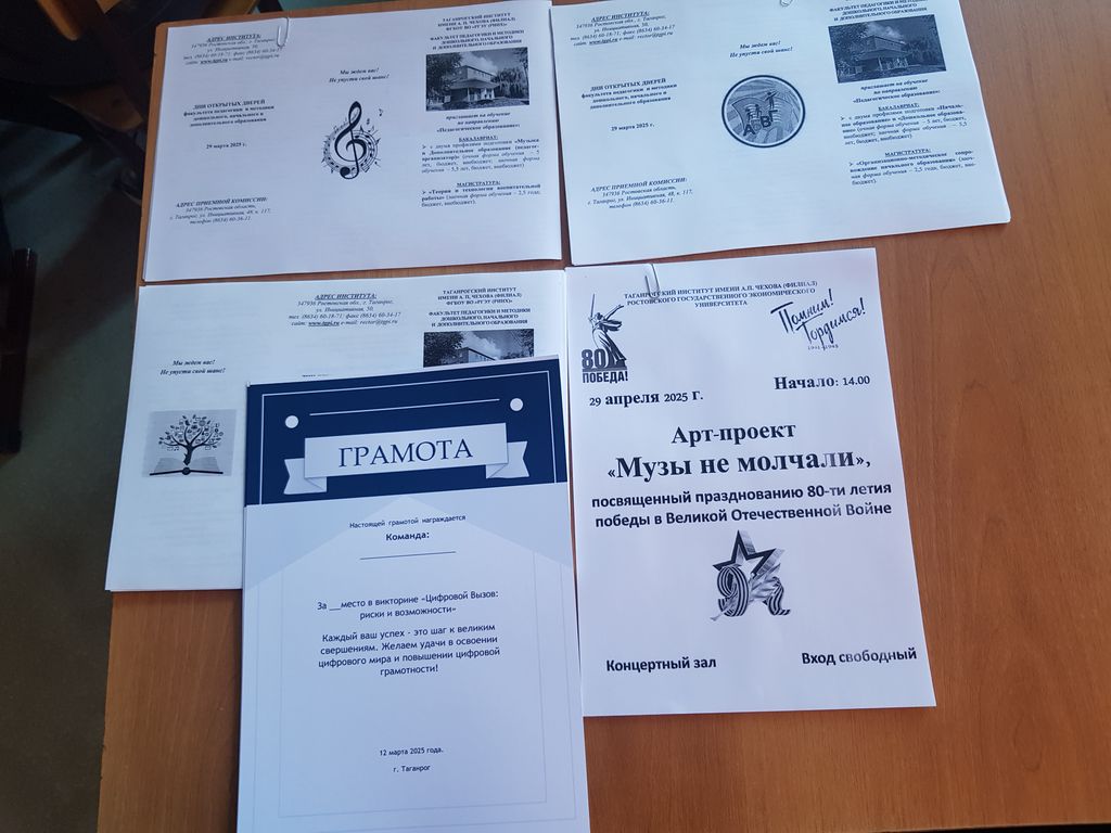Новости все 24 апреля, 2025 Профориентационная работа кафедры педагогики дошкольного, начального и дополнительного образования с обучающимися ГБОУ РО «Таганрогский педагогический лицей-интернат»Совсем скоро сегодняшним одиннадцатиклассникам предстоит сделать серьезный выбор – определиться с будущей профессией. Кем стать? Куда пойти учиться? Это самые главные вопросы для них в настоящий момент. Чтобы выпускникам проще было ориентироваться в мире профессий 22 апреля профессор кафедры педагогики дошкольного, начального и дополнительного образования Марина Алексеевна Пуйлова провела встречу с обучающимися 11-х классов Таганрогского педагогического лицея-интерната. В ходе общения выпускники узнали о профилях подготовки, реализуемых в Таганрогском институте имени А.П. Чехова. Наиболее подробно Марина Алексеевна рассказала о профилях подготовки на факультете педагогики и методики дошкольного, начального и дополнительного образования, в том числе и о возможности получения образования по специальности СПО 44.02.02 «Преподавание в начальных классах». Ребятам рассказали об условиях поступления и обучения, о возможностях трудоустройства по окончании вуза, и, конечно, о студенческой жизни, которая в ТИ имени А.П. Чехова очень яркая и насыщенная! Студентка 4 курса сдвоенного профиля «Музыка и дополнительное образование (педагог-организатор)» Елизавета Евмушкова провела викторину «Цифровой Вызов: Риски и Возможности». Этот интерактивный способ позволил не только узнать больше о преимуществах и опасностях цифрового мира, но и показал разносторонние интересы студентов творческого профиля. В процессе игры ребята прошли увлекательный путь, отвечая на вопросы о кибербезопасности, этике использования данных и будущем цифрового мира. Желаем ребятам успешной сдачи ЕГЭ и правильного выбора будущей профессии. Ждем их в ТИ имени А.П. Чехова. |