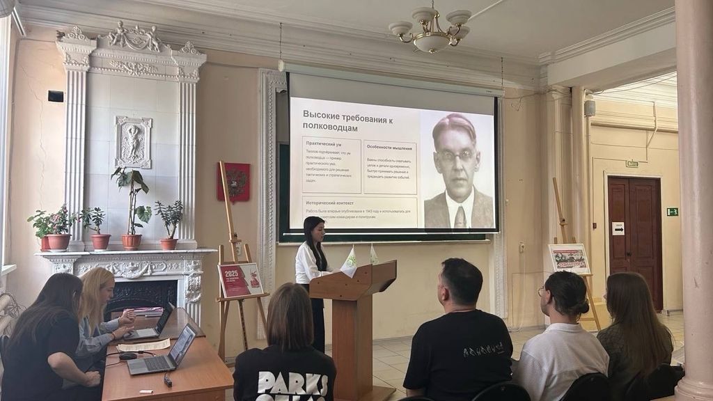 Новости все 26 мая, 2025 Кафедра психологии продолжает реализацию просветительского проекта «Судьбы героев»В мае 2025 г. кафедра психологии продолжила реализацию просветительского проекта «Судьбы героев». Преподаватели кафедры (зав. каф. О.А. Холина, доц. А.В. Макаров, асс. К.В. Гуменюк) организовали для студентов 1 и 3 курсов, обучающихся по профилю «Психологическое консультирование и коучинг», две встречи: «Развитие психологии в годы Великой Отечественной войны» и «Память строкой». На первом занятии обучающиеся группы ПСХ-511 вместе с наставниками рассмотрели основные направления деятельности психологов (А.Р. Лурия, Б.М. Теплов, С.Л. Рубинштейн, Б.В. Зейгарник, Г.М. Андреева, Д.Б. Эльконин и др.) и оценили влияние военного опыта на последующее развитие отечественной психологии. В подготовленных студентами презентациях были затронуты проблемы психологического обеспечения боевых операций, изучения психофизиологических реакций военнослужащих в экстремальных ситуациях, подготовки специалистов психологического профиля для фронта, подготовки командного состава и др. Вторая встреча прошла в формате читательской конференции: каждый студент группы ПСХ-531 выбрал стихотворение и прочитал его, объяснив свой выбор. Мероприятие проходило в тёплой и живой обстановке, сопровождаемой чтением вслух известных произведений А. Суркова, Р. Рождественского, Б.А. Слуцкого, Ю. Друниной, О. Берггольц, К. Симонова и др. Стихи являются мощным средством воздействия на психику человека. Через образы, метафоры и ритм стихотворения читатель (зритель) переживает особые эмоциональные состояния, нередко помогающие разобраться в своих чувствах и мыслях. Погружение студентов в историю и литературу Великой Отечественной войны способствует развитию критического мышления, эстетического вкуса и нравственного воспитания молодёжи. «Судьбы героев» — проект с говорящим названием, который в год 80-летия Великой Победы вызывает живой отклик у каждого, кто с ним соприкасается. |