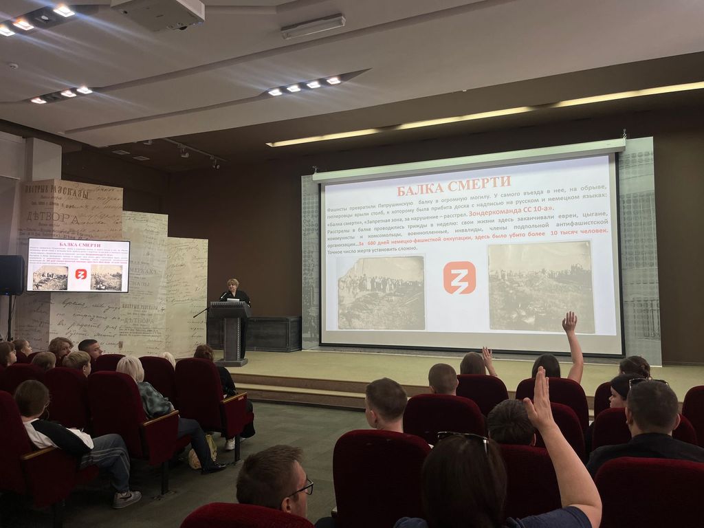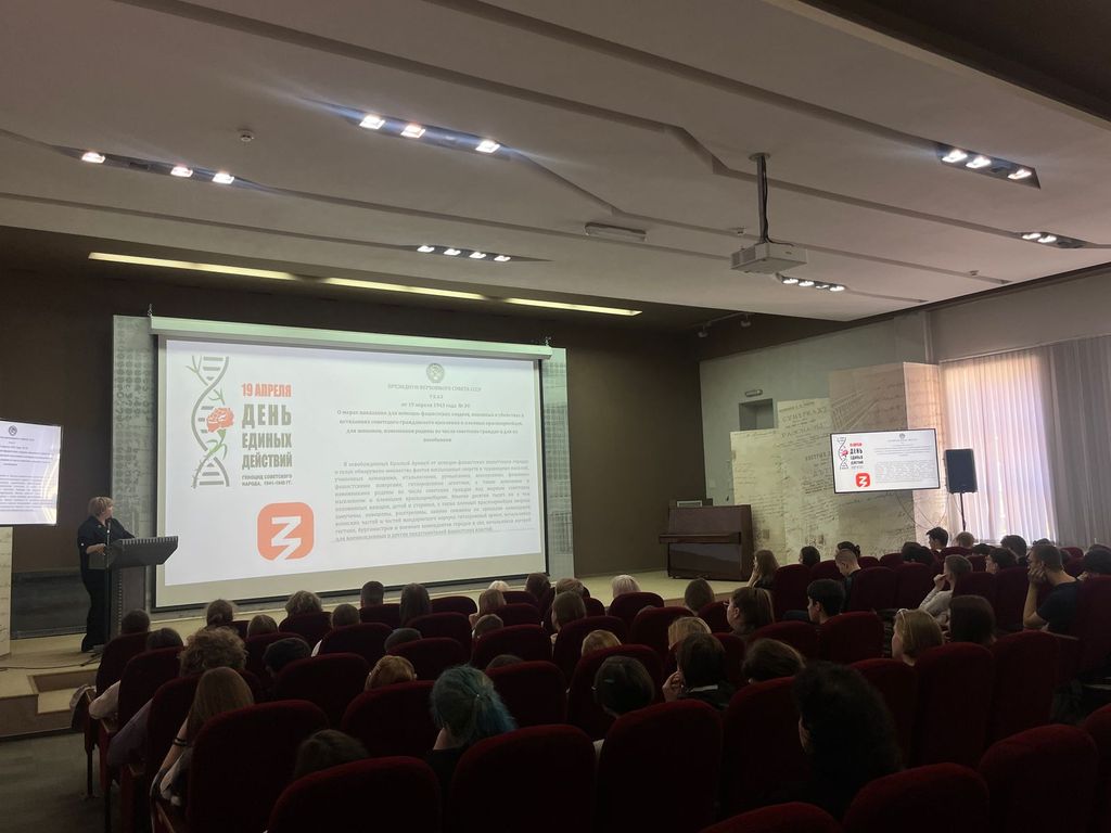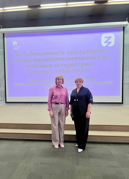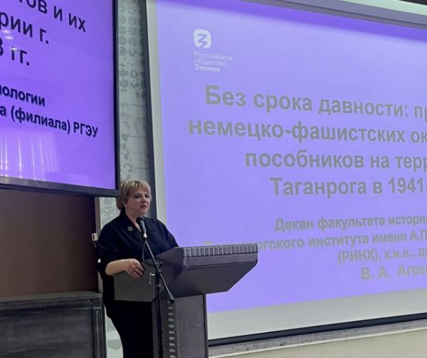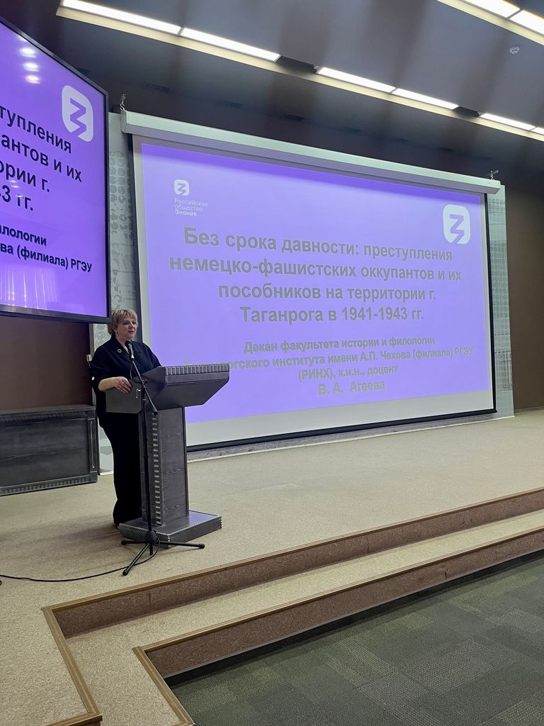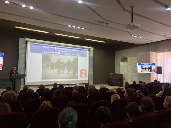 Новости все 30 апреля, 2025 Лекция декана факультета истории и филологии В. А. Агеевой в Центральной городской публичной библиотеки имени А.П. ЧеховаДекан факультета истории и филологии Таганрогского института имени А. П. Чехова (филиала) РГЭУ (РИНХ), канд. ист. наук, доцент В. А. Агеева в рамках проекта «Российское общество «Знание» – «Знание. Лекторий» прочитала лекцию «Без срока давности: преступления немецко-фашистских оккупантов и их пособников на территории г. Таганрога в 1941-1943 гг.» в конференц-зале центральной городской публичной библиотеки имени А.П. Чехова. В качестве слушателей выступили студенты Таганрогского Механического колледжа и обучающиеся МАОУ СОШ №10 города Таганрога. В содержание нашло отражение правовое и историческое обоснование проведения 19 апреля Дня единых действий в память о геноциде советского народа нацистами и их пособниками в годы Великой Отечественной войны 1941-1945 годов. Особое внимание было уделено Указу Президиума Верховного Совета СССР № 39 от 19 апреля 1943 года «О мерах наказания для немецко-фашистских злодеев, виновных в убийствах и истязаниях советского гражданского населения и пленных красноармейцев, для шпионов, изменников родины из числа советских граждан и для их пособников». Так, правительство впервые официально заявило, что идет не просто война, а война на уничтожение советского народа. В ходе лекции также были представлены следующие факты: уничтожения больных из отделения для душевнобольных 5-й городской больницы, акция Холокоста; расстрелы мирных жителей и военнопленных на территории г. Таганрога и в Петрушинской «Балке смерти», преступления против детства; угон на принудительные работы в Третий рейх. Лектор также обратила внимание на создание оккупантами в городе жизненных условий, рассчитанных на полное или частичное физическое уничтожение мирного населения. В заключение лектор подчеркнула, что главной целью гитлеровцев в войне против советского государства было завоевание «жизненного пространства», которое им предстояло колонизировать и в значительной степени заселить людьми немецкой крови. Соответственно коренное население, преимущественно славян, они собирались радикально сократить с помощью разных истребительных практик. |