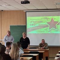 20 марта на факультете экономики и права состоялась знаковая встреча для студентов групп ЮР-611 (куратор В.А. Тимофеенко), ПРО-611 (куратор Н.С. Холодковская) и ПРО-631 (куратор С.С. Федорцова) с командиром разведывательно-штурмового подразделения 1-го мотострелкового батальона 102-го мотострелкового Слонимско-Померанского Краснознаменного, ордена Суворова и Кутузова полка, гвардии старшиной Юрием Владимировичем Михайлец, позывной «Докер». Отец двух дочерей, обучающихся на факультете экономики и права по направлению «Менеджмент».