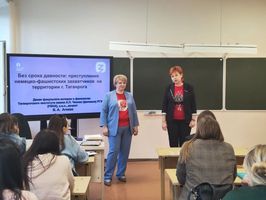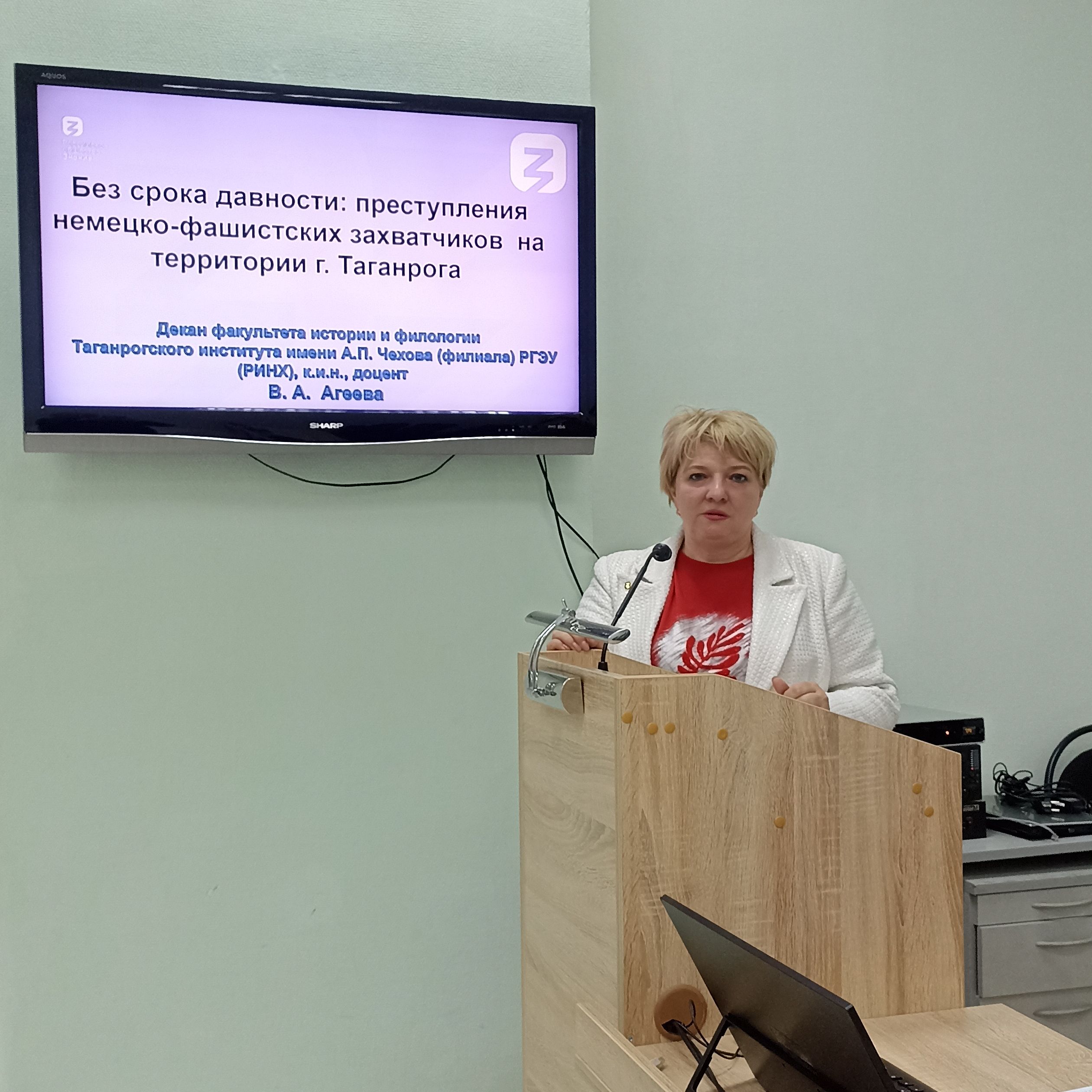 В преддверии Дня памяти жертв геноцида советского народа, совершённого нацистами и их пособниками в годы Великой Отечественной войны, декан факультета истории и филологии Таганрогского института имени А. П. Чехова (филиала) РГЭУ (РИНХ), кандидат исторических наук, доцент В.А. Агеева выступила в качестве лектора Российского общества «Знание» и прочитала лекцию на площадке Главного управления Федеральной службы судебных приставов по Ростовской области.