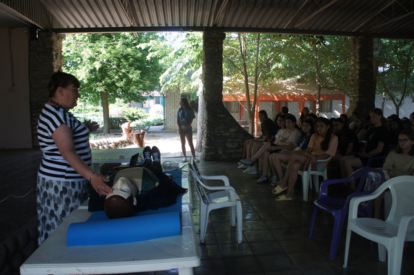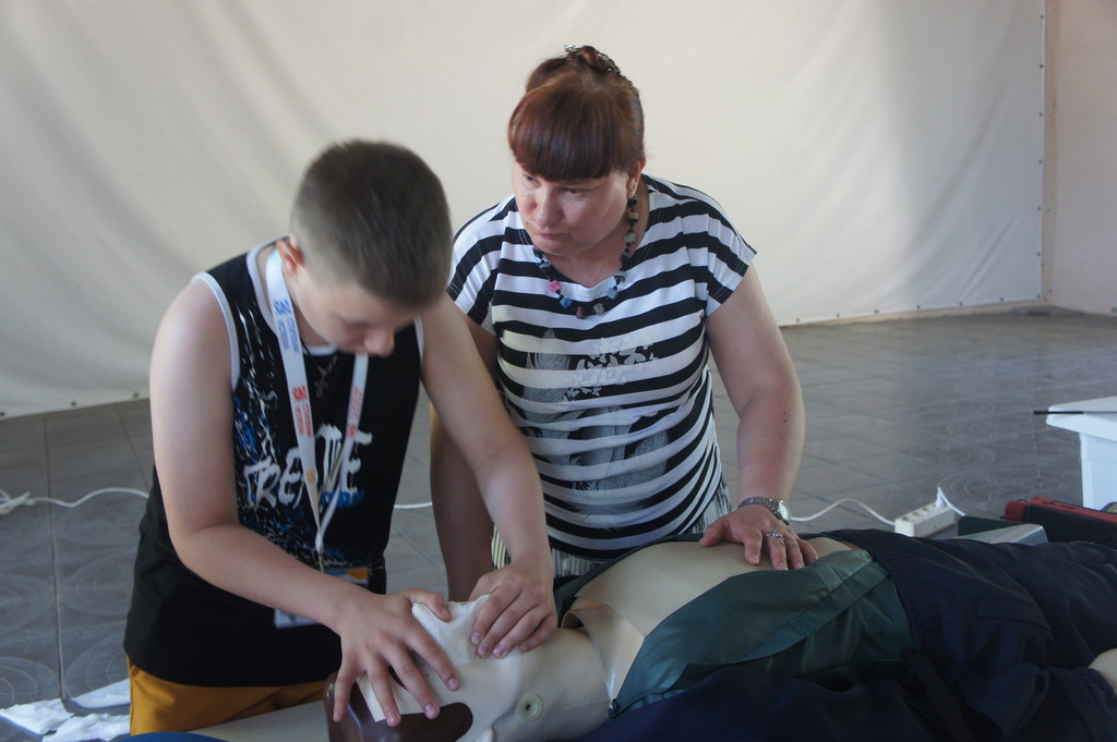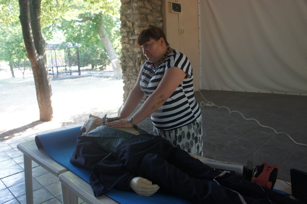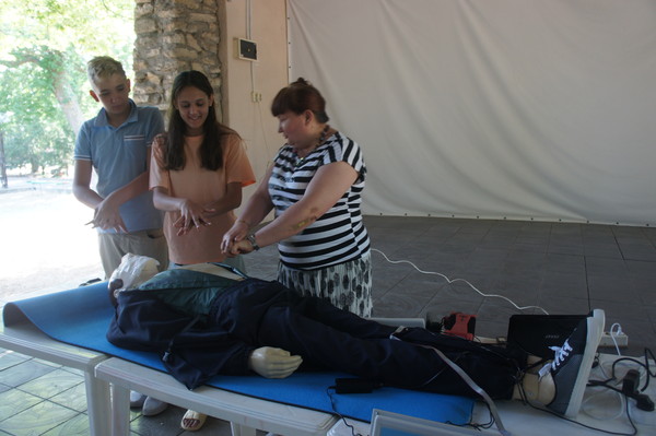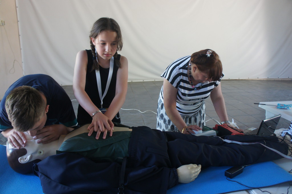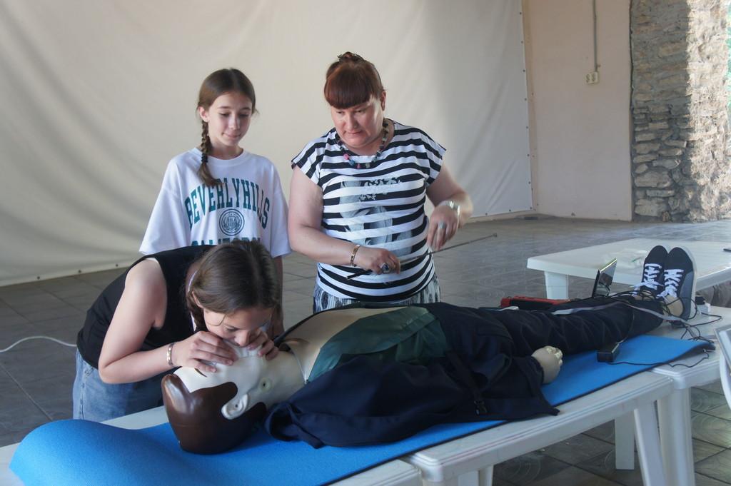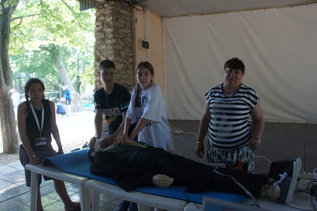 Проведение занятия на тренажере сердечно-легочной и мозговой реанимации Максим-III-01К в спортивно-оздоровительном лагере «Ивушка»11 июня 2025 года на площадке спортивно-оздоровительного лагеря «Ивушка» доценты кафедры биолого-географического образования и здоровьесберегающих дисциплин Ирина Владимировна Лапшина и Елена Алексеевна Першонкова провели для патриотической профильной смены обучающихся образовательных организаций Ростовской области «История моей страны 2025» практическое занятие на тренажере сердечно-легочной и мозговой реанимации Максим-III-01К. Были показаны приемы успешной реанимации человека непосредственно на месте происшествия (при внезапной остановке сердца и прекращении дыхания или нарушении функции сердца, ритма и глубины дыхания в результате производственной травмы, поражения электрическим током и т.п.). На практическом занятии отрабатывались навыки самостоятельного проведения сердечно-легочной реанимации. Школьники увлеченно работали в парах, стараясь выполнить важную задачу: спасти человека.