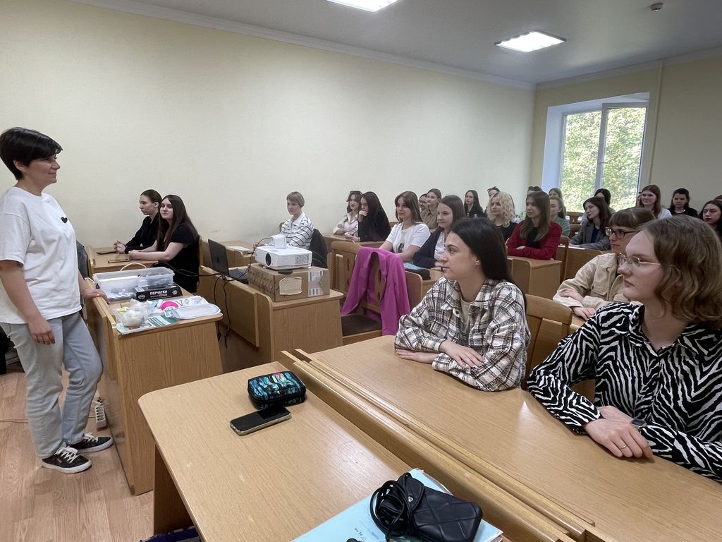 Мастер-класс учителя-логопеда Е.С. Богатыревой «Логопедический массаж как эффективное средство постановки звуков»05 мая 2025 г. на факультете педагогики и методики дошкольного, начального и дополнительного образования состоялся мастер-класс на тему «Логопедический массаж как эффективное средство постановки звуков» учителя-логопеда МБДОУ д/с № 20 Елены Сергеевны Богатыревой. Мероприятие было реализовано в соответствии с планом работы Логопедической лаборатории Таганрогского института имени А.П. Чехова (науч. руководитель – канд. пед. наук, доцент Н.В. Макарова). Участниками встречи стали преподаватели кафедры русского языка, культуры и коррекции речи и студенты 1, 2 и 3 курсов, обучающиеся по направлению «Специальное (дефектологическое) образование» (профиль «Логопедия»). Учитель-логопед высшей квалификационной категории Е.С. Богатырева представила основные результаты использования метода дифференцированного логопедического массажа в своей работе с детьми с миофункциональными и речевыми нарушениями. Елена Сергеевна рассказала, что в настоящее время основной контингент детей-логопатов имеет сложную структуру дефекта, осложненную органическими и функциональными расстройствами центральной нервной системы. В подтверждение своего выступления слушателям были представлены фото- и видео материалы, иллюстрирующие различную патологию артикуляционного праксиса и детской речи. Елена Сергеевна последовательно раскрыла технологию обследования детей-логопатов и показала авторские приемы, позволяющие выявлять функциональные и органические нарушения осанки и речевых органов. Спикер продемонстрировала основные приемы логопедического массажа, который позволяет преодолевать миофункциональные нарушения, регулировать мышечный тонус артикуляционных органов, а также способствует успешной постановке звуков речи. Свое выступление Елена Сергеевна сопровождала показом современных логопедических зондов и зондозаменителей, которые в настоящее время активно использует в своей практической деятельности в собственном центре речи под названием «Лого-студия “Лисенок”». Студенты принимали активное участие в мастер-классе: делились впечатлениями, задавали множество вопросов, выступали в роли внимательных пациентов, с благодарностью принимающих помощь опытного специалиста-наставника, а также выразили слова благодарности в адрес уникального специалиста. Все участники мероприятия отметили, что подобные встречи очень важны для профессионального становления и развития студентов Таганрогского института имени А.П. Чехова. Благодарим учителя-логопеда Елену Сергеевну Богатыреву за возможность приобретать опыт профессиональной работы с детьми с ограниченными возможностями здоровья и надеемся на дальнейшее плодотворное сотрудничество! |