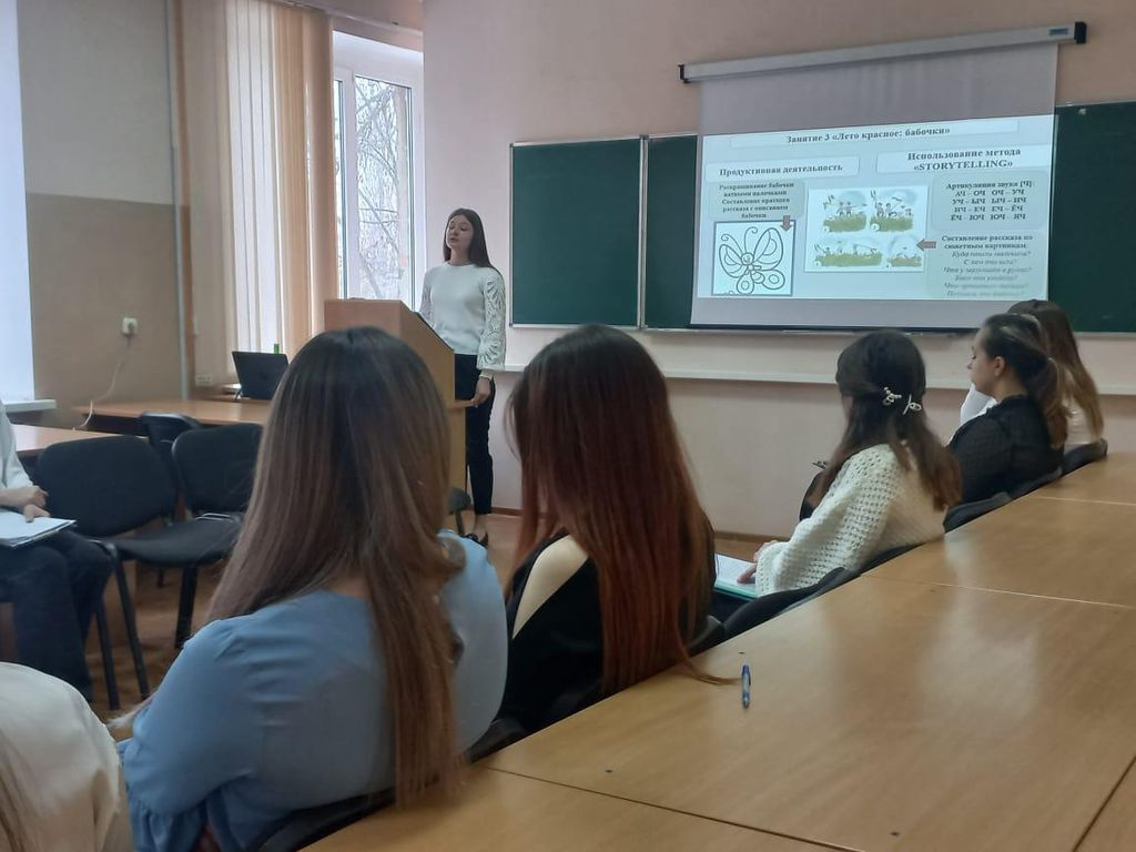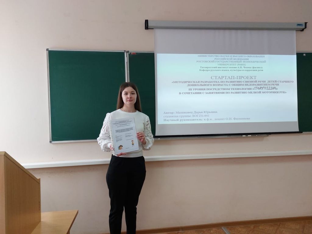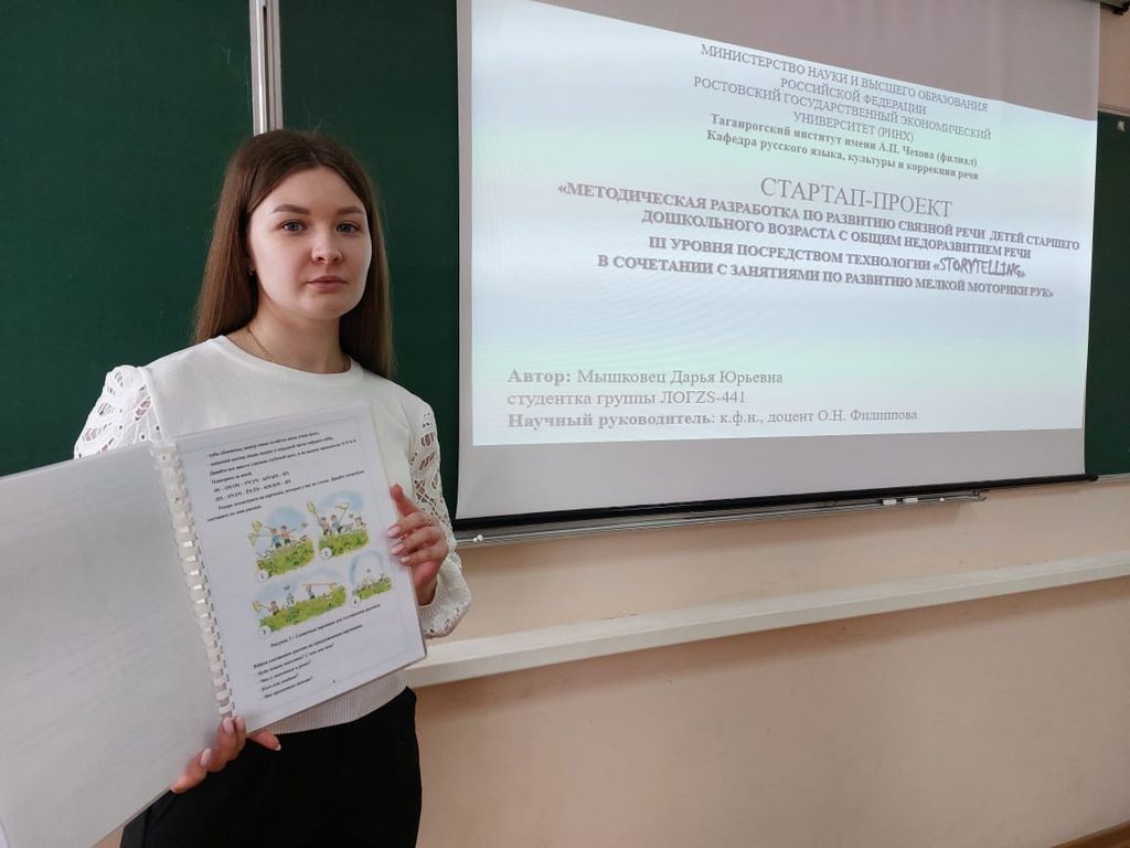 На факультете ПиМДНиДО состоялась защита стартап-проекта10 февраля 2025 года на факультете педагогики и методики дошкольного, начального и дополнительного образования состоялась защита ВКР в форме стартапа. Студентка профиля «Логопедия» Мышковец Дарья Юрьевна (группа ЛОГZS-441) представила стартап-проект «Методическая разработка по развитию связной речи детей старшего дошкольного возраста с общим недоразвитием речи III уровня посредством технологии «Сторителлинг» в сочетании с занятиями по развитию мелкой моторики рук» (научный руководитель – канд. филол. наук, доцент О.Н. Филиппова). Предложенная методическая разработка представлена в виде серии логопедических заданий по развитию связной речи детей старшего дошкольного возраста посредством использования технологии «Сторителлинг» в сочетании с занятиями по развитию мелкой моторики рук детей на основе продуктивных видов деятельности (пластилинография, конструирование из бумаги, рисование и прочее). Сочетание данных форм работы предполагает интеграцию следующих образовательных областей: «Речевое развитие», «Социально-коммуникативное развитие», «Познавательное развитие» и «Художественно-эстетическое развитие». Дидактические материалы пособия, помимо образовательного и развивающего воздействия, предполагают также создание непринужденной обстановки, что благоприятно отражается на психическом и эмоциональном комфорте дошкольников в ходе проведения коррекционно-логопедической работы. Поздравляем Мышковец Дарью Юрьевну и ее научного руководителя Оксану Николаевну Филиппову с успешной защитой стартап-проекта и желаем дальнейших успехов! |