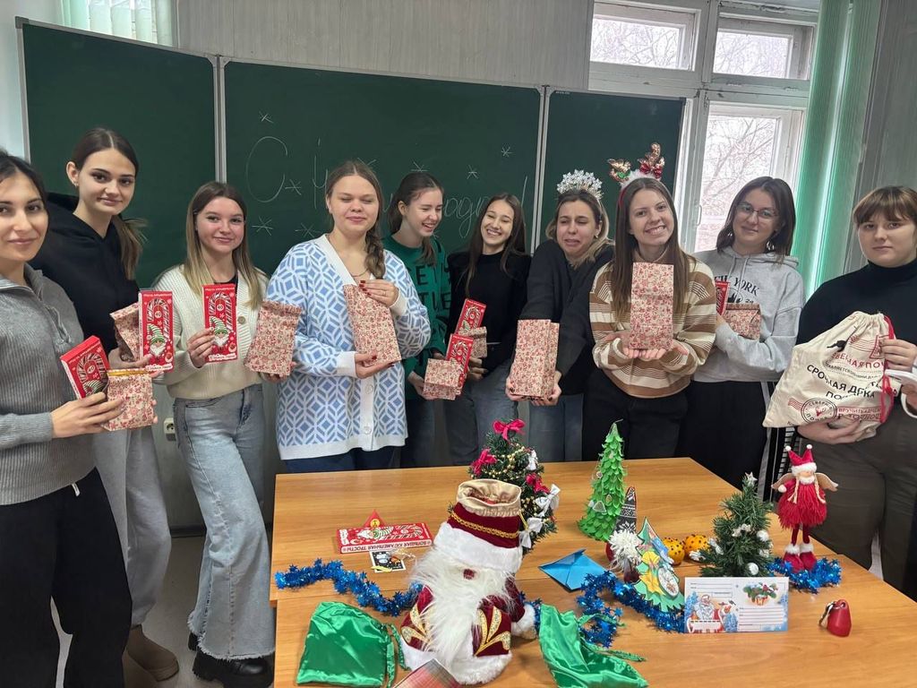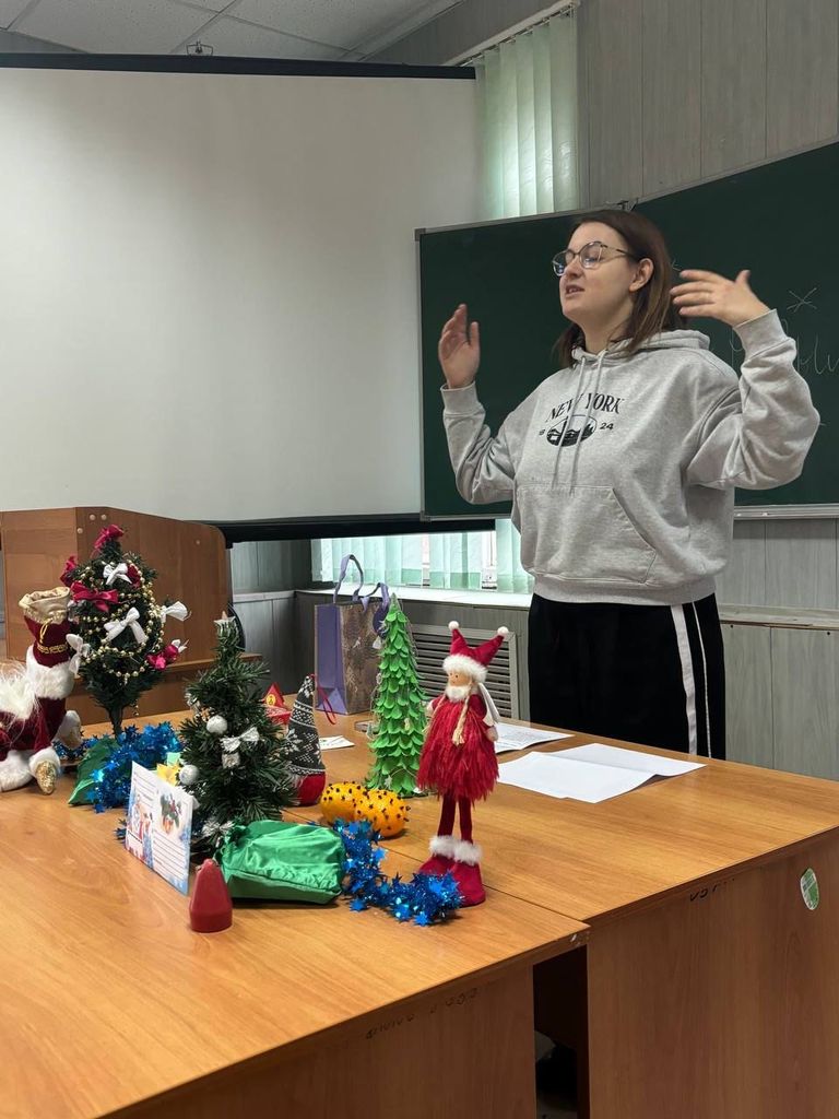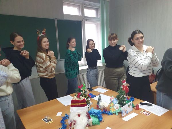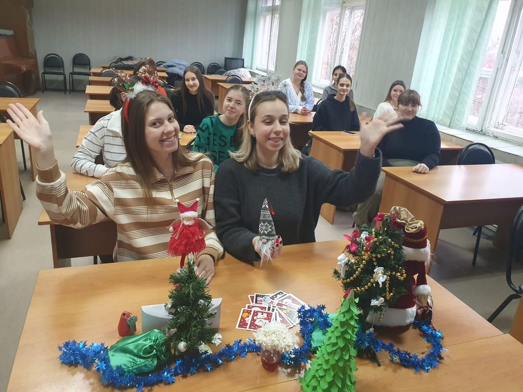 Новогодние посиделки в группе НДО-431В декабре в группе НДО-431 прошли новогодние посиделки. Инициатором их выступила д-р филос. наук, профессор кафедры русского языка, культуры и коррекции речи Вероника Георгиевна Семёнова. Студенты группы украсили новогодними декорациями аудиторию, надели маскарадные головные уборы и представили новогодние упражнения и игры по развитию речи. В новый год все верят в чудеса, поэтому в завершение своего выступления каждый студент подготовил новогодний сладкий сюрприз в виде подарка. Занятие прошло интересно и весело, с шутками, развлечениями, с хорошим запасом эмоций на будущий год. |