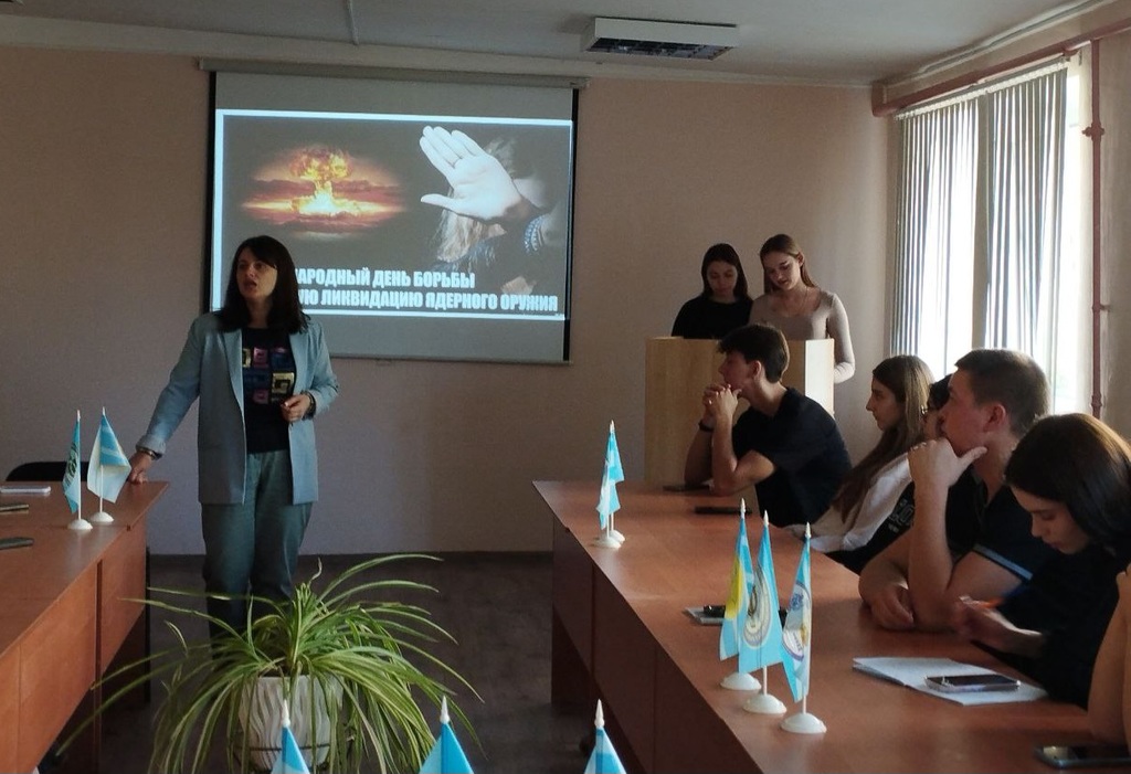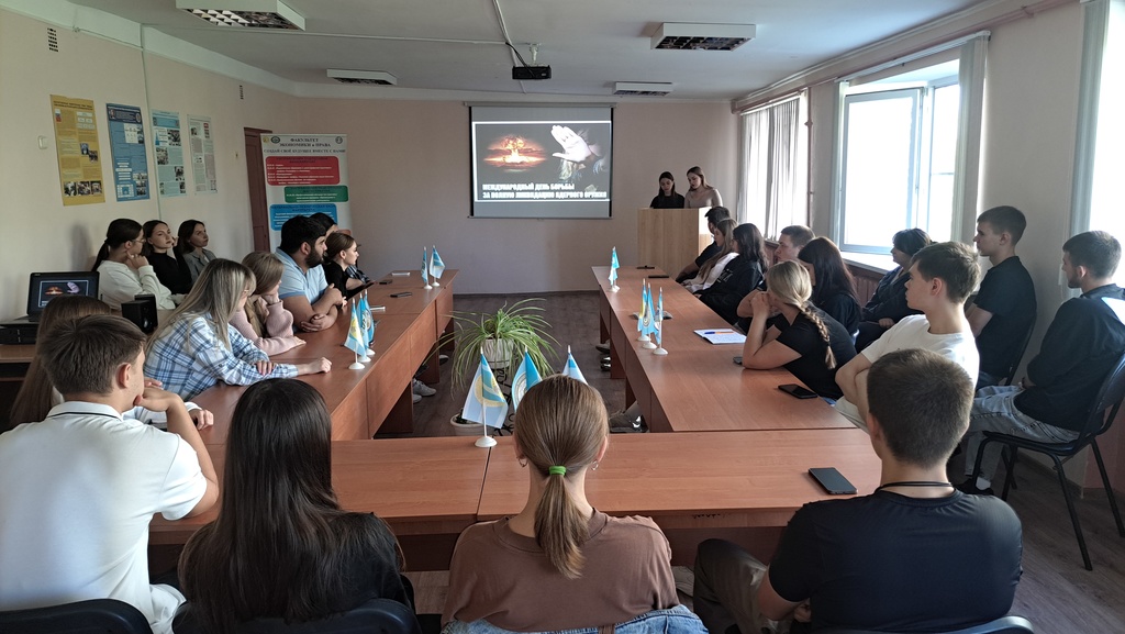 Заседание киноклуба на факультете экономики и права, приуроченное к Международному дню борьбы за полную ликвидацию ядерного оружия. 26 сентября 2024 г. для первокурсников групп ЮР-611 и ПРО-611 кураторы Тимофеенко В.А. и Холодковская Н.С. провели заседание киноклуба на базе факультета экономики и права, приуроченное к Международному дню борьбы за полную ликвидацию ядерного оружия. В начале мероприятия студенты группы ЮР-611 подготовили доклад о глобальных вопросах атомной энергетики, затем состоялся просмотр документального фильма «Атомная бомбардировка Хиросимы и Нагасаки: Хроники событий и последствия первой атомной бомбардировки». Целью данного мероприятия стало привлечение внимания обучающихся к проблемам, вызванным использованием ядерного оружия, так как она самое опасное оружие на земле. Организаторы мероприятия обратили внимание участников на то, что угроза применения ядерного оружия стала пугающе реальной, так как оно может разрушить целый город, в результате чего погибнут миллионы людей, а из-за долгосрочных эффектов такой катастрофы естественная среда обитания и жизни будущих поколений окажутся под угрозой. Во время дискуссии, обучающиеся самостоятельно сделали выводы о том, что проблема ядерного разоружения в наше время стоит очень остро и является первоочередной, т.к. опасность ядерного оружия обусловлена самим фактом его существования. Ведь применение ядерного оружия где-то в одном месте в мире, приведёт к катастрофе на всей планете. Просмотр данного фильма вызвал большой интерес среду участников мероприятия. Студенты - первокурсники активно обсуждали увиденное и изъявили желание продолжить подобные практико - ориентированные дискуссионные занятия!