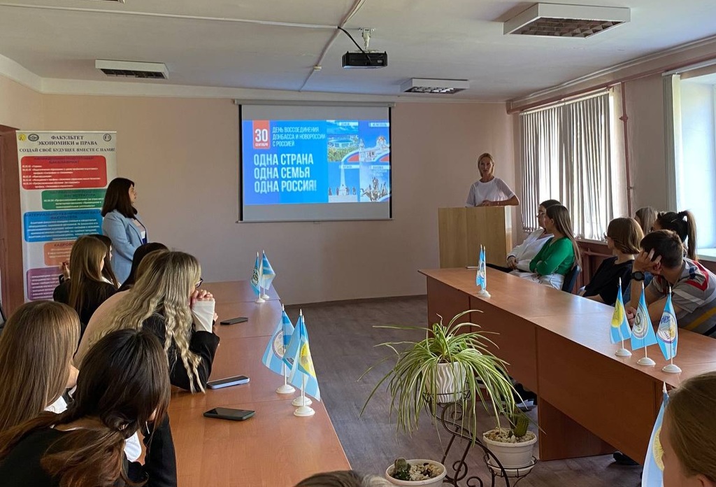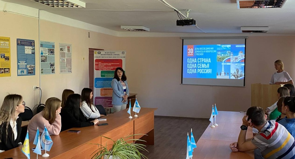 Кураторский час - дискуссия для студентов первого курса факультета экономики и права, посвященная Дню воссоединения новых регионов с Россией 30 сентября кураторы Тимофеенко В.А. и Холодковская Н.С. провели для студентов групп ЮР-611 и ПРО-611 кураторский час, в формате дискуссии, темой которого стала новая памятная дата, приуроченная к подписанию 30 сентября 2022 года президентом России и главами ДНР, ЛНР, Запорожской и Херсонской областей договоров о вхождении новых территорий в состав РФ. Обучающиеся совместно с кураторами вспомнили и обсудили историческое значение, политические и экономические последствия, послужившие подписанию международных договоров о присоединении новых регионов в РФ на правах ее субъектов. В ходе беседы все участники пришли к выводу, что данное событие основано на исторической общности народов, проживающих на территориях ДНР, ЛНР, Запорожской и Херсонской областей и является результатом волеизъявления миллионов людей, реализации ими неотъемлемого права свободно и без вмешательства извне определять свой политический статус, осуществлять свое экономическое, социальное и культурное развитие. |