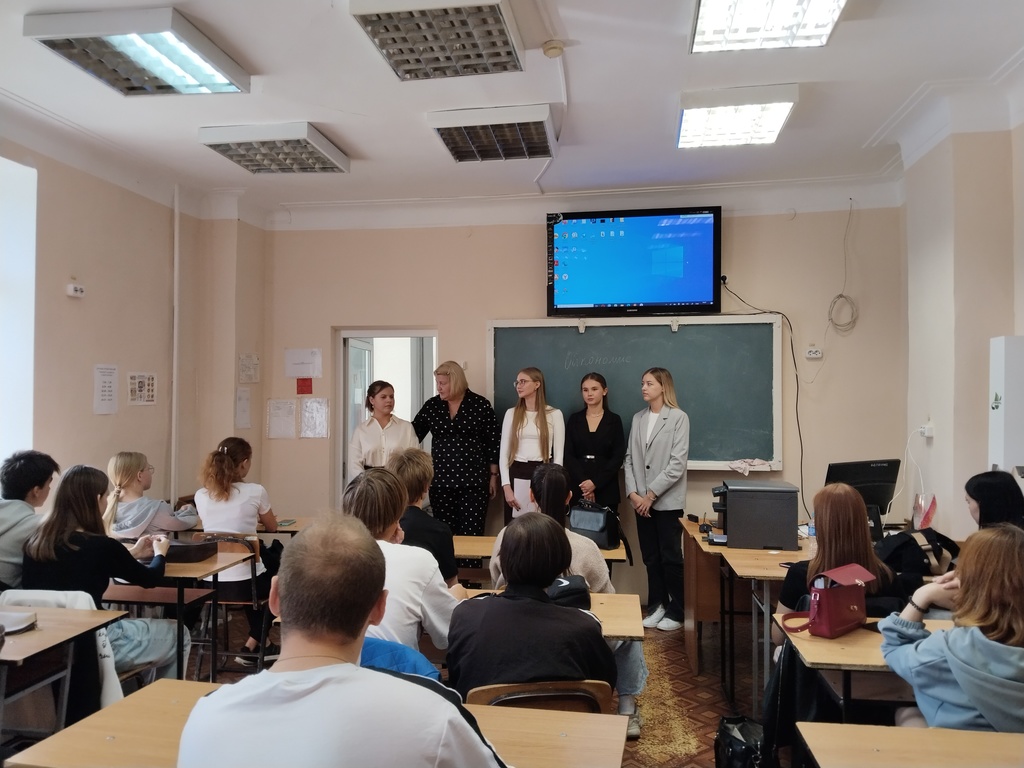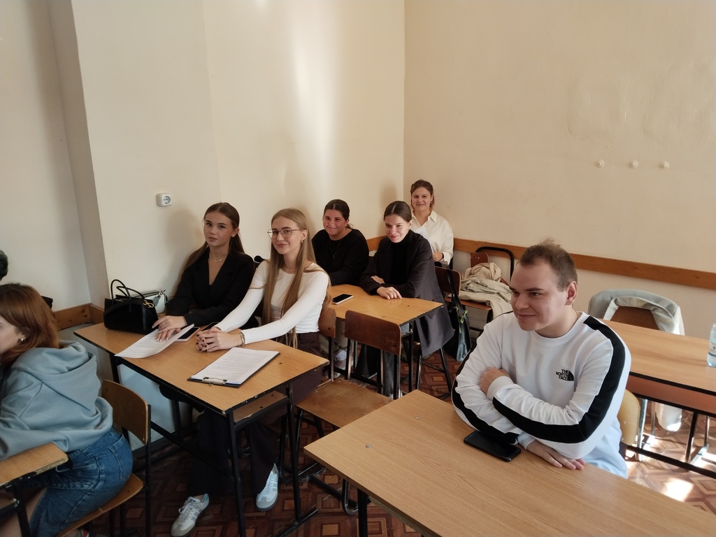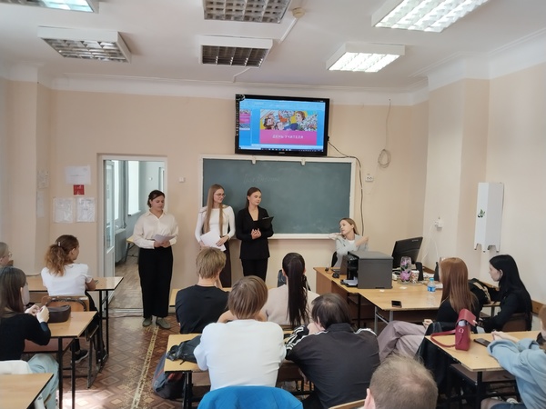 Классный час ко дню учителя и Дню среднего профессионального образования в Таганрогском колледже морского приборостроения от студентов направления подготовки профессиональное обучение (по отраслям) Продолжается производственная педагогическая практика студентов направления подготовки Профессиональное обучение (по отраслям), которую они проходят в колледжах Таганрога. 1 октября 2024 г. студенты-практиканты подготовили и провели классный час в Таганрогском колледже морского приборостроения для обучающихся по направлению Коммерция, приуроченный празднованию Дня учители и Дня среднего профессионального образования, который отмечается 2 октября. План мероприятия включал в себя знакомство с историей международного Дня учителя, викторину на тему педагогической деятельности, а также показ видео с нарезкой отрывков их кинофильмов про учителя. Ведущие-практиканты познакомили обучающихся с историей Таганрогского института имени А.П. Чехова, с направлениями подготовки кафедры экономики и гуманитарно-правовых дисциплин, а также провели профориентационную дискуссию. Руководитель педагогической практикой студентов доцент Л.Н. Майорова, присутствовавшая на мероприятии, обратилась с приветствием к группе обучающихся и к преподавателям колледжа Е.К. Колесниченко и Е.А. Десятовой с поздравлением и словами признательности за долголетнее сотрудничество. На протяжении всего классного часа сохранялась атмосфера интереса и доброжелательности. |