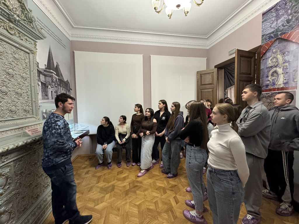 Экскурсия в музей «Градостроительство и быт г. Таганрога»26 марта 2025 года студенты первого курса направлений подготовки «Юриспруденция» и «Профессиональное обучение (по отраслям)» совместно с кураторами В.А. Тимофеенко и Н.С. Холодковской посетили Музей «Градостроительство и быт г. Таганрога» с экскурсией «Портрет города во времени», которая рассказывает о городе и его меняющемся во времени архитектурно-градостроительном облике. В ходе экскурсии студенты познакомились с историей основания города, основными событиями в его развитии, особенностями повседневной жизни и быта таганрожцев XVIII–XX веков. Особое впечатление на посетителей произвела уникальная экспозиция музея. Ведь «Портрет города во времени» включает в себя большое количество ранее не выставлявшихся экспонатов из фондов Таганрогского литературного и историко-архитектурного музея-заповедника, а также предметы, преподнесенные в дар музею в процессе формирования выставочного пространства. Посетив экскурсию, студенты-первокурсники получили целостное представление о Таганроге и его архитектурно-градостроительной истории. |