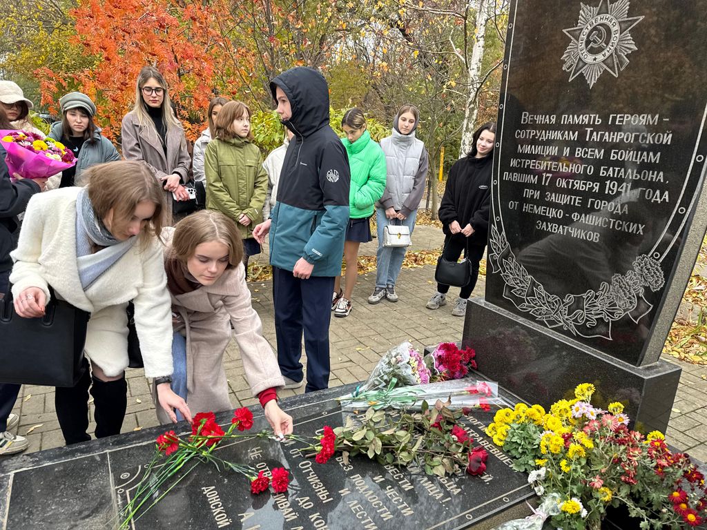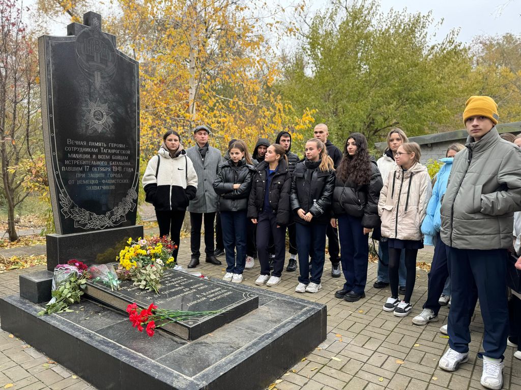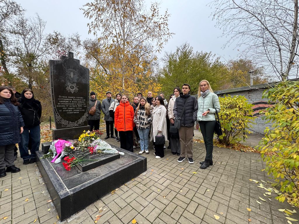 Студенты факультета экономики и права почтили память погибших при исполнении служебных обязанностей сотрудников ОВД и военнослужащих войск правопорядка8 ноября – всероссийский День Памяти сотрудников органов внутренних дел и военнослужащих войск правопорядка, погибших при выполнении служебных обязанностей. В этот день кураторы групп ЮР-611 В.А. Тимофеенко и ПРО-611 Н.С. Холодковская со студентами и школьниками МОБУ СОШ № 6 в рамках гражданско-патриотического воспитания обучающихся приняли участие в возложении цветов к памятнику милиционерам Таганрога, погибшим при обороне родного города осенью 1941 г. Кураторы рассказали историю появления мемориала и предложили почтить минутой молчания память, героев, отдавших свои жизни ради нашего будущего. |