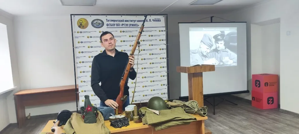 Выездная экскурсия музея «Самбекские высоты» для студентов факультета экономики и права14 ноября кураторы первого курса Тимофеенко В.А. (ЮР-611) и Холодковская Н.С. (ПРО-611) организовали для студентов музейное занятие. Сотрудники музея «Самбекские высоты» Эдуард Пантелеев и Людмила Сивкова рассказали студентам о нелегком солдатском быте во время войны: в каких условиях бойцы жили на фронте, как и во что были одеты и обуты, как обогревались и что ели, с каким оружием воевали и чем занимали короткие минуты затишья между боями. Познавательный экскурс в историю экономического положения СССР и Германии накануне и в годы Великой Отечественной войны, рассказ о героическом вкладе советских людей в развитие промышленности и сельского хозяйства в условиях военного времени вызвал заинтересованность среди слушателей. Участники мероприятия с интересом слушали научных сотрудников музея, задавали вопросы, а после беседы увлеченно рассматривали предметы солдатского снаряжения и быта, могли примерить головные уборы красноармейцев и научиться обращаться с ППШ и винтовкой. |