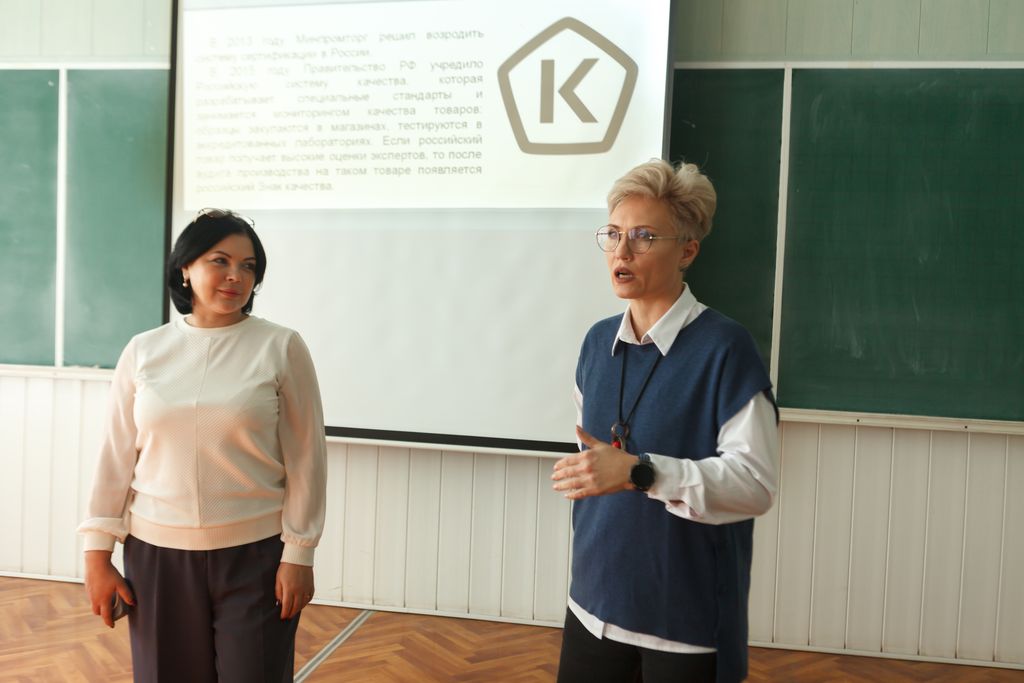 Всемирный День качества на факультете экономики и права13 ноября во Всемирный День качества на факультете экономики и права студенты профиля подготовки «Экономика и управление организацией» стали слушателями открытой лекции доцента кафедры экономики и гуманитарно-правовых дисциплин Н.С. Холодковской «Россия – страна со знаком качества». С приветственным словом к слушателям лекции обратились И.Э. Голобородько, зам.директора по УВР, М.А. Борк, начальник УМО, Ю.А. Сердюкова, зав.кафедрой экономики и гуманитарно-правовых дисциплин. И.Э. Голобородько обратила внимание студентов на значимость понятия «качества» в современной жизни, М.А. Борк сделала акцент на развитии стандарта качества в системе образования, Ю.А. Сердюкова отметила значение Дня качества в России. В ходе лекции Н.С. Холодковской студенты узнали, как отличить органическую продукцию от экологичной, что такое гринвошинг и как он подрывает доверие к настоящей органической продукции, а также научились распознавать товар по логотипу. Интерактивная викторина «Что вы знаете о качестве?» в завершении лекции позволила студентам проверить свои знания в вопросе выбора качественных продуктов. |