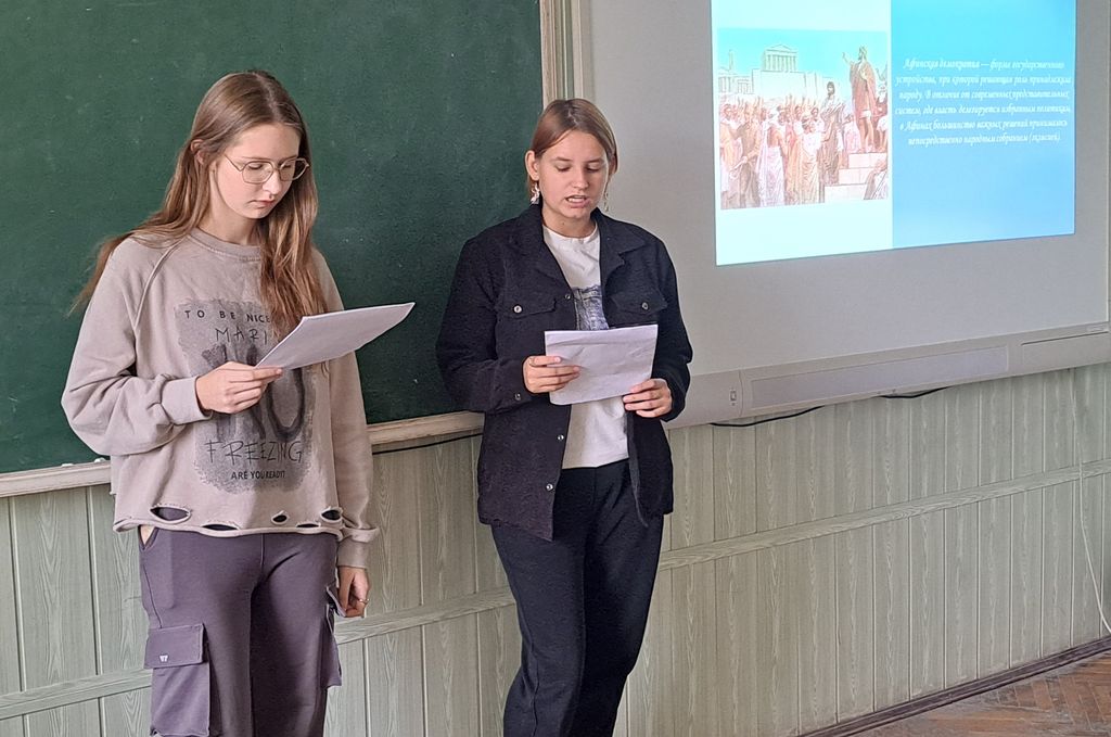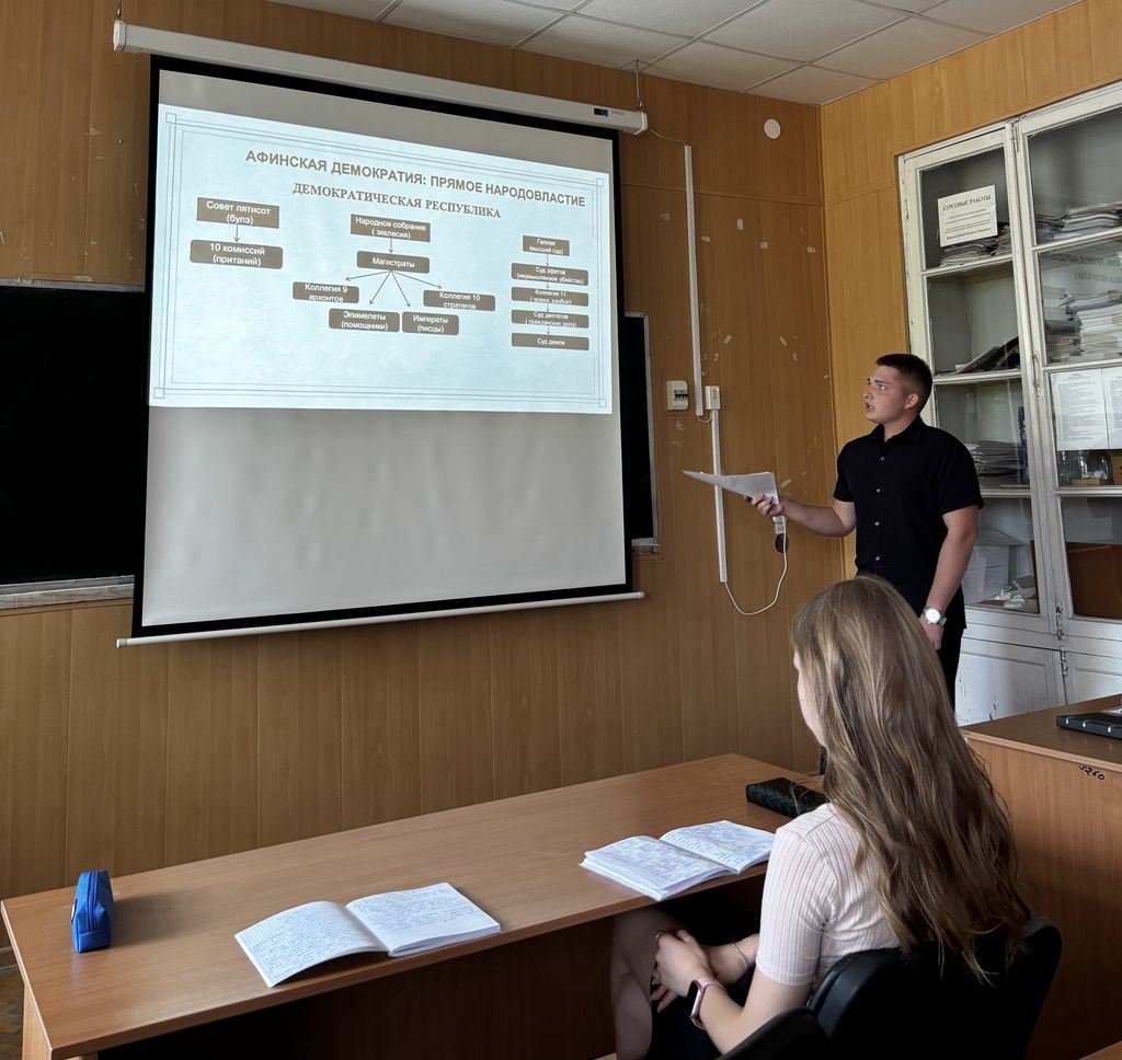 Заседание СНК «Теоретико-правовые и философские исследования государственно-политических институтов», посвященное Международному дню демократииЕжегодно 15 сентября отмечается Международный день демократии, установленный Генеральной Ассамблеей ООН. На факультете экономики и права для студентов первого курса направления подготовки «Юриспруденция» куратором группы ЮР-611 В. А. Тимофеенко был организован цикл заседаний СНК «Теоретико-правовые и философские исследования государственно-политических институтов», включающий в себя: ✔первый блок – изучение истории возникновения и развития демократии в мире; ✔второй блок – современные проблемы демократии. Студенты представили свои исследования и доклады по таким аспектам, как гражданское общество, политическое участие, роль технологий в демократических процессах, а также современные вызовы, влияние на общество и международный опыт, положение личности в демократическом обществе. Между участниками заседания состоялась дискуссия, в которой обсудили влияние глобализации на развитие демократии в мире, влияние СМИ на демократические процессы, выделили барьеры и вызовы, существующие при реализации демократических принципов в различных регионах мира. Обучающимся понравился подобный формат проведения занятия, все активно обсуждали данную тему. В завершение В.А. Тимофеенко пригласила обучающихся вступить в ряды участников научных кружков СНО факультета экономики и права для дальнейшего участия в различного уровня конференциях и круглых столах. |