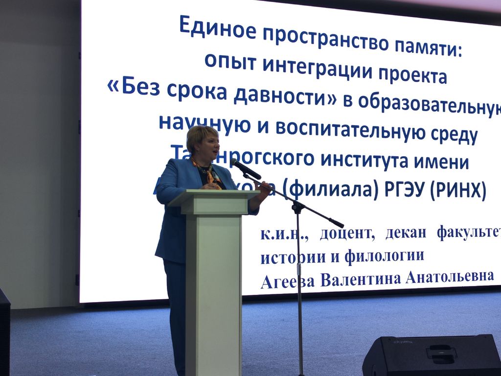 Новости все 02 апреля, 2026 Педагогический интенсив «Образовательно-просветительские мероприятия проекта «Без срока давности» в системе воспитательной работы»В Ростовской области состоялся педагогический интенсив «Образовательно-просветительские мероприятия проекта «Без срока давности» в системе воспитательной работы». Организаторы: Министерство просвещения России, Московский педагогический государственный университет. Его участниками стали представители опорных площадок Министерства по реализации образовательно-просветительских мероприятий федерального проекта «Без срока давности» – 50 опорных площадок из 35 субъектов РФ. Заключительный день интенсива прошел на площадке народного военно-исторического музея Великой Отечественной войны «Самбекские высоты». Депутат Государственной Думы РФ VIII созыва Лариса Николаевна Тутова обратилась к участникам мероприятия с приветствием и провела церемонию вручения документов о присвоении статуса опорной площадки проекта. К собравшимся также обратились со словами приветствия директор музея «Самбекские высоты» А. Ю. Данильченко и директор Таганрогского института имени А. П. Чехова (филиала) РГЭУ (РИНХ), кандидат философских наук С. А. Петрушенко. Светлана Анатольевна подчеркнула: «Мы стремимся к тому, чтобы каждый выпускник нашего института, независимо от его будущей специализации, обладал не только профессиональными знаниями, но и глубоким пониманием исторической правды, умел критически мыслить и аргументированно отстаивать свою позицию. Проект “Без срока давности” предоставляет нам уникальные инструменты для достижения этой цели, позволяя интегрировать изучение трагических страниц истории в самые разные аспекты образовательного процесса». Модераторами площадки выступили: С. В. Третьякова – кандидат педагогических наук, начальник Управления общественных проектов МПГУ, и Н. Ю. Забродская – координатор направления «Опорные площадки» Министерства просвещения России проекта «Без срока давности», ведущий специалист Управления общественных проектов МПГУ. Декан факультета истории и филологии, кандидат исторических наук, доцент В. А. Агеева представила доклад «Единое пространство памяти: опыт интеграции проекта “Без срока давности” в образовательную, научную и воспитательную среду Таганрогского института имени А. П. Чехова (филиала) РГЭУ (РИНХ)». Особое внимание Валентина Анатольевна уделила методике и задачам изучения дисциплины «Применение в образовательной деятельности проблематики геноцида советского народа в годы Великой Отечественной войны на основе проекта “Без срока давности”» на третьем курсе всех направлений подготовки шести факультетов института, активному исследованию темы геноцида советского народа в рамках подготовки выпускных квалификационных работ бакалавров и магистров факультета истории и филологии, уделив при этом внимание взаимодействию с Южным научным центром РАН (куратор – заместитель директора ЮНЦ РАН по научной работе, руководитель магистерской программы «Историческое образование», доктор исторических наук Е. Ф. Кринко), представила модели сотрудничества с архивами, поисковыми движениями и музеями, и в частности с музеем «Самбекские высоты». Отдельно остановилась на проектах, реализуемых факультетом совместно с Рост