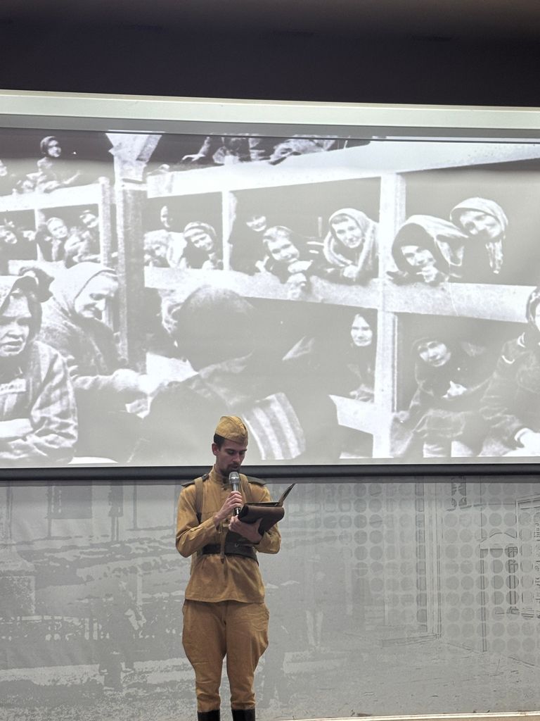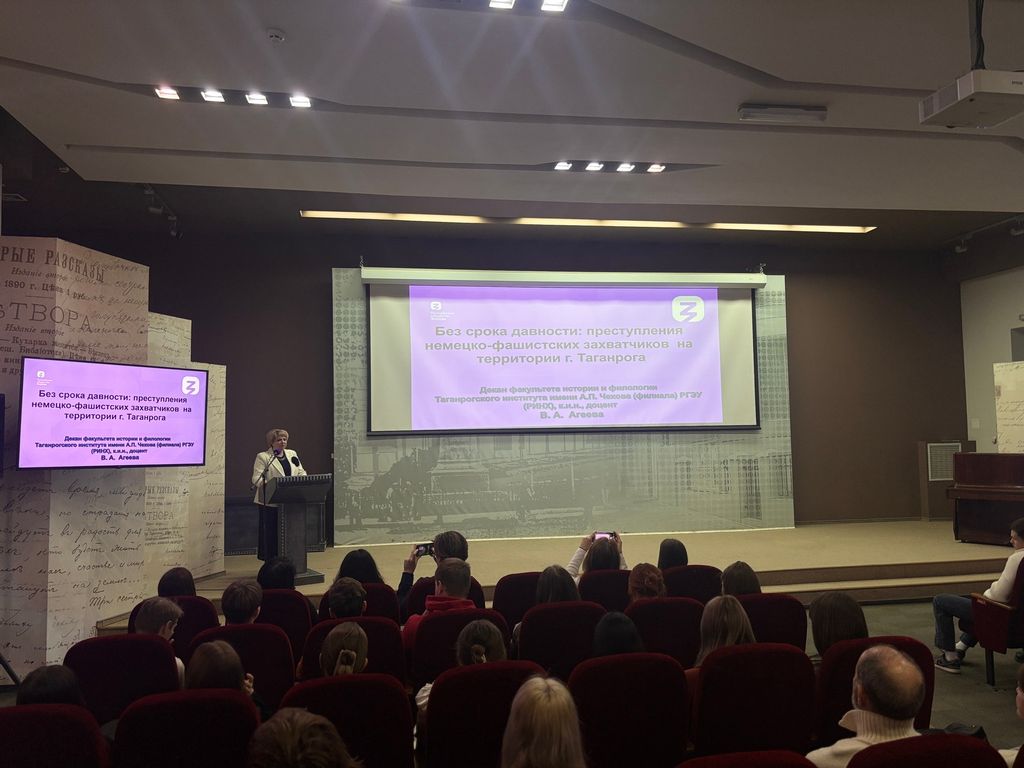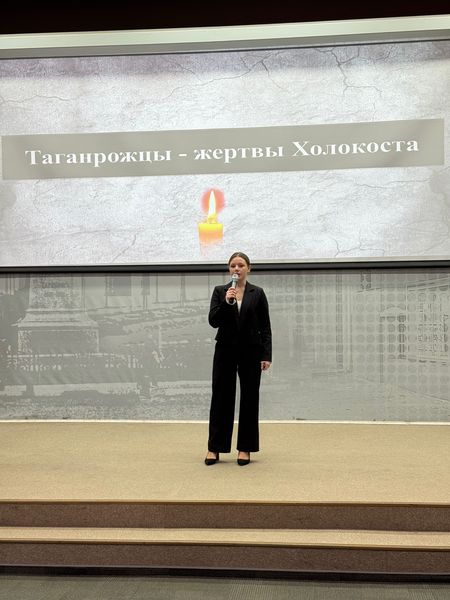 Новости все 06 февраля, 2026 Научно-просветительское мероприятие «Освобожденные от фашизма»В рамках декады науки Таганрогского института имени А. П. Чехова 3 февраля в конференц-зале Центральной городской публичной библиотеки имени А. П. Чехова состоялось научно-просветительское мероприятие «Освобожденные от фашизма». Оно было посвящено памяти жертв нацистских преступлений, не имеющих срока давности, и освободительной миссии советского народа в борьбе с «коричневой чумой». Мероприятие приурочено к трём историческим событиям, объединённым датой 27 января: полному освобождению Ленинграда от фашистской блокады в 1944 году, освобождению Красной Армией узников нацистского концлагеря «Аушвиц» (Освенцим) в 1945 году и Международному дню памяти жертв Холокоста. В современных условиях эта память приобретает особую актуальность. Мероприятие открыли декан факультета истории и филологии Таганрогского института имени А. П. Чехова, кандидат исторических наук, доцент В. А. Агеева и заведующая отделом Центра культурных программ Центральной городской публичной библиотеки имени А. П. Чехова О. Г. Сербина. Организатором выступил факультет истории и филологии Таганрогского института имени А. П. Чехова (филиал) РГЭУ (РИНХ). Партнёрами проведения акции памяти стали Центральная городская публичная библиотека имени А. П. Чехова, филиал Российского общества «Знание» в Ростовской области (директор – канд. ист. наук Ж. С. Метёлкина) и патриотический клуб «Казачья гвардия» им. гвардии старшего лейтенанта Д. Д. Глухова (начальник КПЦВПП – С. Е. Удовиченко). Для таганрожцев память о Холокосте, символом которого стал лагерь Аушвиц-Биркенау (Освенцим), – это также семейная и коллективная память о трагедии первых месяцев оккупации, когда в октябре 1941 года в Петрушинской балке – Балке смерти – было расстреляно более 6,5 тысяч евреев, среди которых около 1,5 тысяч детей. Сценарная программа вечера была построена так, чтобы не только погрузить присутствующих в атмосферу трагических событий, но и раскрыть исторический контекст преступлений нацистов на территории СССР, а также роль советского народа в Великой Победе. В программу вошли публичная лекция лектора Российского общества «Знание», кандидата исторических наук В. А. Агеевой, а также подготовленные студенческим активом под руководством заместителя декана факультета истории и филологии по воспитательной работе Е. Н. Капканова музыкальные композиции и театральные этюды, основанные на воспоминаниях, дневниках и письмах жителей Таганрога и Ленинграда, красноармейцев и других участников событий. По завершении литературно-музыкальной части под звуки Седьмой симфонии Д. Шостаковича в зал была внесена «Свеча памяти». Все присутствующие почтили память безвинно погибших жертв нацизма минутой молчания. В мероприятии приняли участие студенты, обучающиеся психолого-педагогического класса МОБУ СОШ № 20 (директор – канд. филол. наук Е. В. Шутова), представители Станции юных туристов г. Таганрога (директор – Р. С. Коновский) и городская общественность. |