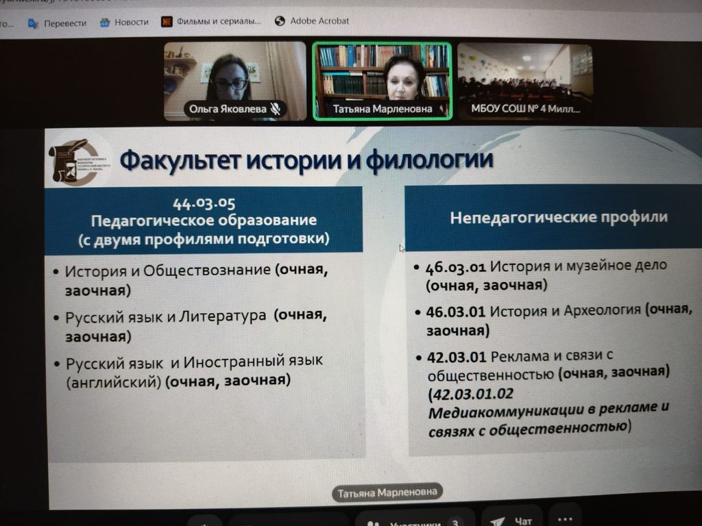 Новости все 12 декабря, 2025 Профориентационная работа на кафедре русского языка и литературы продолжается…Преподаватели кафедры русского языка и литературы – заведующий кафедрой, канд. филол. наук, доцент Т.М. Субботина, доцент кафедры, руководитель Научно-просветительского центра изучения русского языка и литературы имени А.П. Чехова, канд. филол. наук О.А. Яковлева, канд. филол. наук, доцент Н.М. Ким – провели серию профориентационных встреч с выпускниками 11-х классов отдаленных районов Ростовской области и Краснодарского края. Заведующий кафедрой русского языка и литературы Т.М. Субботина в своем обращении к школьникам акцентировала внимание на неоспоримой значимости педагогического образования в жизни общества и в то же время разнообразных возможностях профессиональной самореализации выпускников института. Татьяна Марленовна подробно рассказала о профилях подготовки, реализуемых на факультете истории и филологии, уделив особое внимание новому профилю – «Медиакоммуникации в рекламе и связях с общественностью», который с этого учебного года реализуется на базе кафедры русского языка и литературы. Доцент кафедры русского языка и литературы О.А. Яковлева подробно рассказала обучающимся о правилах приема документов в вузы в рамках приемной кампании – 2026. Ольга Александровна напомнила ребятам о существующей возможности подавать документы в 5 вузов одновременно и призвала не пренебрегать ею. О.А. Яковлева подробно рассказала о наборе экзаменов для поступления на профили подготовки, реализуемые на факультете истории и филологии, минимальном количестве баллов, учете индивидуальных достижений, способах и сроках подачи заявлений. В завершение встречи представители вуза напомнили ребятам о том, что вся информация о поступлении представлена на сайте института и пригласили на предстоящие Дни открытых дверей института и факультета. |
