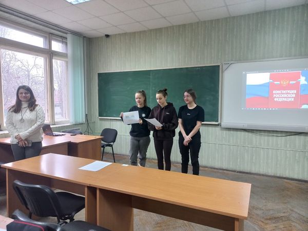 Новости все 15 декабря, 2025 Интеллектуально-деловая игра, посвященная Дню КонституцииДень Конституции Российской Федерации – одна из значимых памятных дат, которая отмечается ежегодно 12 декабря с 2005 года. В преддверии праздника, 11 декабря, заведующий кафедрой экономики и гуманитарно-правовых дисциплин Ю.А. Сердюкова и доцент кафедры, куратор группы ЮР-611 В.А. Тимофеенко провели для студентов первого курса направления подготовки «Юриспруденция» познавательную интеллектуально-деловую игру «Конституция – основной закон страны». Организаторы начали мероприятие с рассказа об истории создания современной Конституции, подробно разобрав права и обязанности гражданина России. В ходе дискуссии участники обсудили механизмы принятия государственных решений, влияющих на жизнь общества, а также важность построения социальной среды, основанной на взаимном уважении и согласии. Затем студенты, разделившись на команды, приступили к творческой части: разработке символики и законодательных основ для собственного модельного государства. Подобные интеллектуально-деловые игры не только знакомят студентов с Основным Законом страны, но и способствуют развитию правовой грамотности, познавательной активности и формированию чувства ответственности перед законом. Проведённое мероприятие позволило участникам продемонстрировать понимание ключевых положений Конституции, развить критическое мышление и навыки аргументированного выражения своей позиции. Непосредственное вовлечение в процесс создания законодательства мотивировало студентов к более глубокому изучению материала и активному участию в дискуссиях. |