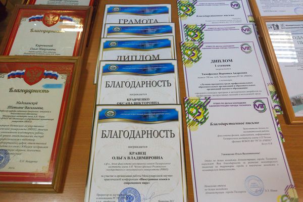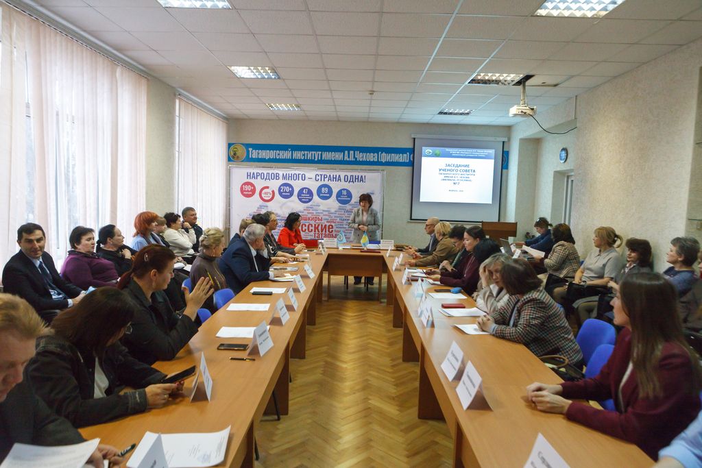 Новости все 20 февраля, 2026 Заседание Ученого совета Таганрогского института имени А.П.Чехова (филиала) РГЭУ (РИНХ)18 февраля 2026 года состоялось заседание Ученого совета Таганрогского института имени А.П. Чехова (филиала) РГЭУ (РИНХ). Директор Таганрогского института имени А.П.Чехова (филиала) РГЭУ (РИНХ), кандидат философских наук, доцент Светлана Анатольевна Петрушенко от имени ректора РГЭУ (РИНХ), доктора экономических наук, профессора Елены Николаевны Макаренко в связи с юбилеем вручила благодарственные письма: · доктору педагогических наук, профессору, профессору кафедры педагогики дошкольного, начального и дополнительного образования Татьяне Васильевне Надолинской; · кандидату педагогических наук, доценту, доценту кафедры общей педагогики Ольге Николаевне Кирюшиной; · инспектору Центра повышения квалификации Александре Григорьевне Дмитриевой. От имени проректора по научной работе и инновациям РГЭУ (РИНХ), доктора экономических наук, профессора Натальи Геннадьевны Вовченко за участие в организации работы Международной научно-практической конференции «Иностранные языки в современном мире» были вручены благодарственные письма кандидату филологических наук, доценту, декану факультета иностранных языков Ольге Владимировне Кравец и кандидату филологических наук, доценту, заведующему кафедрой немецкого и французского языков Оксане Викторовне Кравченко. За результаты научных исследований дипломом III степени отмечена студентка группы ИЯ-321 Алина Крюкова и грамотами – студенты группы ИЯGOZ-311 Валентина Варданян и Юлия Слинькова. Директор Таганрогского института имени А.П.Чехова (филиала) РГЭУ (РИНХ), кандидат философских наук, доцент Светлана Анатольевна Петрушенко вручила студентке группы ИЯ-352 Альбине Айрапетян сертификат победителя программы «Альфа-Будущее Стипендии». Благодарственные письма от Администрации МБУК Централизованной библиотечной системы г. Таганрога за участие в акции, посвященной 166-летию со дня рождения А.П. Чехова, вручены директору, кандидату философских наук, доценту Светлане Анатольевне Петрушенко, кандидату филологических наук, доценту кафедры английского языка Виктории Муратовне Войченко, а также студентам, участвовавшим в акции. От имени отдела по делам молодежи Администрации города Таганрога благодарственные письма за развитие волонтерского движения на территории города и вовлечение молодежи в волонтерскую деятельность вручены заместителю декана по воспитательной работе факультета физики, математики, информатики Ольге Валентиновне Бегун и кандидату философских наук, доценту кафедры экономики и гуманитарно-правовых дисциплин Веронике Андреевне Тимофеенко. Дипломом I степени и благодарственными письмами за активную волонтерскую деятельность в рамках работы штаба акции взаимопомощи #МЫВМЕСТЕ в номинации «Лучшая программа среди профессиональных образовательных организаций и образовательных организаций высшего образования» были отмечены следующие студенты группы МИ-121: Нина Султанова, Вероника Сердюк и Алина Филимошкина. Директор Светлана Анатольевна Петрушенко представила благодарственное письмо от оргкомитета Всероссийского флешмоба «Контрольная по математике для взрослых и не только “MathCat”» за успешное проведение мероприятия в 2025 году на площадке Таганрогск