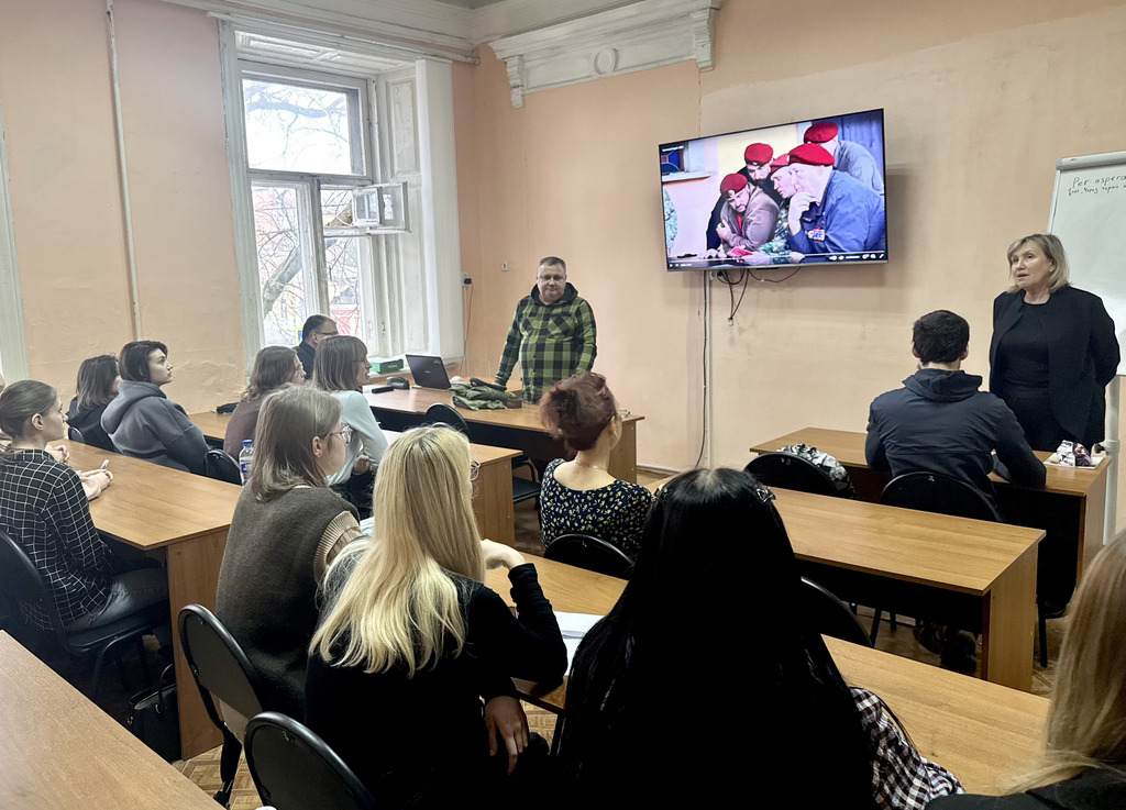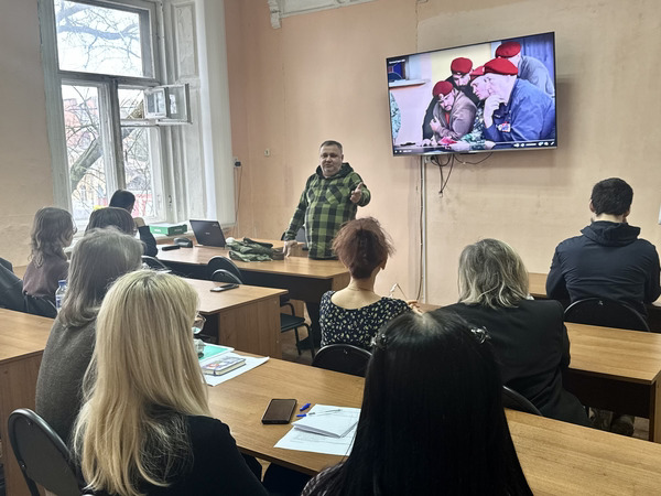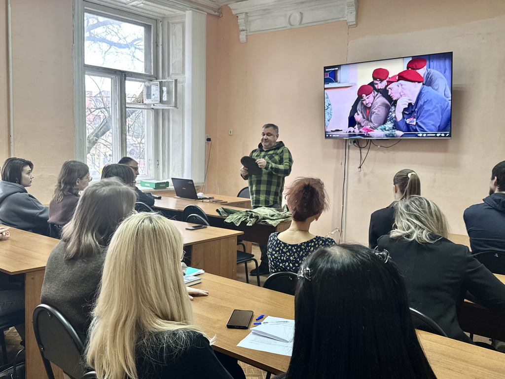 Новости все 20 февраля, 2026 На кафедре психолого-педагогического образования и медиакоммуникации прошел «Урок мужества»19 февраля 2026 года студенты и преподаватели кафедры психолого-педагогического образования и медиакоммуникации провели «Урок мужества», приуроченный ко Дню Защитника Отечества. Ведущим урока выступил преподаватель кафедры, ветеран боевых действий в Чечне А.Ф. Еремчук. Андрей Федорович рассказал присутствующим о своем боевом пути, о том, каким должен быть защитник Отечества, какими качествами должен обладать настоящий мужчина. Также А.Ф. Еремчук познакомил участников мероприятия с историческими страницами нашей страны в 90-е годы ХХ века. На мероприятии присутствовали студенты группы ПСП-511, обучающиеся по профилю «Психология и социальная педагогика», заведующая кафедрой И.В. Челышева, кураторы студенческих групп Л.И. Кобышева и Е.М. Купарева. Поздравляем наших дорогих защитников Отечества с наступающим праздником и желаем крепкого здоровья, успехов в службе, новых побед и свершений! |