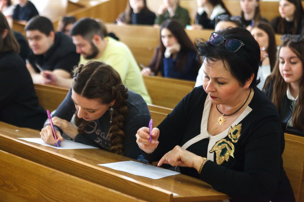 Новости все 21 апреля, 2026 Таганрог вновь стал частью мировой акции «Тотальный диктант»: как это было в институте имени А.П. Чехова18 апреля любители русского языка по всему миру объединились под знаком высокой грамотности и культуры. «Тотальный диктант» охватил 55 стран, более 1000 населённых пунктов России и 140 городов зарубежья. Столицей акции в этом году стал Улан-Удэ, а автором текста – известный писатель, ректор Литературного института имени А. М. Горького Алексей Варламов. «Дорогие друзья! Сегодня наш институт вновь становится частью большого и важного дела – Тотального диктанта. Русский язык – наше национальное достояние, и очень ценно, что вы нашли время и силы, чтобы проверить свою грамотность, прикоснуться к слову и культуре. Желаю вам не только успешного написания текста, но и настоящего удовольствия от общения с русским словом!» – поприветствовала участников директор Таганрогского института имени А.П. Чехова (филиала) РГЭУ (РИНХ) Светлана Петрушенко. Таганрогский институт имени А.П. Чехова в очередной раз с честью принял эстафету по проведению акции. Координатор проекта в нашем городе зав. кафедрой русского языка, культуры и коррекции речи Виктория Анохина отмечает, что «Цифры говорят сами за себя: 206 взрослых участников и 53 юных гения на “Недиктант.Дети”! Это не просто проверка грамотности – это наш общий праздник любви к русскому слову». Председателем предметной комиссии традиционно стала декан факультета педагогики и методики дошкольного, начального и дополнительного образования Светлана Гармаш. Для участников акции в Таганроге были организованы две масштабные площадки, включавшие множество аудиторий. На базе библиотеки имени А.П. Чехова текст диктовали: · заведующая кафедрой русского языка и литературы Татьяна Любомищенко; · доцент кафедры русского языка, культуры и коррекции речи Елена Тарасенко. Главной площадкой стал сам Таганрогский институт имени А.П. Чехова. Здесь работали три аудитории для взрослых и одна специализированная – для юных участников акции «Недиктант.Дети». Честь прочитать текст для взрослой аудитории была доверена ведущим филологам вуза: · кандидату филологических наук, доценту Светлане Гармаш; · кандидату филологических наук, доценту Наталье Гурдаевой; · кандидату филологических наук, доценту Оксане Филипповой; · кандидату филологических наук, доктору философских наук, профессору Веронике Семеновой. Особого внимания заслуживает работа с подрастающим поколением. Для детей была организована увлекательная акция «Недиктант.Дети» – весёлое и живое приключение в мире букв и открытий. В детской аудитории работала кандидат филологических наук, доцент, учитель начальных классов высшей квалификационной категории Любовь Потураева. Организаторы подчёркивают: «Тотальный диктант» – это не строгий экзамен и не проверка ради оценки. Это торжественное выражение любви к родному языку, его истории и будущему. Если ваш результат оказался не идеальным – не печальтесь. Главное, что мы были вместе, писали, думали и стремились к лучшему. Благодарим всех участников и диктаторов за этот праздник слова. До встречи на «Тотальном диктанте 2027»! Консультация по результатам написания диктанта, |
