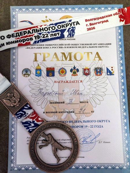 Новости все 24 апреля, 2026 Студент факультета физики, математики и информатики Иван Карбовский завоевал бронзовую медаль в Первенстве Южного федерального округа по боксуС 11 по 17 апреля в г. Волгограде проходило Первенство Южного федерального округа по боксу среди молодёжи 19–22 лет. Спортивные соревнования проводились с целью выявления сильнейших спортсменов для включения их в состав сборной команды ЮФО и дальнейшего участия в Первенстве России 2026 года. В соревнованиях приняли участие более 230 спортсменов из восьми регионов страны. В весовой категории до 71 кг на данных соревнованиях выступал студент факультета физики, математики и информатики Иван Карбовский (ФФМИ, группа ФСП-141). Все бои Иван провёл на высоком профессиональном уровне, что позволило ему войти в тройку лидеров Южного федерального округа в своей весовой категории. Теперь Иван ведёт усиленную подготовку к Первенству России 2026 года. Тренером спортсмена является его отец Роман Антонович Карбовский, выпускник Таганрогского государственного педагогического института имени А.П. Чехова (профиль «Физическая культура»), старший тренер отделения бокса ГБУ ДО РО «СШОР № 13» (г. Таганрог). ПОЗДРАВЛЯЕМ ИВАНА И ЕГО ТРЕНЕРА С ДОСТОЙНЫМ РЕЗУЛЬТАТОМ! ЖЕЛАЕМ ИМ КРЕПКОГО ЗДОРОВЬЯ, УСПЕХОВ В УЧЁБЕ, ПРОФЕССИОНАЛЬНОЙ ДЕЯТЕЛЬНОСТИ И ДАЛЬНЕЙШИХ ВЫСОКИХ СПОРТИВНЫХ ДОСТИЖЕНИЙ! |