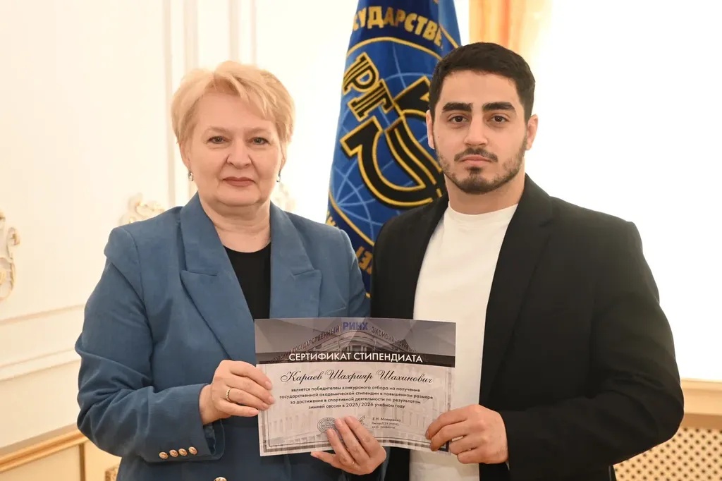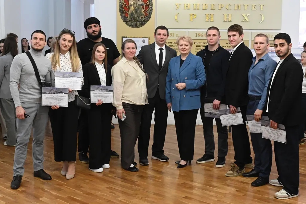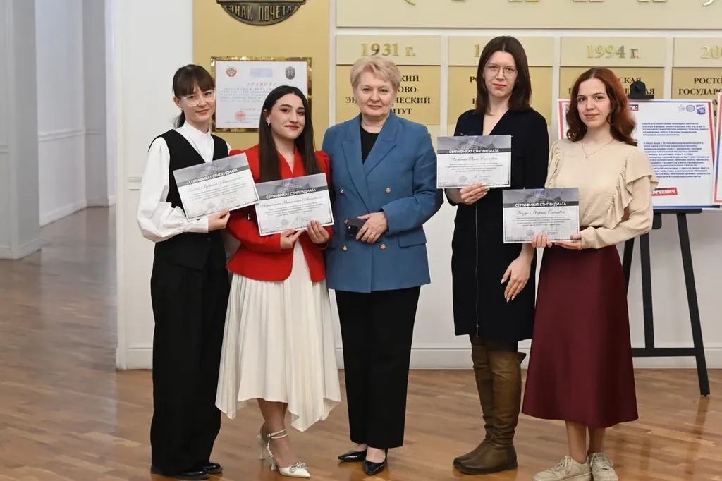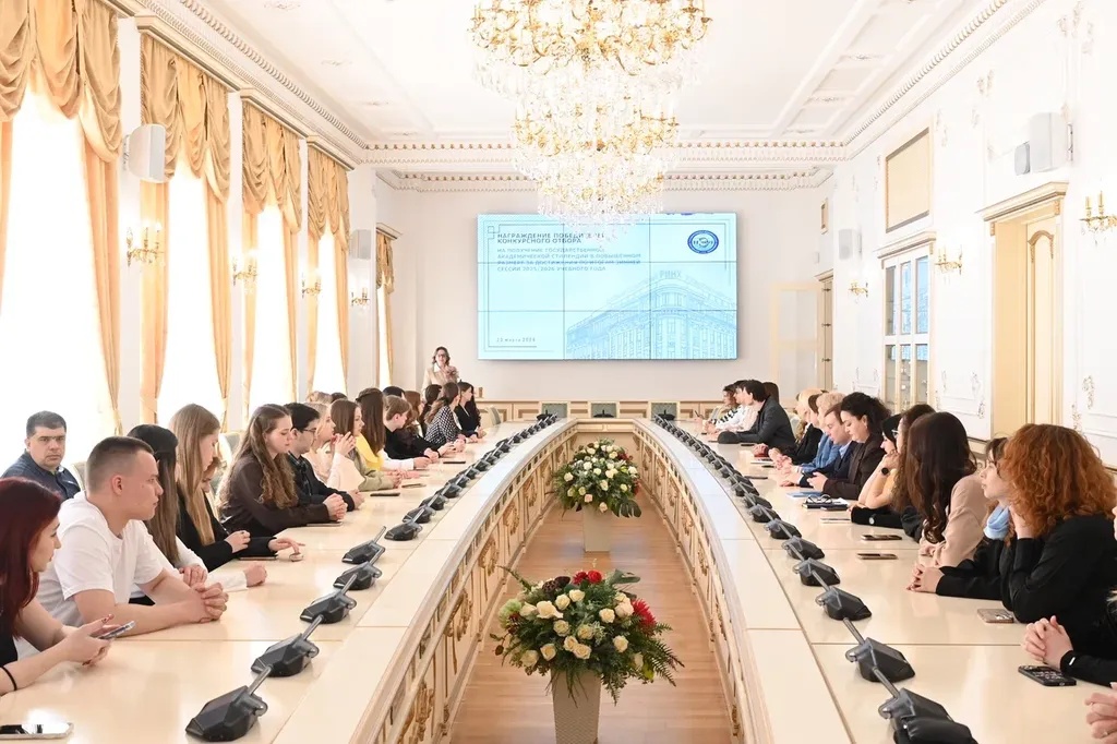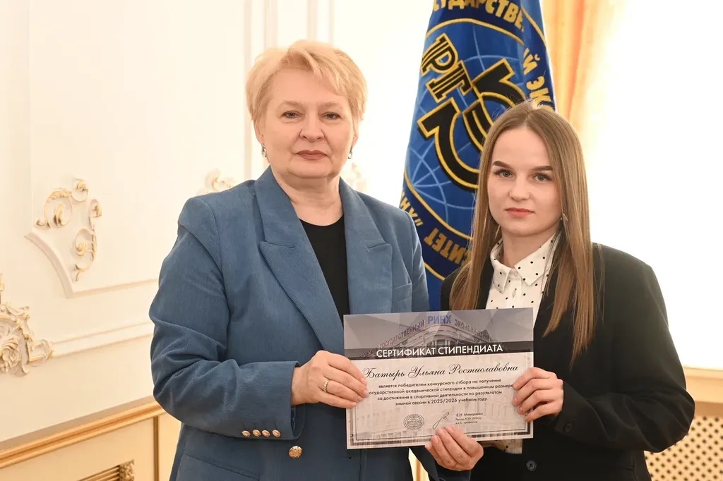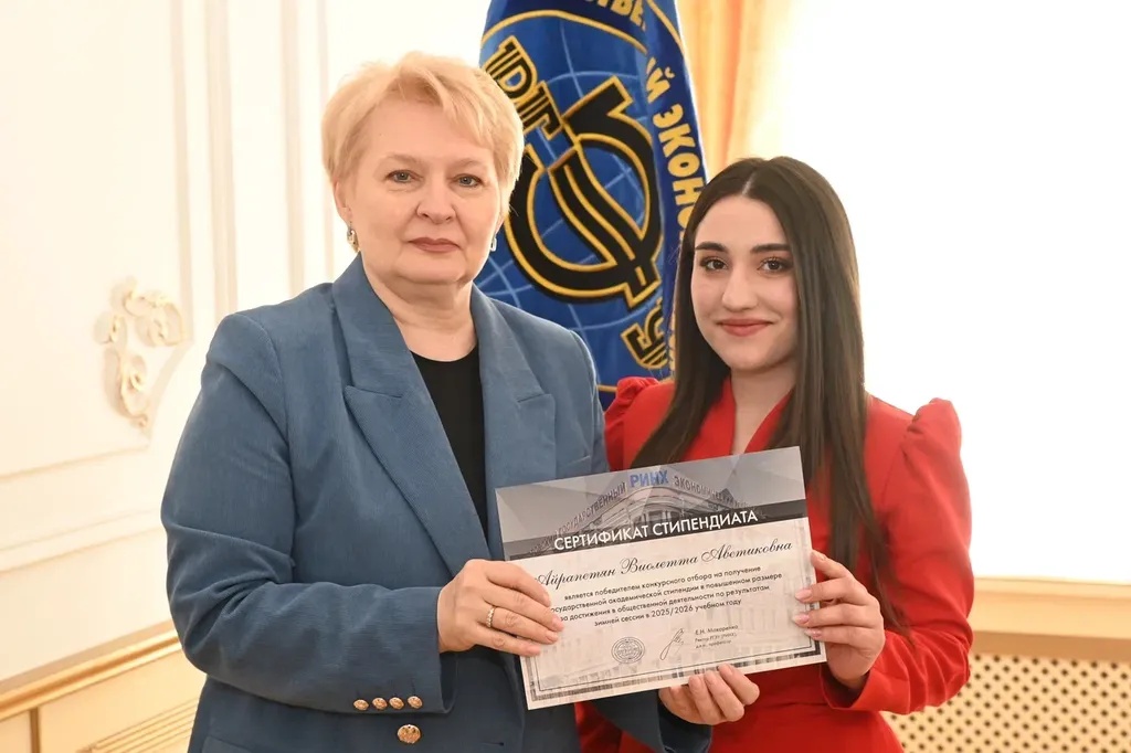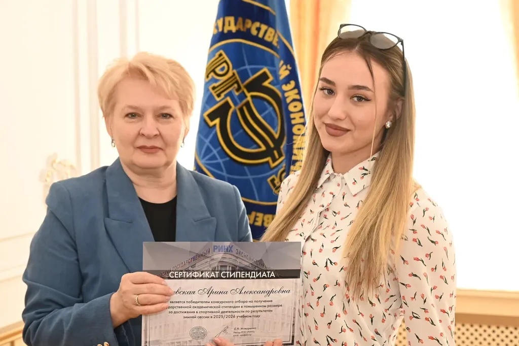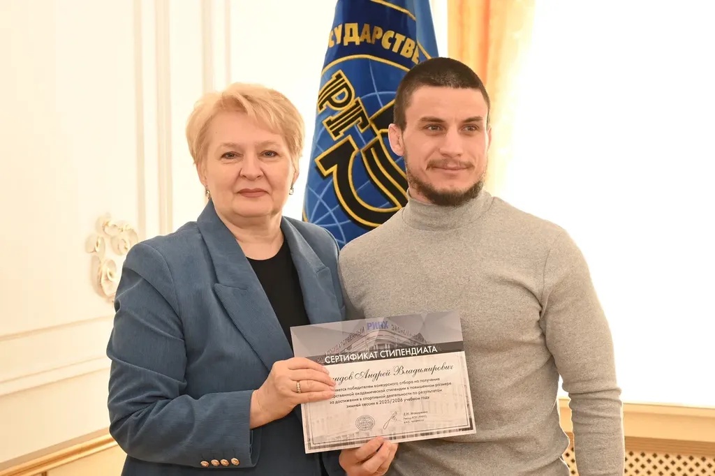 Новости все 26 марта, 2026 Награждение победителей конкурсного отбора на получение государственной академической стипендии в повышенном размере23 марта 2026 года в зале Ученого совета РГЭУ (РИНХ) состоялось награждение победителей конкурсного отбора на получение государственной академической стипендии в повышенном размере. Стипендия назначается по пяти видам деятельности: учебной, общественной, научно-исследовательской, культурно-творческой, спортивной. Сертификаты за победу в конкурсе вручила студентам ректор РГЭУ (РИНХ) Елена Николаевна Макаренко. «Именно в зале Ученого совета принимаются самые серьезные решения, которые определяют деятельность нашего университета. Поздравляю вас от всей души, вижу очень много ребят, которые получали повышенную стипендию неоднократно, что говорит о том, что вы стабильно успешно работаете и достигаете своей цели. Приятно видеть и тех студентов, которые получают сертификаты впервые и, надеюсь, будут это делать еще не раз», – отметила Елена Николаевна. Стипендиатов поздравили также проректор по учебной работе Ирина Александровна Кислая, проректор по научной работе и инновациям Наталья Геннадьевна Вовченко, проректор по воспитательной работе и молодежной политике Никита Иванович Лященко, а также руководитель Центра проектной деятельности Ирина Сергеевна Федоренко, председатель Первичной профсоюзной организации обучающихся Алина Сагитовна Биджиева. В свою очередь ребята поблагодарили ректорат за высокую оценку их деятельности и поделились самыми яркими моментами из своих достижений. В церемонии награждения приняли участие студенты Таганрогского института имени А.П. Чехова (филиала) РГЭУ (РИНХ), тренер-преподаватель ССК самбо и дзюдо Таганрогского института имени А.П. Чехова (филиала) РГЭУ (РИНХ) Константин Георгиевич Чайкин, начальник отдела организации и сопровождения научной деятельности Оксана Николаевна Филиппова и заместитель начальника отдела организации и сопровождения научной деятельности Елена Алексеевна Першонкова. Сертификаты получили 20 студентов Таганрогского института имени А.П. Чехова (филиала) РГЭУ (РИНХ). За достижения в учебной деятельности: Зиздо Мария Олеговна, студентка группы ИЯ-341, факультет иностранных языков; Чачкина Яна Олеговна, студентка группы ИЯ-351, факультет иностранных языков. За достижения в общественной деятельности: Айрапетян Виолетта Аветиковна, студентка группы РЯЛ-221, факультет истории и филологии; Ковалевская Елизавета Алексеевна, студентка группы МФ-141, факультет физики, математики, информатики. За достижения в культурно-творческой деятельности: Бойко Марина Анатольевна, студентка группы МФ-141, факультет физики, математики, информатики. За достижения в спортивной деятельности: Бабасев Алексей Валерьевич, студент группы ПРО-621, факультет экономики и права; Батырь Ульяна Ростиславовна, студентка группы ИСТG-221, факультет истории и филологии; Глущенко Арсений Михайлович, студент группы ДОИ-421, факультет педагогики и методики дошкольного, начального и дополнительного образования; Демидов Андрей Владимирович, студент группы ФСП-111, факультет физики, математики, информатики; Кандаков Андрей Васильевич, студент группы ПРО-621, факультет экономики и права; Караев Шахрияр Шахинович, студент группы ПРО-621, факультет экономики и права; Решетнико
