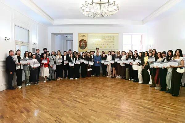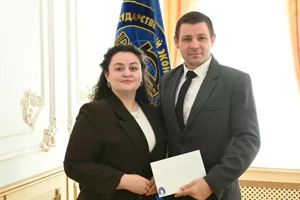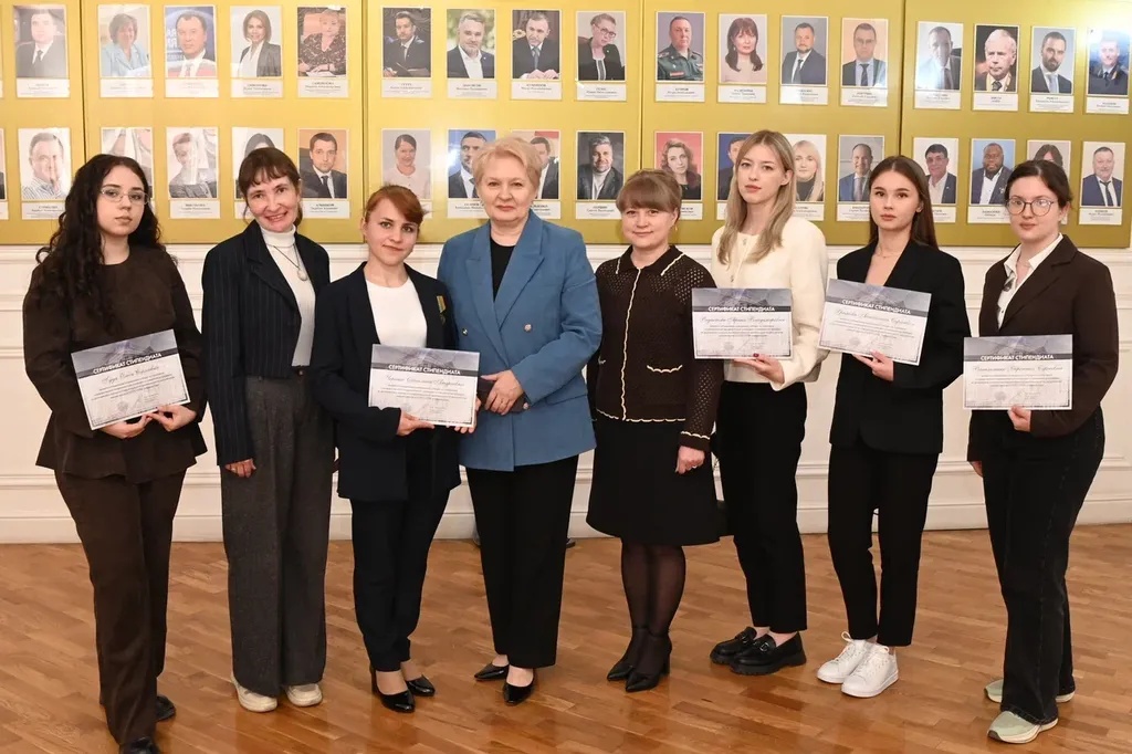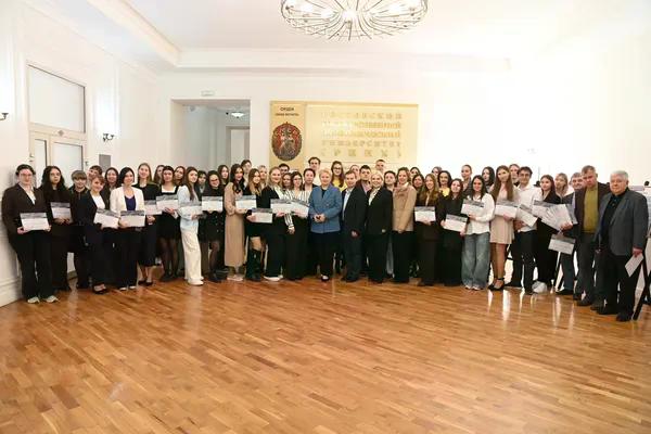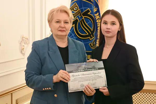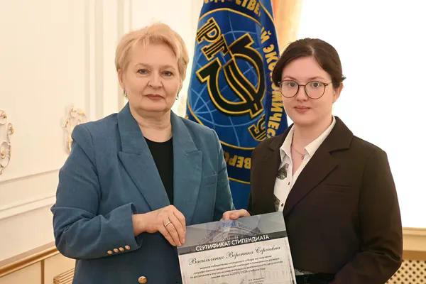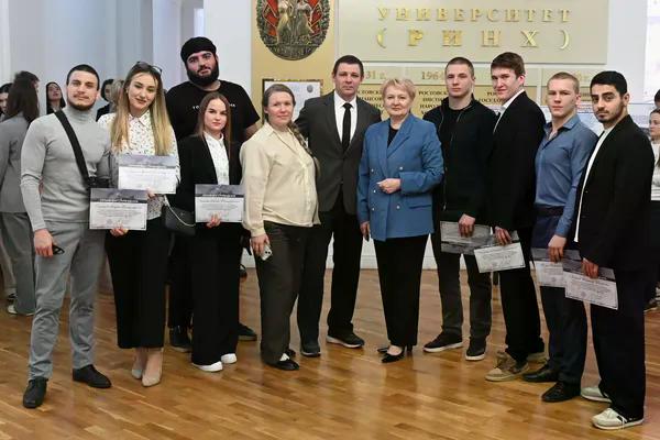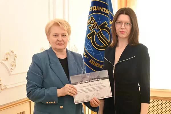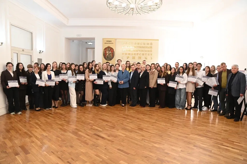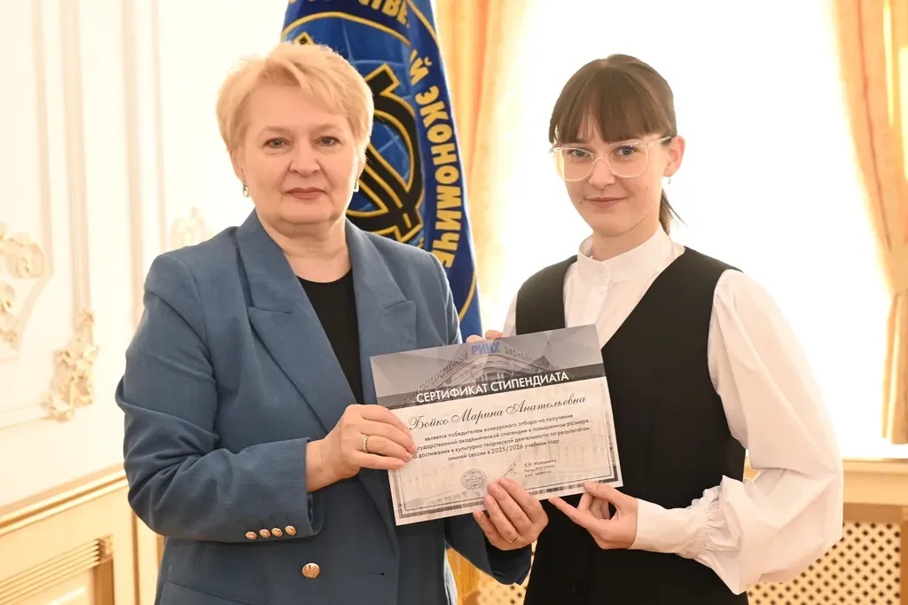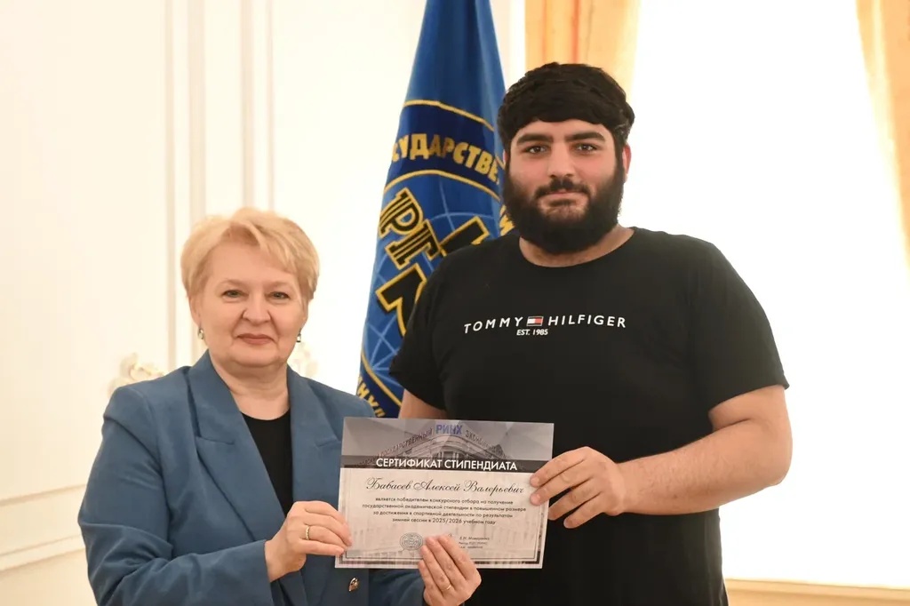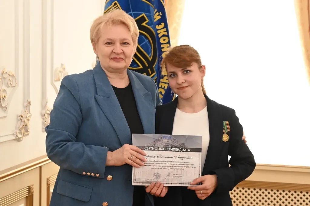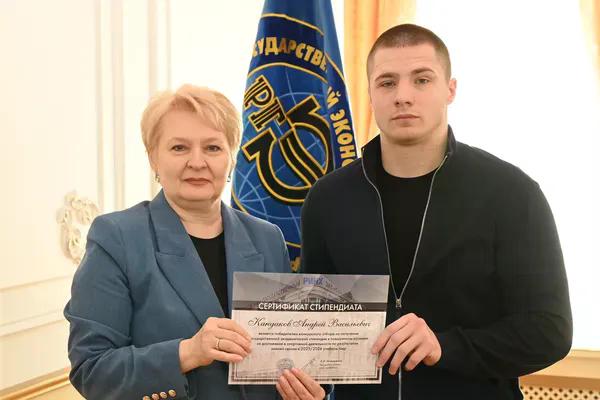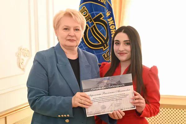 Новости все 26 марта, 2026 Награждение победителей конкурсного отбора на получение государственной академической стипендии в повышенном размере23 марта 2026 года в зале Ученого совета РГЭУ (РИНХ) состоялось награждение победителей конкурсного отбора на получение государственной академической стипендии в повышенном размере. Стипендия назначается по пяти видам деятельности: учебной, общественной, научно-исследовательской, культурно-творческой, спортивной. Сертификаты за победу в конкурсе вручила студентам ректор РГЭУ (РИНХ) Елена Николаевна Макаренко. «Именно в зале Ученого совета принимаются самые серьезные решения, которые определяют деятельность нашего университета. Поздравляю вас от всей души, вижу очень много ребят, которые получали повышенную стипендию неоднократно, что говорит о том, что вы стабильно успешно работаете и достигаете своей цели. Приятно видеть и тех студентов, которые получают сертификаты впервые и, надеюсь, будут это делать еще не раз», – отметила Елена Николаевна. Стипендиатов поздравили также проректор по учебной работе Ирина Александровна Кислая, проректор по научной работе и инновациям Наталья Геннадьевна Вовченко, проректор по воспитательной работе и молодежной политике Никита Иванович Лященко, а также руководитель Центра проектной деятельности Ирина Сергеевна Федоренко, председатель Первичной профсоюзной организации обучающихся Алина Сагитовна Биджиева. В свою очередь ребята поблагодарили ректорат за высокую оценку их деятельности и поделились самыми яркими моментами из своих достижений. В церемонии награждения приняли участие студенты Таганрогского института имени А.П. Чехова (филиала) РГЭУ (РИНХ), тренер-преподаватель ССК самбо и дзюдо Таганрогского института имени А.П. Чехова (филиала) РГЭУ (РИНХ) Константин Георгиевич Чайкин, начальник отдела организации и сопровождения научной деятельности Оксана Николаевна Филиппова и заместитель начальника отдела организации и сопровождения научной деятельности Елена Алексеевна Першонкова. Сертификаты получили 20 студентов Таганрогского института имени А.П. Чехова (филиала) РГЭУ (РИНХ). За достижения в учебной деятельности: Зиздо Мария Олеговна, студентка группы ИЯ-341, факультет иностранных языков; Чачкина Яна Олеговна, студентка группы ИЯ-351, факультет иностранных языков. За достижения в общественной деятельности: Айрапетян Виолетта Аветиковна, студентка группы РЯЛ-221, факультет истории и филологии; Ковалевская Елизавета Алексеевна, студентка группы МФ-141, факультет физики, математики, информатики. За достижения в культурно-творческой деятельности: Бойко Марина Анатольевна, студентка группы МФ-141, факультет физики, математики, информатики. За достижения в спортивной деятельности: Бабасев Алексей Валерьевич, студент группы ПРО-621, факультет экономики и права; Батырь Ульяна Ростиславовна, студентка группы ИСТG-221, факультет истории и филологии; Глущенко Арсений Михайлович, студент группы ДОИ-421, факультет педагогики и методики дошкольного, начального и дополнительного образования; Демидов Андрей Владимирович, студент группы ФСП-111, факультет физики, математики, информатики; Кандаков Андрей Васильевич, студент группы ПРО-621, факультет экономики и права; Караев Шахрияр Шахинович, студент группы ПРО-621, факультет экономики и права; Решетнико