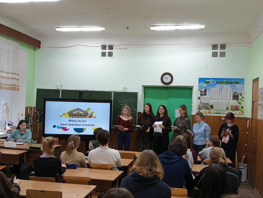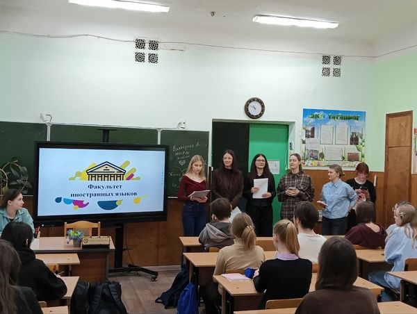 Новости все 27 марта, 2026 Профориентационная деятельность факультета иностранных языковВ рамках педагогической практики студенты группы ИЯ-342 факультета иностранных языков А. Бондаренко, А. Раскосова, И. Лапшак, П. Лелеко, С. Афонина, К. Каранова, А. Лежнева, В. Виктория, М. Соколова, О. Тарасова провели профориентационные встречи с учащимися 9 и 11 классов МАОУ СОШ № 10 г. Таганрога под руководством методиста кафедры французского языка О.В. Кравченко и руководителя практики на факультете Е.А. Пальмовой. Встречи состоялись благодаря активной поддержке директора школы А.И. Адова и учителя французского языка Г.А. Гнездиловой. Целью проведенных встреч стало знакомство будущих потенциальных абитуриентов с тонкостями профессии учителя, особенностями обучения в нашем вузе и важностью выбора осознанного профессионального пути. Студенты подробно рассказали о направлениях подготовки, реализуемых в ТИ имени А. П. Чехова, особенностях поступления, возможностях реализации своих талантов в творческой, спортивной или научной сферах деятельности. Особое внимание в ходе встреч было уделено факультету иностранных языков. Студенты поделились собственным опытом изучения иностранных языков под руководством опытных преподавателей, рассказали о мероприятиях, организуемых факультетом и вузом в целом, представили сферы возможного будущего трудоустройства выпускников факультета. Студенты показали учащимся, что иностранный язык – это не просто предмет, а «окно» в мир, а профессия учителя – не скучная проверка тетрадей, а творческая деятельность, стимулирующая к постоянному саморазвитию и покорению новых вершин. Студенты, которые сами еще недавно были школьниками, вдохновили учащихся на осознанный выбор профессии и показали, что педагогический вуз – это возможность реализовать свои самые смелые идеи. Подобные мероприятия помогают укрепить связь между нашим вузом и школой, а также способствуют привлечению мотивированных абитуриентов на педагогические специальности. Благодарим администрацию школы за помощь в организации мероприятий и надеемся увидеть выпускников в числе будущих абитуриентов нашего вуза. |