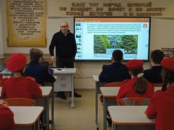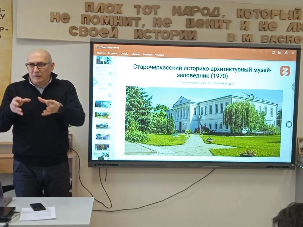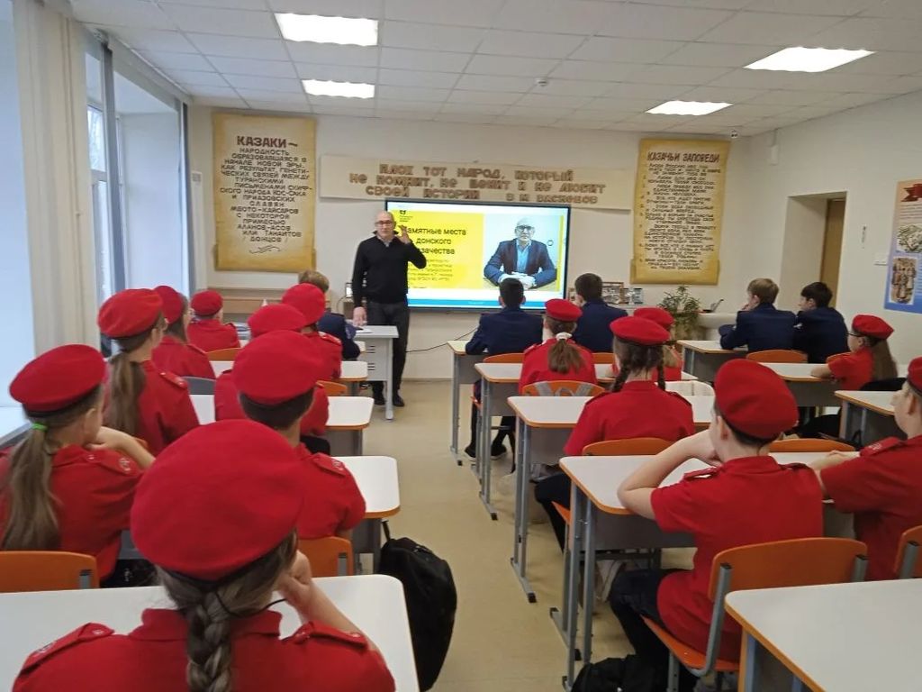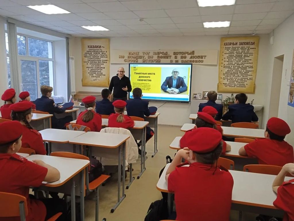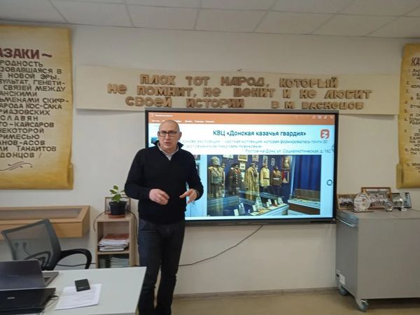 В рамках серии лекций, посвященных истории донского казачества, лектор Российского общества «Знание», заместитель директора по научной работе и проектной деятельности Таганрогского института имени А.П. Чехова (филиала) РГЭУ (РИНХ), председатель общественного совета при департаменте по делам казачества и кадетских учебных заведений Ростовской области, руководитель научной лаборатории «Казачество в истории и памяти» факультета истории и филологии, руководитель магистерской программы «Историческое образование в системе казачьих кадетских учебных заведений», кандидат исторических наук Алексей Александрович Волвенко прочитал на площадке МБОУ Покровская СОШ «Неклиновский образовательный комплекс» лекцию «Памятные места донского казачества». Особое внимание во второй лекции Алексей Александрович уделил памятникам, закреплявшим образ казака как защитника Отечества, увековечивающим память об атаманах (М.И. Платов, Я.П. Бакланов), и сохранению историко-культурного наследия донских казаков в музейных комплексах региона: Новочеркасский музей истории донского казачества, Старочеркасский историко-архитектурный музей-заповедник, Раздорский этнографический музей-заповедник, Государственный музей-заповедник М.А. Шолохова, Культурно-выставочный центр «Донская казачья гвардия». Куратором мероприятия выступила учитель истории и обществознания высшей квалификационной категории МБОУ Покровская СОШ «НОК» И.А. Сухоненко. |